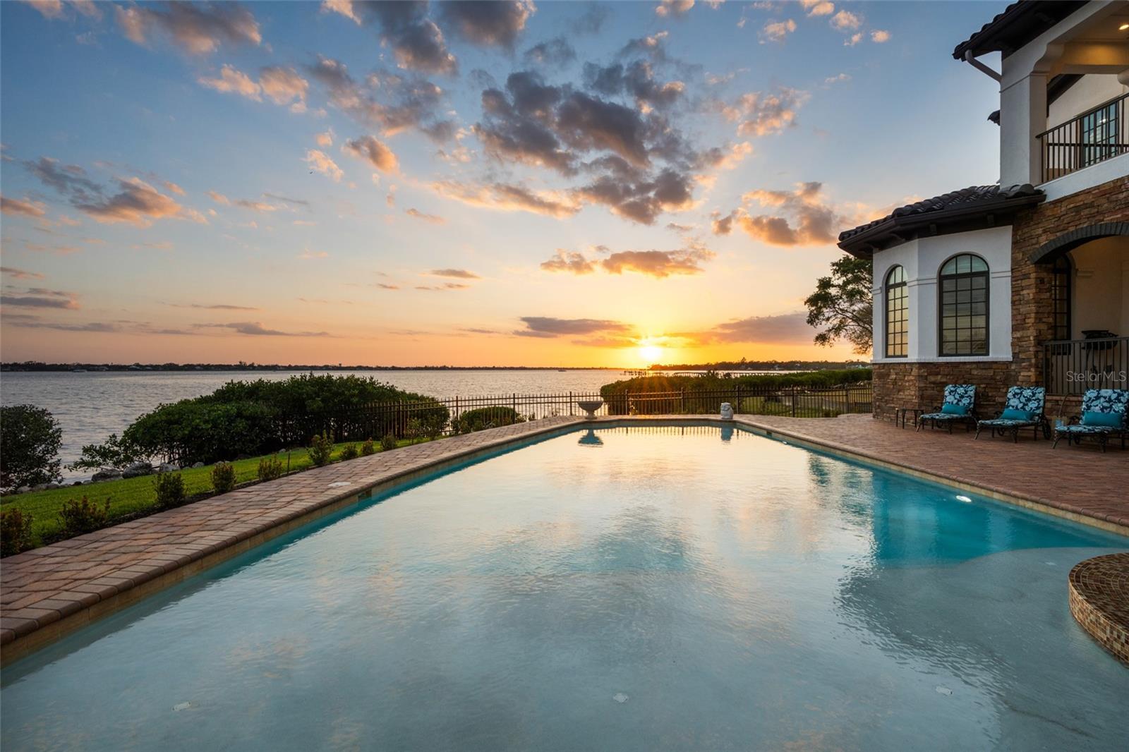 Experience true Gulf-coast luxury in this exceptional waterfront estate--perfectly positioned on over half an acre in historic Palmetto and just minutes across the bridge from vibrant Downtown Bradenton. Set along deep, navigable water with a private dock, 13,000 lb lift, electric, and water, this property offers direct access to the Gulf of Mexico for effortless boating and unforgettable sunset cruises. This high-and-dry home has never had water intrusion from any storm, providing rare peace of mind along the coast.Inside, refined design meets coastal comfort across more than 9,000 sq ft of living space. The chef's kitchen features elite Sub-Zero refrigeration, Wolf gas cooking, double ovens, dual Miele dishwashers, a built-in Miele coffee system, warming drawer, prep sink, ice maker, and more--perfect for both everyday living and elevated entertaining.Open living areas flow seamlessly to expansive outdoor spaces, where a resort-style pool and spa, outdoor kitchen, gas fire features, and panoramic waterfront views create the ideal setting for golden-hour sunsets. A temperature-controlled wine cellar, billiards and bar room, home theater with projector system, exercise room, library/office, and ground-level elevator access add comfort and versatility throughout the home.The main-level primary suite offers spa-inspired serenity and direct access to outdoor living, while each additional bedroom provides its own private en-suite retreat. The home also features two full laundry rooms, adding convenience for large households or extended-stay guests.Smart-home enhancements include Ring security, Alexa-enabled lighting, whole-home stereo, integrated central vacuum, solar-assisted water heaters, enhanced exterior door locks, and a Tesla EV charger. A brand-new tile roof (2025) further strengthens the property's durability and storm readiness.With unmatched boating access, sweeping sunset views, impact-rated protection, and an exceptional location near marinas, dining, parks, and the charm of historic Palmetto--this estate offers the finest in luxury coastal living.