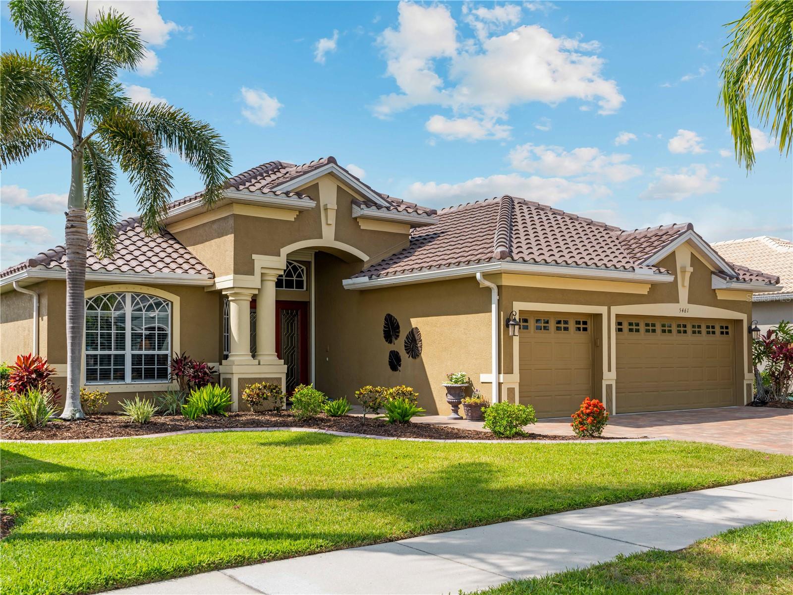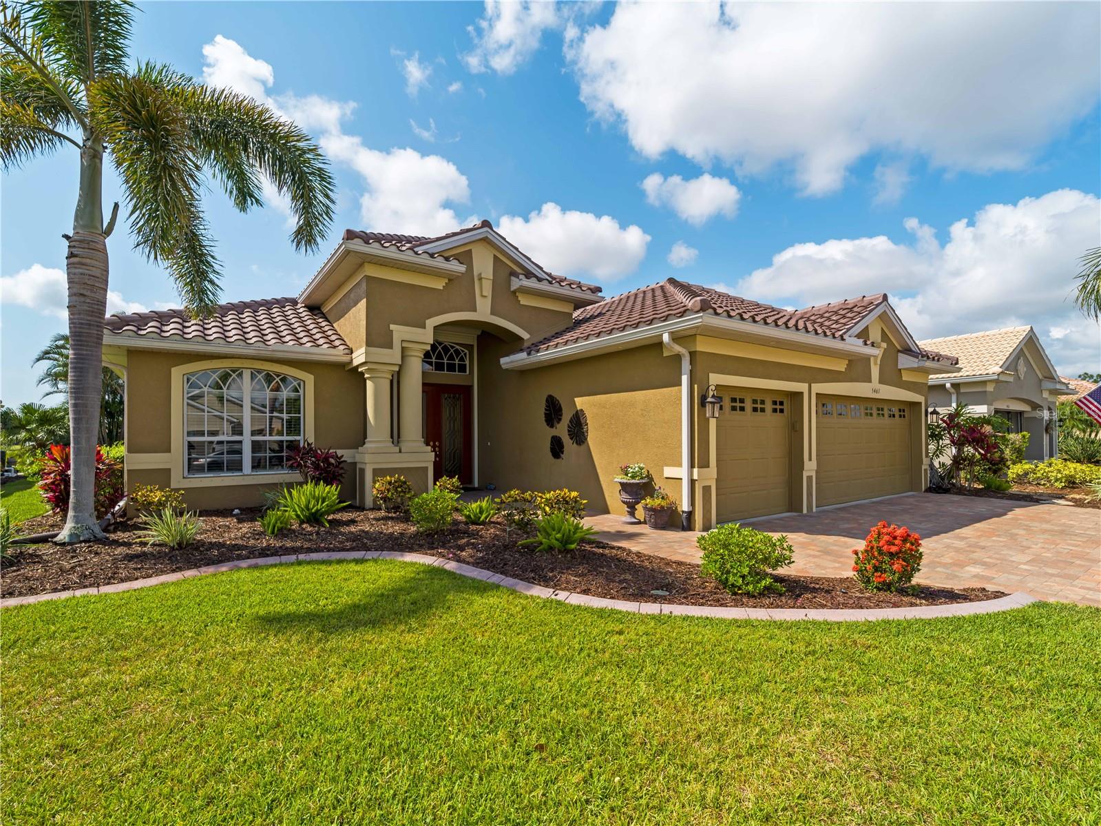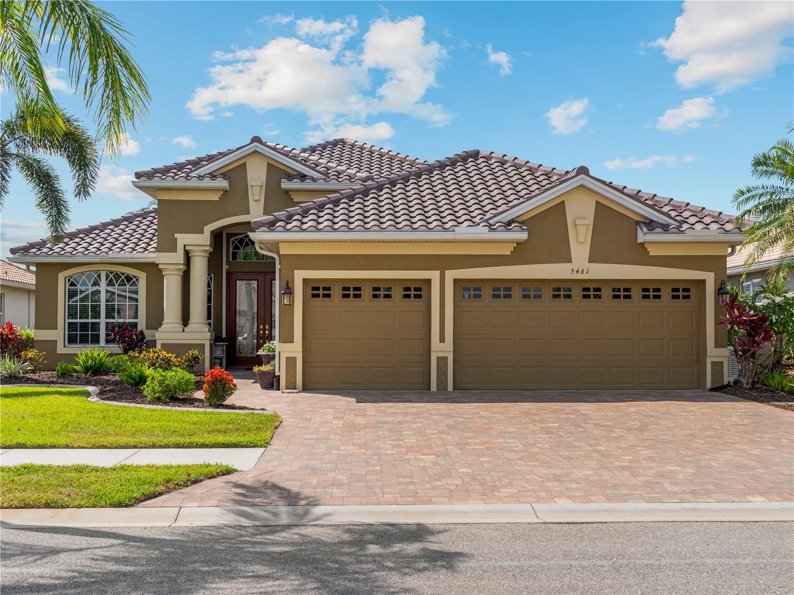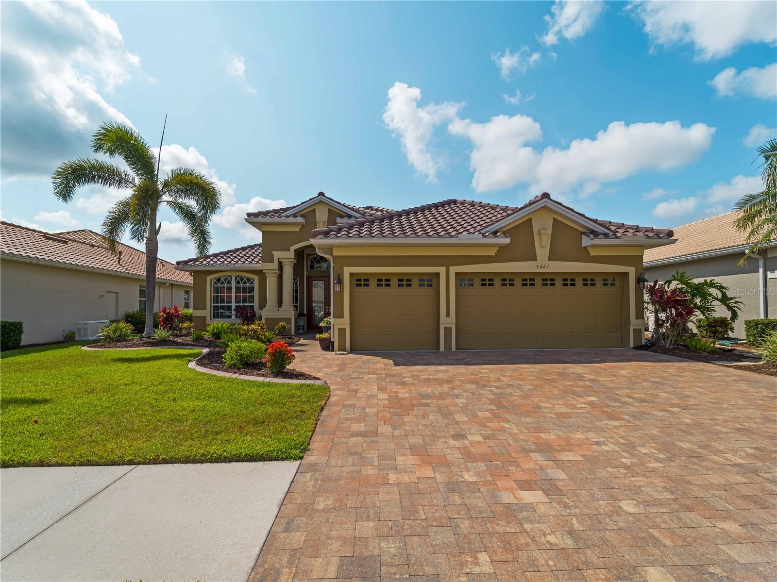 BEST VALUE HOME IN HERON CREEK! Welcome to 5461 White Ibis Drive - A Stunning Estate Pool Home in Heron Creek Golf & Country Club! Come with Golf Cart!!Located in a NON-Flood Zone, this meticulously maintained single-level home offers 2,428 sq. ft. of living space, featuring 4 bedrooms, 2 full bathrooms, a flex room, and a 3-car garage. Built for both luxury and functionality, the home boasts a new tile roof (2024) and a gas-heated chlorine pool with spa, creating your own private outdoor oasis. This home also features impact window film and shutters for added security/peace of mind. But wait there is more... In 2024 a Generac 22kw whole house system that is connected to an automatic transfer switch. This system also comes with a 7 year transferable warranty!Set on a beautifully landscaped homesite with breathtaking lake views and overlooking the final hole of the #9 home on the Marsh course. With long fairway/green views along with the tranquil you will feel relaxed and right at home. This home blends elegance, relaxation and comfort. The exterior of the home also features full custom up and down lighting for added evening elegance. The open-concept split floor plan is ideal for both entertaining and everyday living. The spacious living room and owner's suite open seamlessly to the expansive lanai and sparkling pool/spa area, offering enhanced view screening for unobstructed views of the lake and fairway. A standout feature is the engineered 16x18 Arcadia pergola system with a motorized slatted roof--allowing you to control sun and shade exposure. A $50,000 value!The outdoor space is a true showstopper, with a super-sized lanai, gas-heated spa, and lush tropical landscaping--perfect for year-round relaxation and entertaining.Interior highlights include neutral dcor, fresh paints, tile and wood flooring throughout (no carpet), and a chef's kitchen with solid wood cabinetry, granite countertops, stainless steel appliances, and a natural gas range. The split-bedroom layout provides a private owner's retreat, two guest bedrooms with a shared full bath, and a fourth bedroom plus flex room--perfect for a home office or extra living space.The three-car garage offers abundant storage space and a durable hard-coat epoxy floor. Garage also features custom cabinetry for organized storage along with a whole house "central vac" system. This home clearly reflects pride of ownership.Heron Creek Golf & Country Club offers world-class amenities including a 21,000 sq. ft. clubhouse, 27 holes of Arthur Hills-designed championship golf, tennis courts, a fitness center, resort-style pool, and a vibrant calendar of social events. Memberships start as low as $258/month, and HOA fees cover ground maintenance, irrigation, mulching, cable, high-speed internet, and guarded gate entry.Centrally located with convenient access to I-75, SMH healthcare, Wellen Park, Venice, gulf beaches, Costco, CoolToday Park, and nearby airports.This exceptional home is move-in ready and waiting for you--schedule your private tour today!