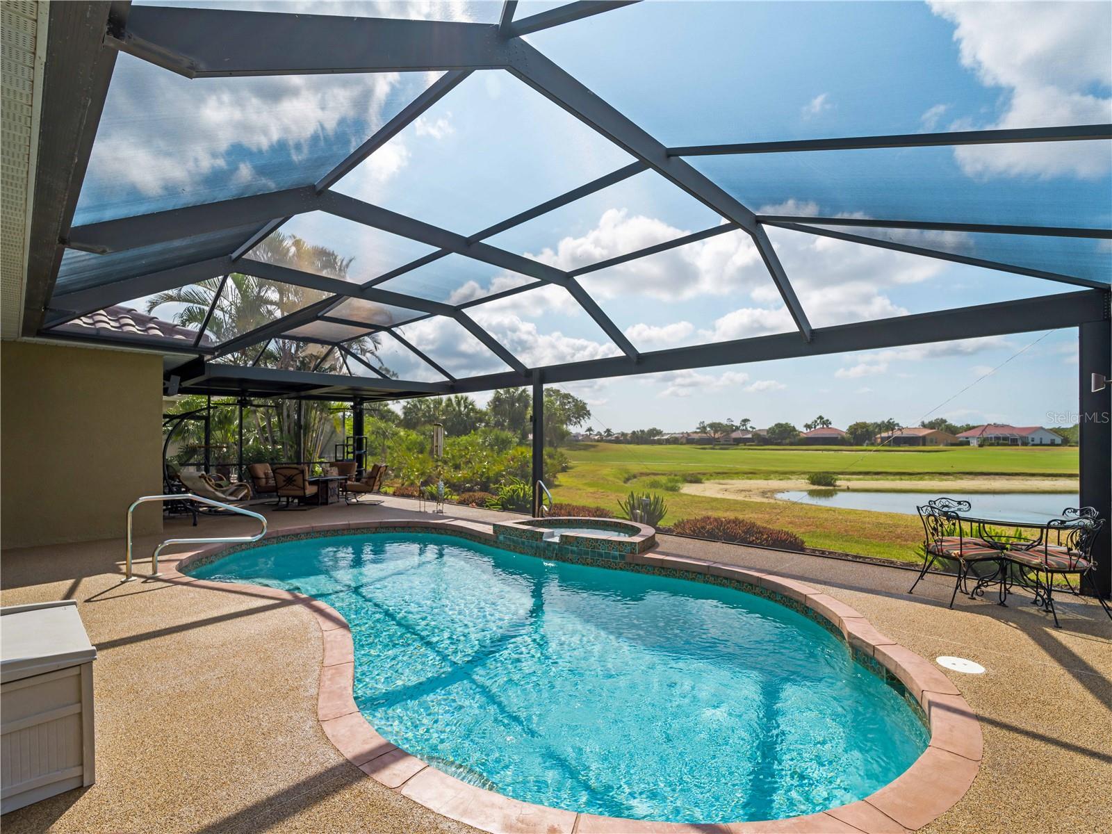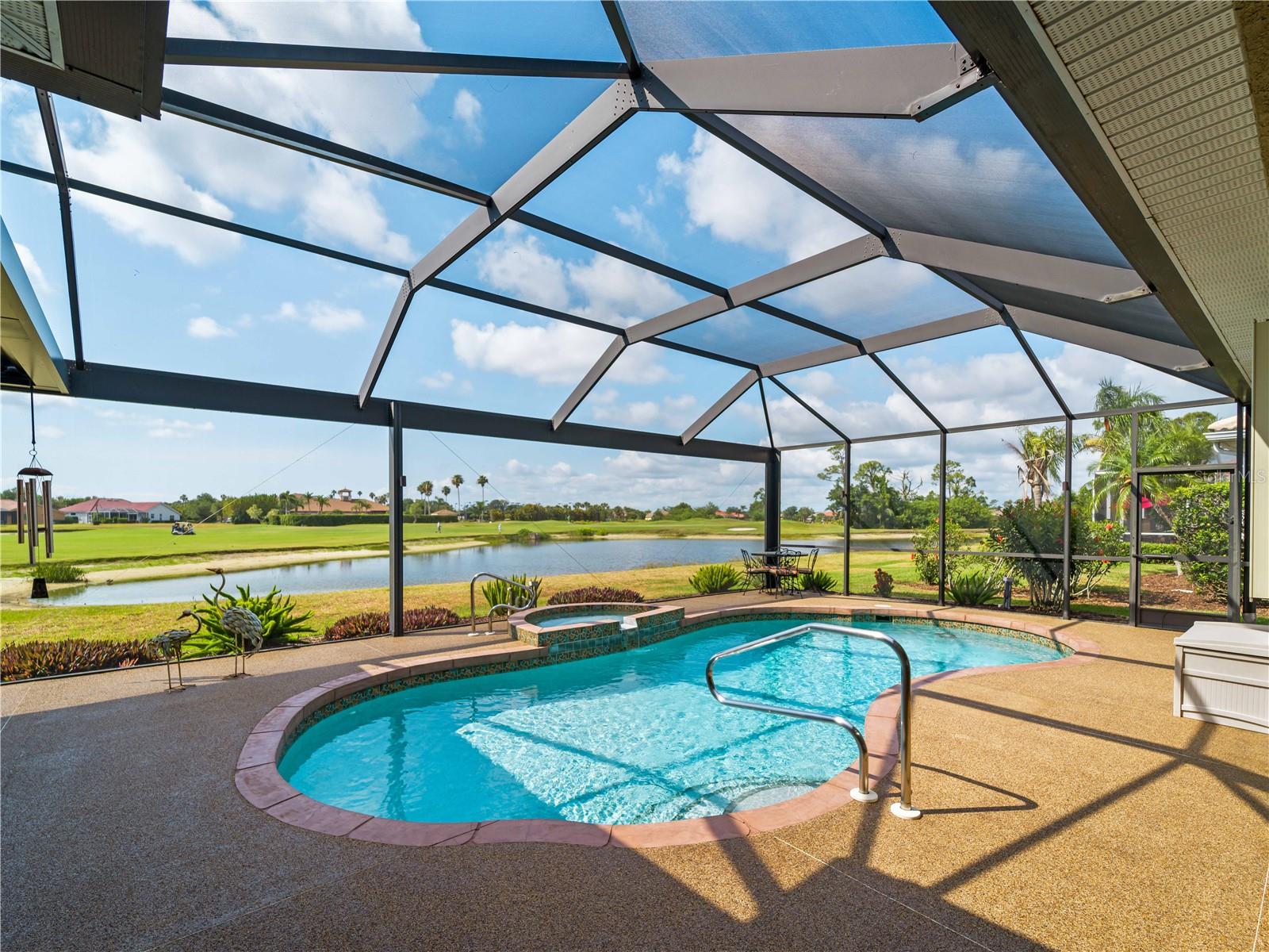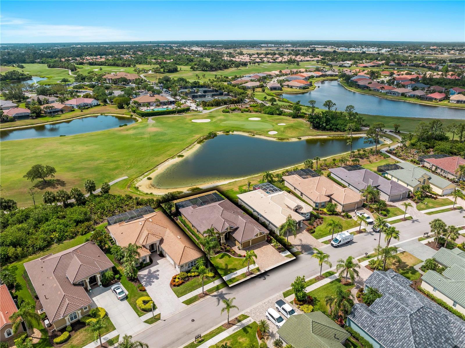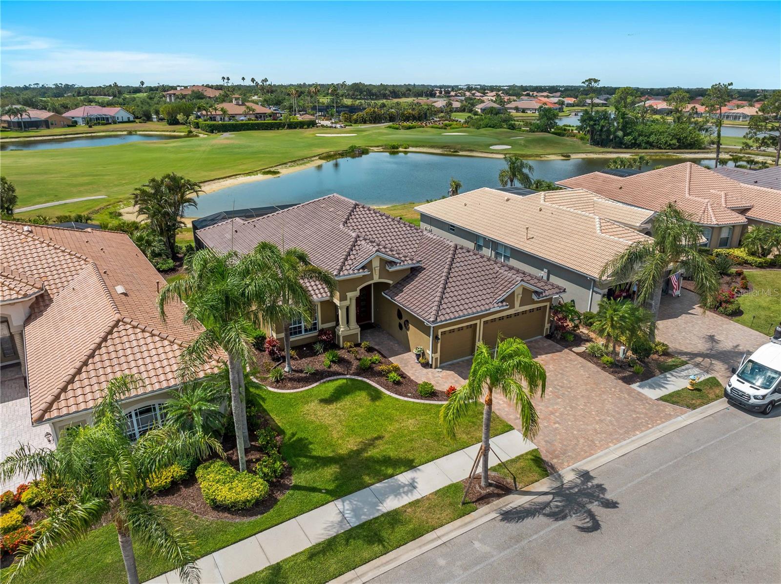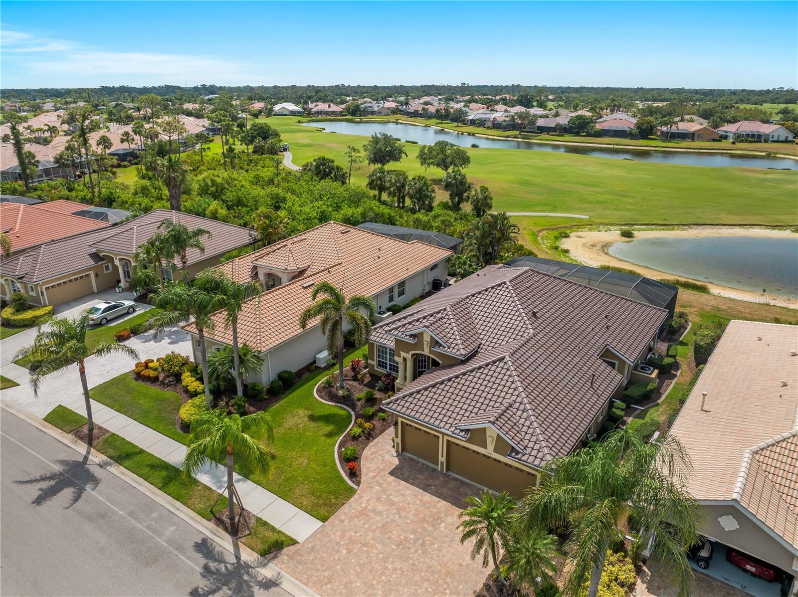 BEST VALUE HOME IN HERON CREEK! Welcome to 5461 White Ibis Drive - A Stunning Estate Pool Home in Heron Creek Golf & Country Club! Come with Golf Cart!!Located in a NON-Flood Zone, this meticulously maintained single-level home offers 2,428 sq. ft. of living space, featuring 4 bedrooms, 2 full bathrooms, a flex room, and a 3-car garage. Built for both luxury and functionality, the home boasts a new tile roof (2024) and a gas-heated chlorine pool with spa, creating your own private outdoor oasis. This home also features impact window film and shutters for added security/peace of mind. But wait there is more... In 2024 a Generac 22kw whole house system that is connected to an automatic transfer switch. This system also comes with a 7 year transferable warranty!Set on a beautifully landscaped homesite with breathtaking lake views and overlooking the final hole of the #9 home on the Marsh course. With long fairway/green views along with the tranquil you will feel relaxed and right at home. This home blends elegance, relaxation and comfort. The exterior of the home also features full custom up and down lighting for added evening elegance. The open-concept split floor plan is ideal for both entertaining and everyday living. The spacious living room and owner's suite open seamlessly to the expansive lanai and sparkling pool/spa area, offering enhanced view screening for unobstructed views of the lake and fairway. A standout feature is the engineered 16x18 Arcadia pergola system with a motorized slatted roof--allowing you to control sun and shade exposure. A $50,000 value!The outdoor space is a true showstopper, with a super-sized lanai, gas-heated spa, and lush tropical landscaping--perfect for year-round relaxation and entertaining.Interior highlights include neutral dcor, fresh paints, tile and wood flooring throughout (no carpet), and a chef's kitchen with solid wood cabinetry, granite countertops, stainless steel appliances, and a natural gas range. The split-bedroom layout provides a private owner's retreat, two guest bedrooms with a shared full bath, and a fourth bedroom plus flex room--perfect for a home office or extra living space.The three-car garage offers abundant storage space and a durable hard-coat epoxy floor. Garage also features custom cabinetry for organized storage along with a whole house "central vac" system. This home clearly reflects pride of ownership.Heron Creek Golf & Country Club offers world-class amenities including a 21,000 sq. ft. clubhouse, 27 holes of Arthur Hills-designed championship golf, tennis courts, a fitness center, resort-style pool, and a vibrant calendar of social events. Memberships start as low as $258/month, and HOA fees cover ground maintenance, irrigation, mulching, cable, high-speed internet, and guarded gate entry.Centrally located with convenient access to I-75, SMH healthcare, Wellen Park, Venice, gulf beaches, Costco, CoolToday Park, and nearby airports.This exceptional home is move-in ready and waiting for you--schedule your private tour today!