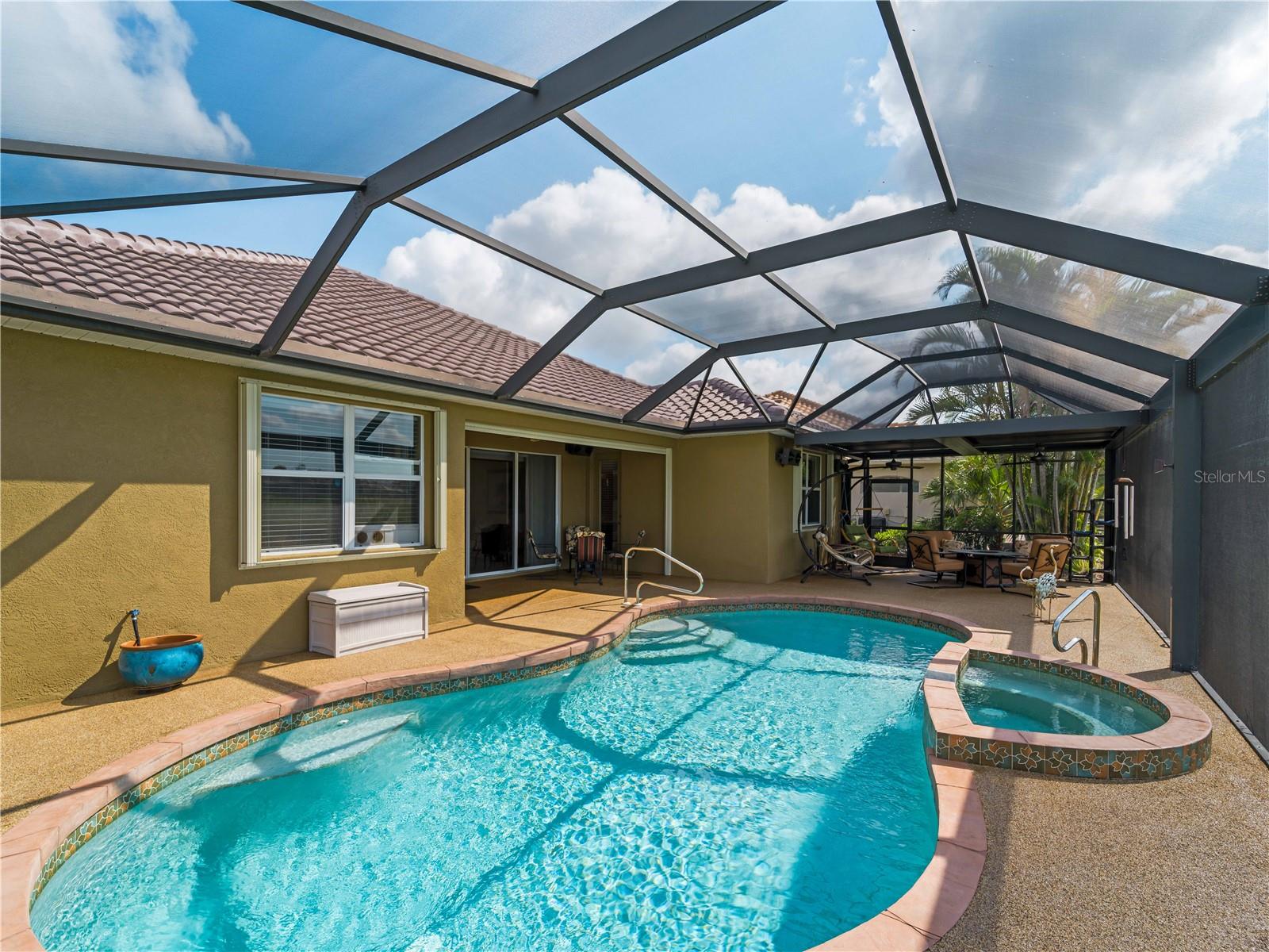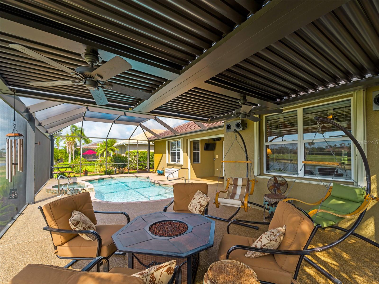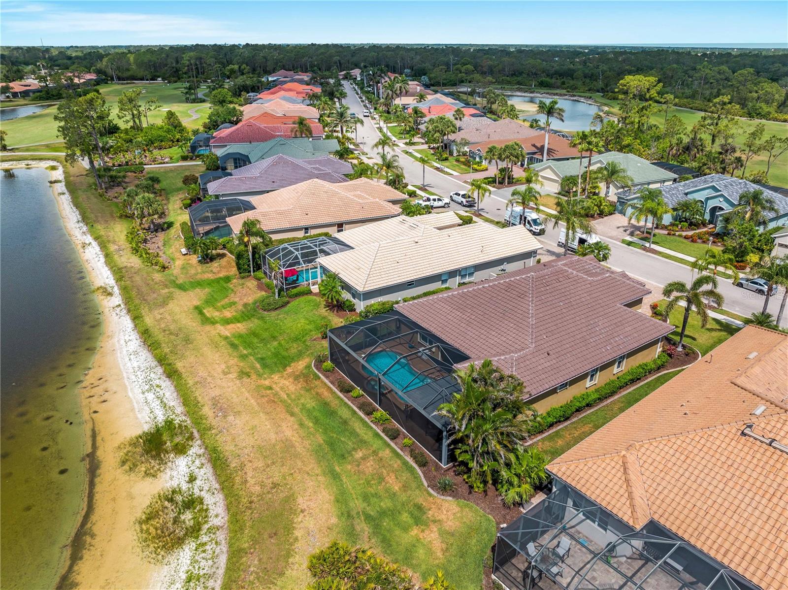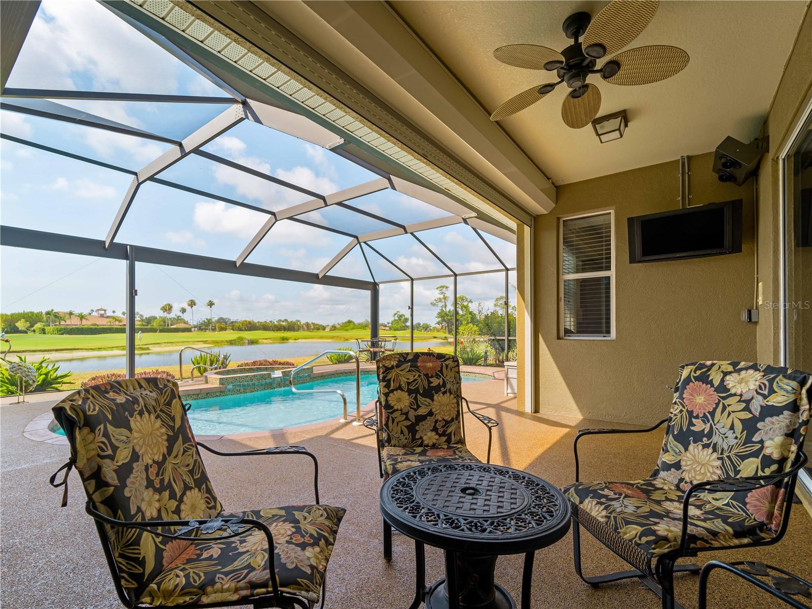 BEST VALUE HOME IN HERON CREEK! Welcome to 5461 White Ibis Drive - A Stunning Estate Pool Home in Heron Creek Golf & Country Club! Come with Golf Cart!!Located in a NON-Flood Zone, this meticulously maintained single-level home offers 2,428 sq. ft. of living space, featuring 4 bedrooms, 2 full bathrooms, a flex room, and a 3-car garage. Built for both luxury and functionality, the home boasts a new tile roof (2024) and a gas-heated chlorine pool with spa, creating your own private outdoor oasis. This home also features impact window film and shutters for added security/peace of mind. But wait there is more... In 2024 a Generac 22kw whole house system that is connected to an automatic transfer switch. This system also comes with a 7 year transferable warranty!Set on a beautifully landscaped homesite with breathtaking lake views and overlooking the final hole of the #9 home on the Marsh course. With long fairway/green views along with the tranquil you will feel relaxed and right at home. This home blends elegance, relaxation and comfort. The exterior of the home also features full custom up and down lighting for added evening elegance. The open-concept split floor plan is ideal for both entertaining and everyday living. The spacious living room and owner's suite open seamlessly to the expansive lanai and sparkling pool/spa area, offering enhanced view screening for unobstructed views of the lake and fairway. A standout feature is the engineered 16x18 Arcadia pergola system with a motorized slatted roof--allowing you to control sun and shade exposure. A $50,000 value!The outdoor space is a true showstopper, with a super-sized lanai, gas-heated spa, and lush tropical landscaping--perfect for year-round relaxation and entertaining.Interior highlights include neutral dcor, fresh paints, tile and wood flooring throughout (no carpet), and a chef's kitchen with solid wood cabinetry, granite countertops, stainless steel appliances, and a natural gas range. The split-bedroom layout provides a private owner's retreat, two guest bedrooms with a shared full bath, and a fourth bedroom plus flex room--perfect for a home office or extra living space.The three-car garage offers abundant storage space and a durable hard-coat epoxy floor. Garage also features custom cabinetry for organized storage along with a whole house "central vac" system. This home clearly reflects pride of ownership.Heron Creek Golf & Country Club offers world-class amenities including a 21,000 sq. ft. clubhouse, 27 holes of Arthur Hills-designed championship golf, tennis courts, a fitness center, resort-style pool, and a vibrant calendar of social events. Memberships start as low as $258/month, and HOA fees cover ground maintenance, irrigation, mulching, cable, high-speed internet, and guarded gate entry.Centrally located with convenient access to I-75, SMH healthcare, Wellen Park, Venice, gulf beaches, Costco, CoolToday Park, and nearby airports.This exceptional home is move-in ready and waiting for you--schedule your private tour today!