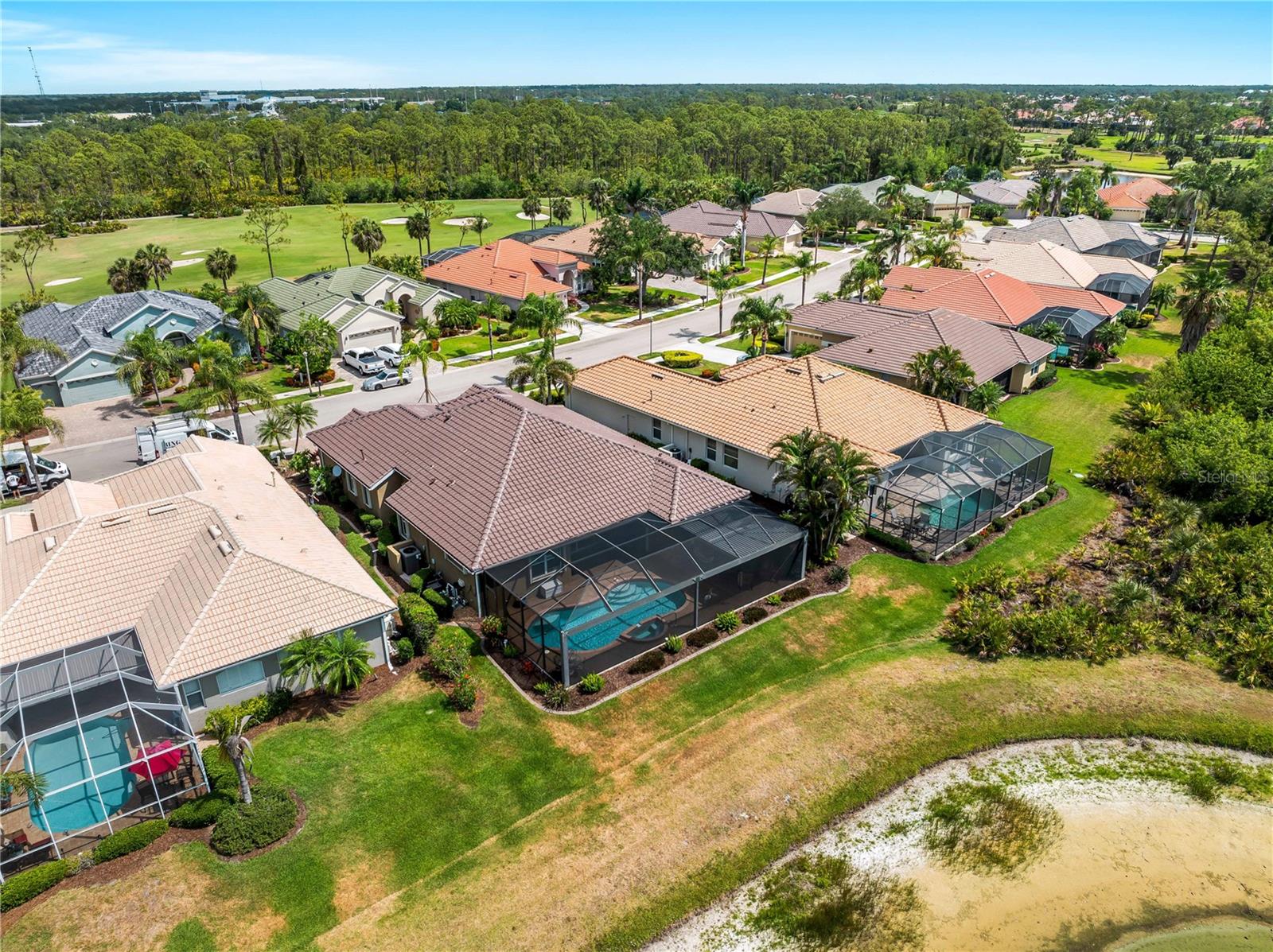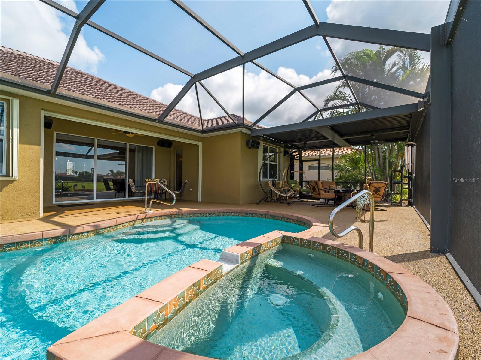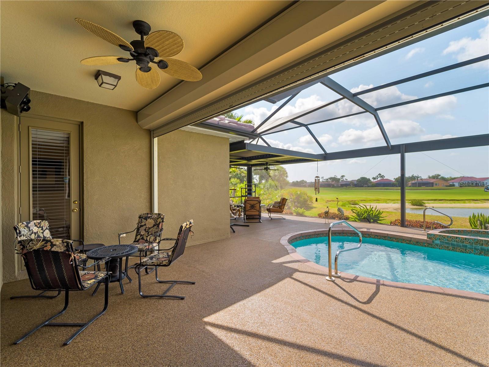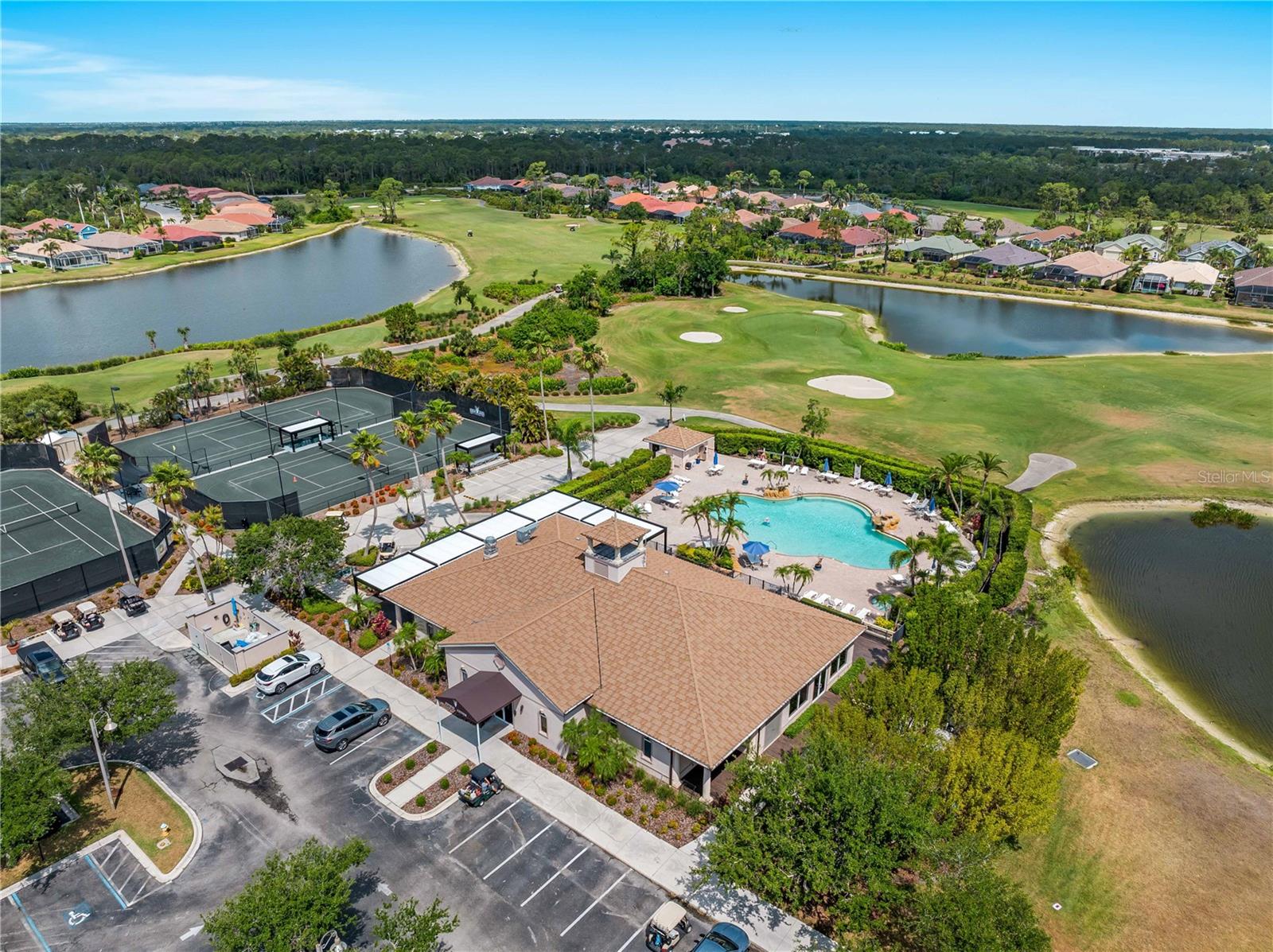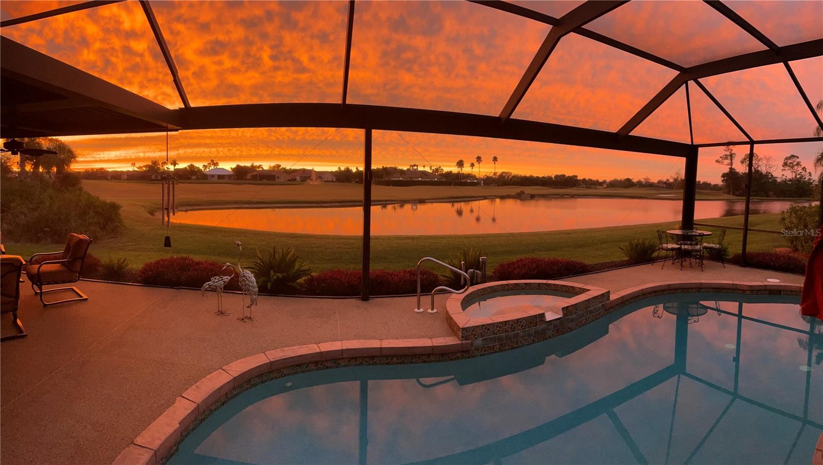 BEST VALUE HOME IN HERON CREEK! Welcome to 5461 White Ibis Drive - A Stunning Estate Pool Home in Heron Creek Golf & Country Club! Come with Golf Cart!!Located in a NON-Flood Zone, this meticulously maintained single-level home offers 2,428 sq. ft. of living space, featuring 4 bedrooms, 2 full bathrooms, a flex room, and a 3-car garage. Built for both luxury and functionality, the home boasts a new tile roof (2024) and a gas-heated chlorine pool with spa, creating your own private outdoor oasis. This home also features impact window film and shutters for added security/peace of mind. But wait there is more... In 2024 a Generac 22kw whole house system that is connected to an automatic transfer switch. This system also comes with a 7 year transferable warranty!Set on a beautifully landscaped homesite with breathtaking lake views and overlooking the final hole of the #9 home on the Marsh course. With long fairway/green views along with the tranquil you will feel relaxed and right at home. This home blends elegance, relaxation and comfort. The exterior of the home also features full custom up and down lighting for added evening elegance. The open-concept split floor plan is ideal for both entertaining and everyday living. The spacious living room and owner's suite open seamlessly to the expansive lanai and sparkling pool/spa area, offering enhanced view screening for unobstructed views of the lake and fairway. A standout feature is the engineered 16x18 Arcadia pergola system with a motorized slatted roof--allowing you to control sun and shade exposure. A $50,000 value!The outdoor space is a true showstopper, with a super-sized lanai, gas-heated spa, and lush tropical landscaping--perfect for year-round relaxation and entertaining.Interior highlights include neutral dcor, fresh paints, tile and wood flooring throughout (no carpet), and a chef's kitchen with solid wood cabinetry, granite countertops, stainless steel appliances, and a natural gas range. The split-bedroom layout provides a private owner's retreat, two guest bedrooms with a shared full bath, and a fourth bedroom plus flex room--perfect for a home office or extra living space.The three-car garage offers abundant storage space and a durable hard-coat epoxy floor. Garage also features custom cabinetry for organized storage along with a whole house "central vac" system. This home clearly reflects pride of ownership.Heron Creek Golf & Country Club offers world-class amenities including a 21,000 sq. ft. clubhouse, 27 holes of Arthur Hills-designed championship golf, tennis courts, a fitness center, resort-style pool, and a vibrant calendar of social events. Memberships start as low as $258/month, and HOA fees cover ground maintenance, irrigation, mulching, cable, high-speed internet, and guarded gate entry.Centrally located with convenient access to I-75, SMH healthcare, Wellen Park, Venice, gulf beaches, Costco, CoolToday Park, and nearby airports.This exceptional home is move-in ready and waiting for you--schedule your private tour today!