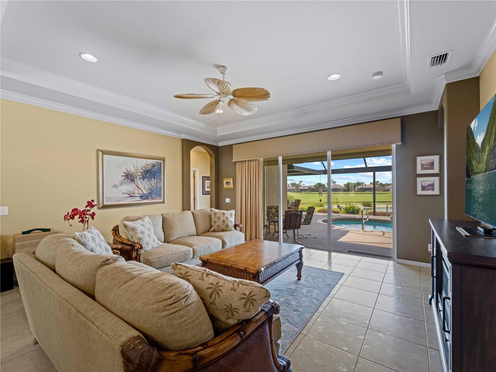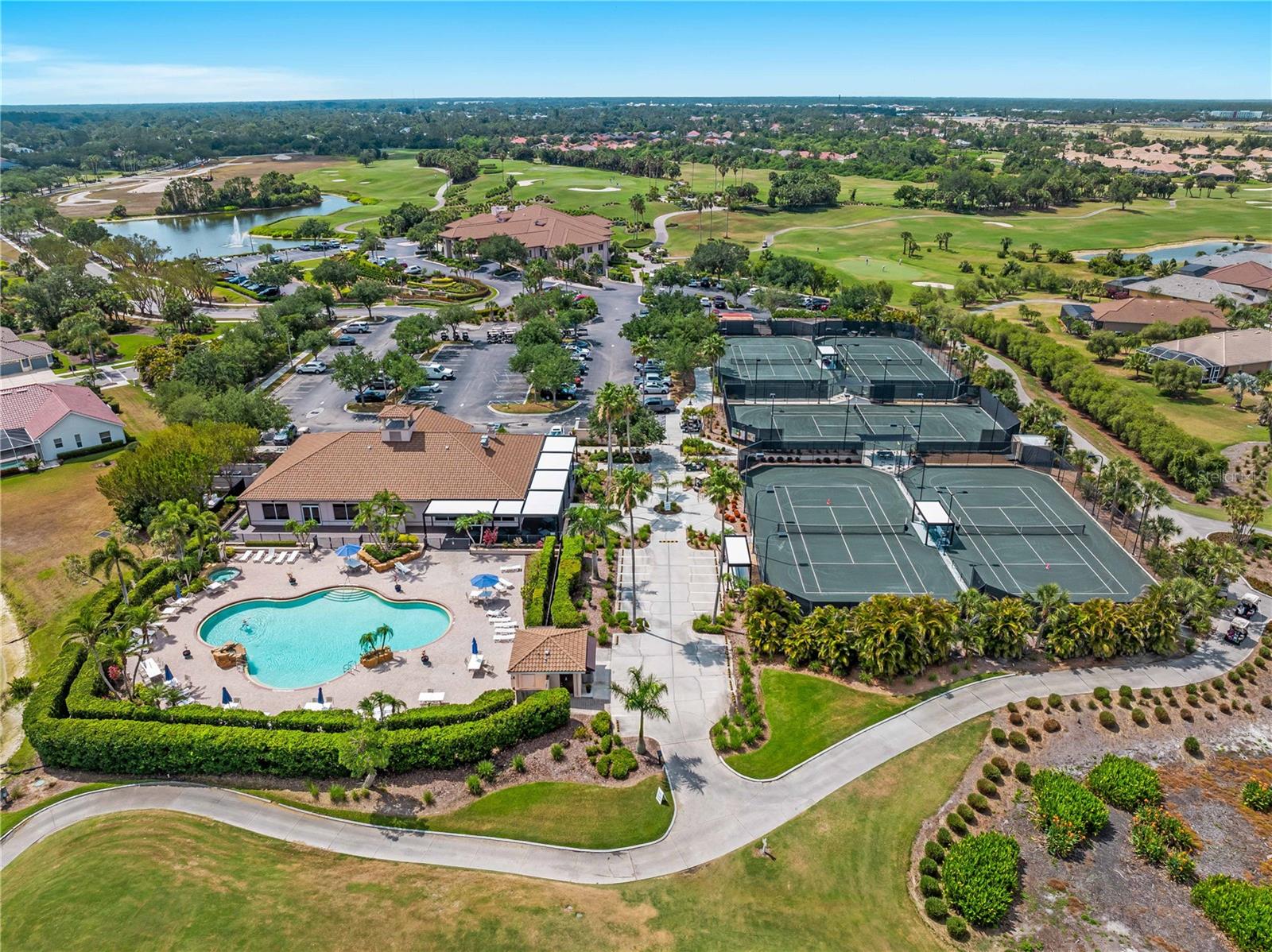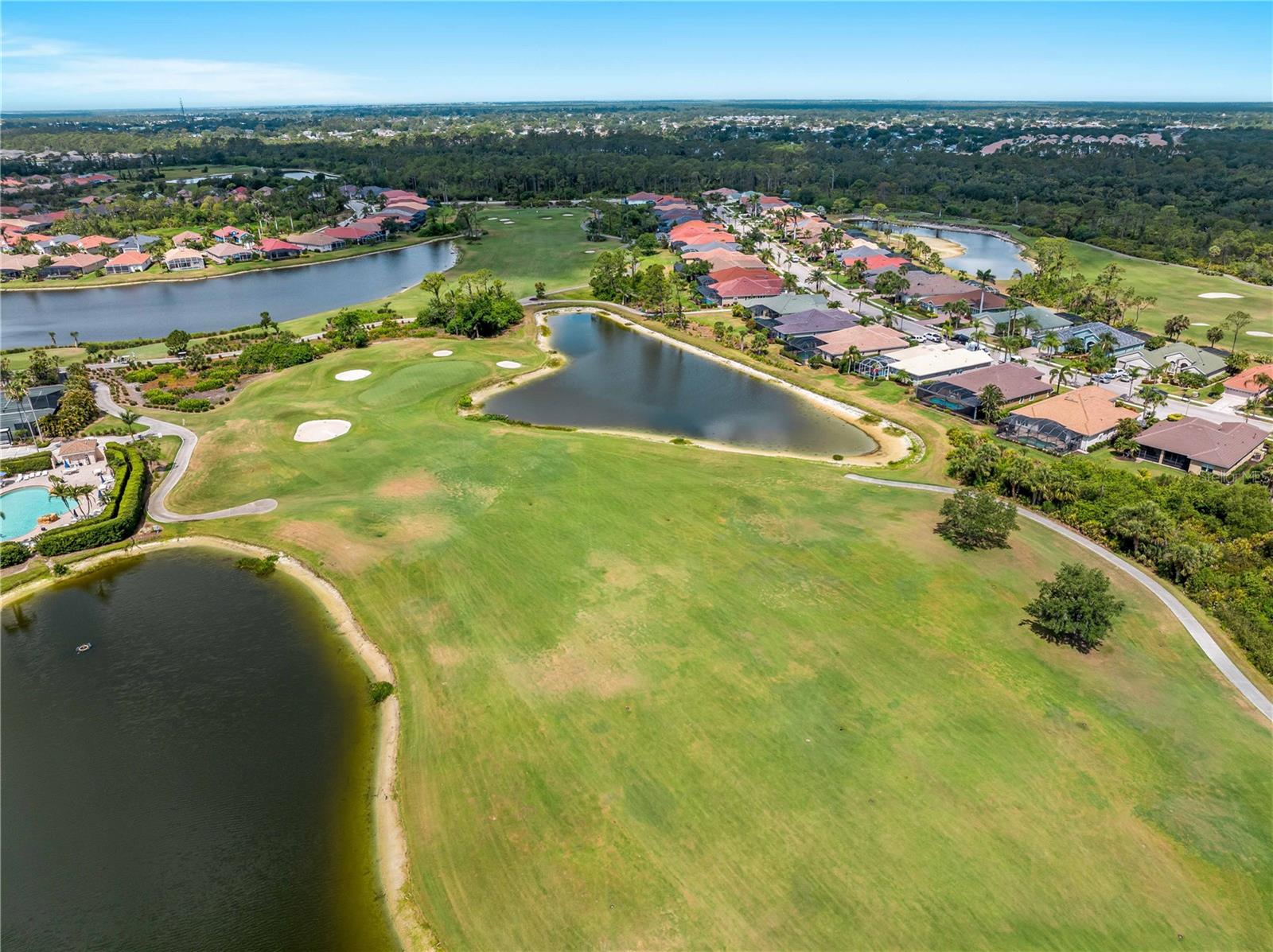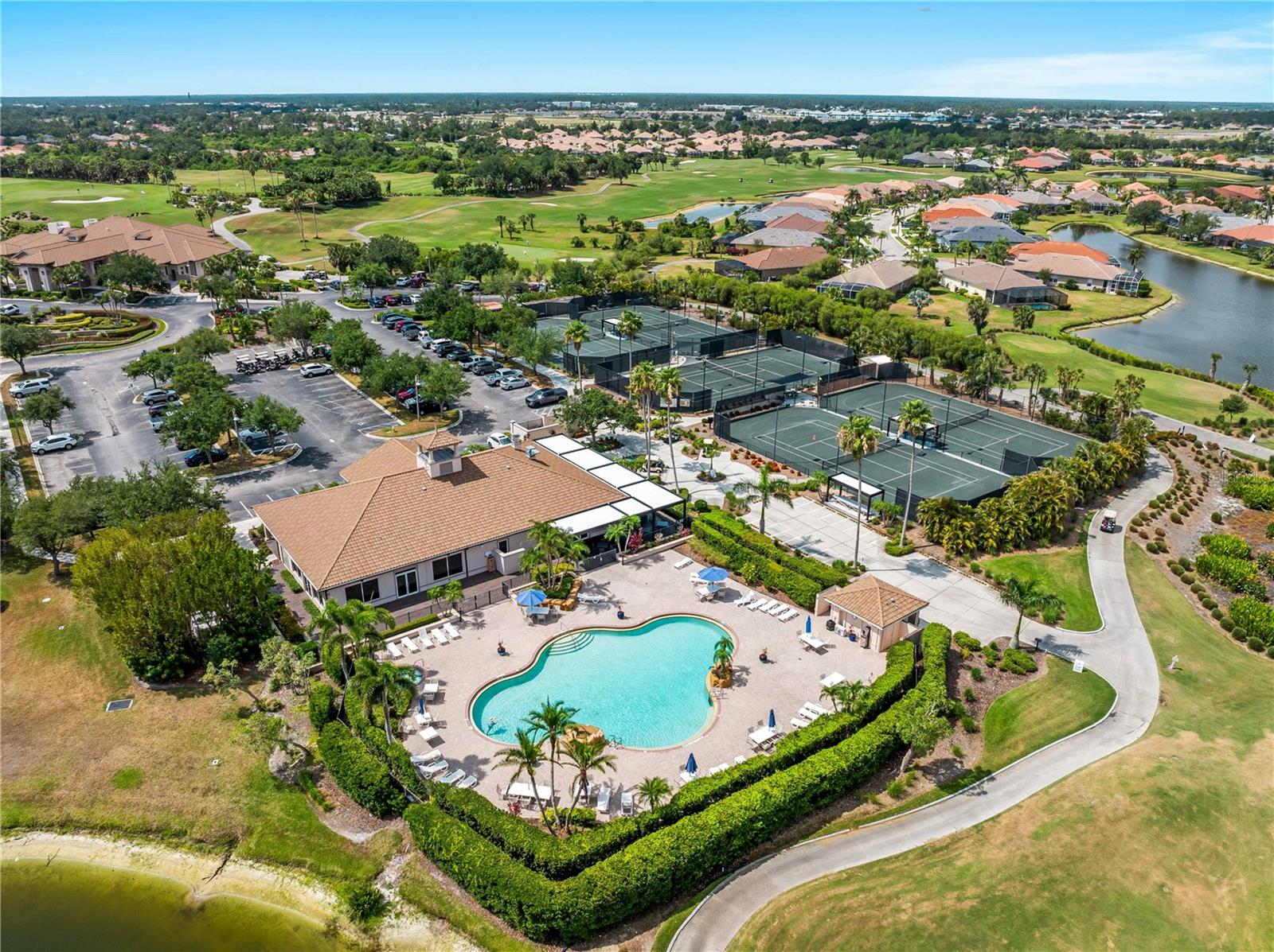 BEST VALUE HOME IN HERON CREEK! Welcome to 5461 White Ibis Drive - A Stunning Estate Pool Home in Heron Creek Golf & Country Club! Come with Golf Cart!!Located in a NON-Flood Zone, this meticulously maintained single-level home offers 2,428 sq. ft. of living space, featuring 4 bedrooms, 2 full bathrooms, a flex room, and a 3-car garage. Built for both luxury and functionality, the home boasts a new tile roof (2024) and a gas-heated chlorine pool with spa, creating your own private outdoor oasis. This home also features impact window film and shutters for added security/peace of mind. But wait there is more... In 2024 a Generac 22kw whole house system that is connected to an automatic transfer switch. This system also comes with a 7 year transferable warranty!Set on a beautifully landscaped homesite with breathtaking lake views and overlooking the final hole of the #9 home on the Marsh course. With long fairway/green views along with the tranquil you will feel relaxed and right at home. This home blends elegance, relaxation and comfort. The exterior of the home also features full custom up and down lighting for added evening elegance. The open-concept split floor plan is ideal for both entertaining and everyday living. The spacious living room and owner's suite open seamlessly to the expansive lanai and sparkling pool/spa area, offering enhanced view screening for unobstructed views of the lake and fairway. A standout feature is the engineered 16x18 Arcadia pergola system with a motorized slatted roof--allowing you to control sun and shade exposure. A $50,000 value!The outdoor space is a true showstopper, with a super-sized lanai, gas-heated spa, and lush tropical landscaping--perfect for year-round relaxation and entertaining.Interior highlights include neutral dcor, fresh paints, tile and wood flooring throughout (no carpet), and a chef's kitchen with solid wood cabinetry, granite countertops, stainless steel appliances, and a natural gas range. The split-bedroom layout provides a private owner's retreat, two guest bedrooms with a shared full bath, and a fourth bedroom plus flex room--perfect for a home office or extra living space.The three-car garage offers abundant storage space and a durable hard-coat epoxy floor. Garage also features custom cabinetry for organized storage along with a whole house "central vac" system. This home clearly reflects pride of ownership.Heron Creek Golf & Country Club offers world-class amenities including a 21,000 sq. ft. clubhouse, 27 holes of Arthur Hills-designed championship golf, tennis courts, a fitness center, resort-style pool, and a vibrant calendar of social events. Memberships start as low as $258/month, and HOA fees cover ground maintenance, irrigation, mulching, cable, high-speed internet, and guarded gate entry.Centrally located with convenient access to I-75, SMH healthcare, Wellen Park, Venice, gulf beaches, Costco, CoolToday Park, and nearby airports.This exceptional home is move-in ready and waiting for you--schedule your private tour today!