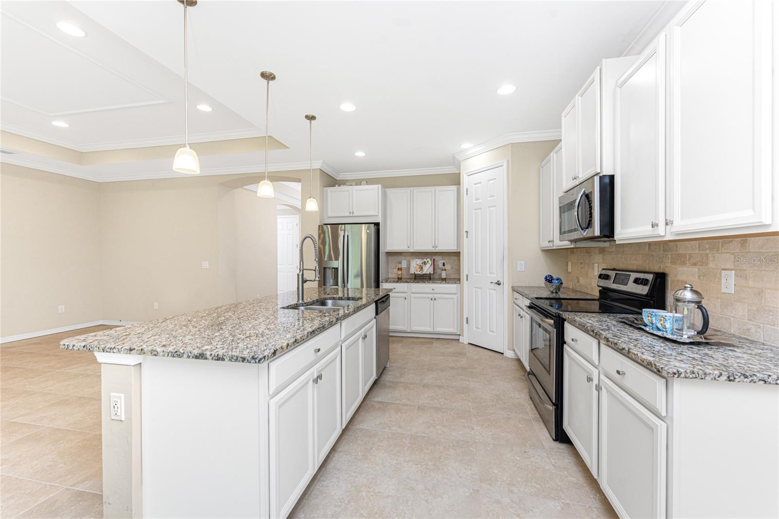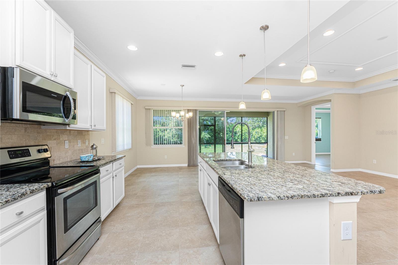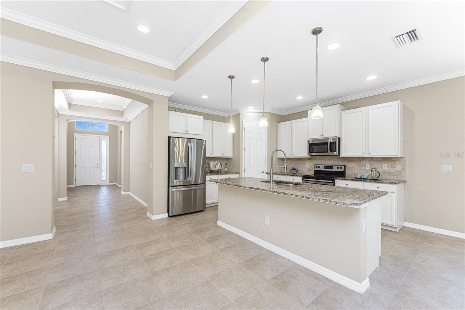 Welcome to this beautifully upgraded custom Edison model by DR Horton, offering 1,984 square feet under air with 3 spacious bedrooms, a versatile office/den, and 2 full bathrooms. Located in a highly sought-after area of Venice in the gated community of Carribbean Village - just minutes from Wellen Park, world-class beaches, and charming downtown Venice with its vibrant restaurants and boutique shops.Step through the elegant double-arched entryway into a home that exudes style and sophistication. The soaring 9'4" tray ceilings in the entry hall, great room, primary suite, and both bathrooms create an airy, open feel, further elevated by custom crown molding throughout.Every detail has been carefully considered--from the brick-pavered driveway and front entry to the lovely brick-pavered lanai, perfect for relaxing with a serene private garden view. The home features tile flooring throughout, with laminate floors in the primary and guest bedrooms for added comfort and style.The spacious kitchen is a chef's dream with wood cabinetry, granite countertops, tiled backsplash, and stainless steel appliances--including a 2023 refrigerator and 2024 microwave. The primary ensuite is a true retreat, featuring a double sink wood vanity, a luxurious garden tub, and a fabulous walk-in tiled shower.Enjoy year-round peace of mind with accordion hurricane protection on all windows and doors, providing both security and convenience.Additional upgrades and highlights include:2024 Air Conditioner2023 Washer & Dryer2-Car Garage with 2025 Polyaspartic Epoxy Flooring.Situated near I-75 for convenient travel to Sarasota to the north and Naples to the south, this meticulously maintained home combines luxury, location, and lifestyle.A truly beautiful custom home--ready for you to move in and make it your own! JUST REDUCED ON 9/5/25 TO SELL - LOWEST AND BEST PRICED HOME IN CARIBBEAN VILLAGE!
