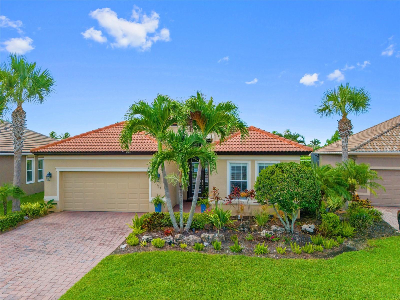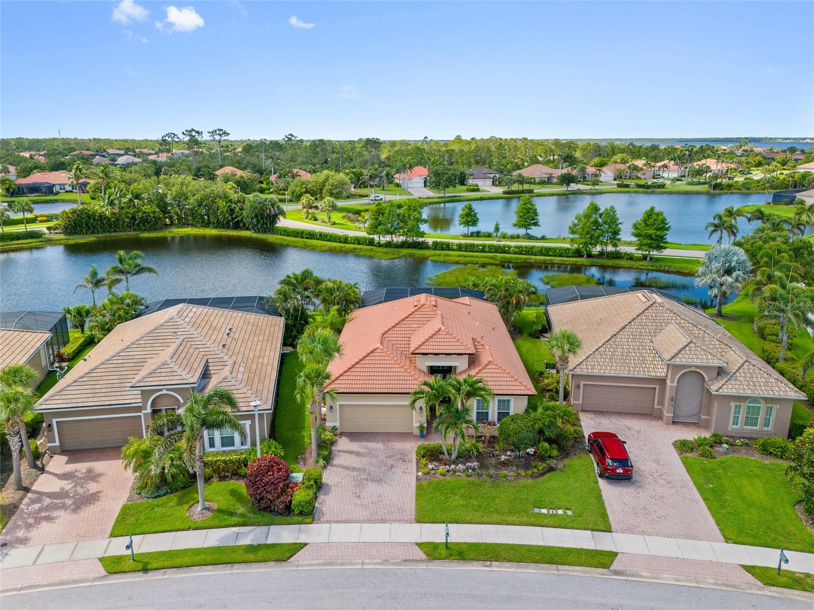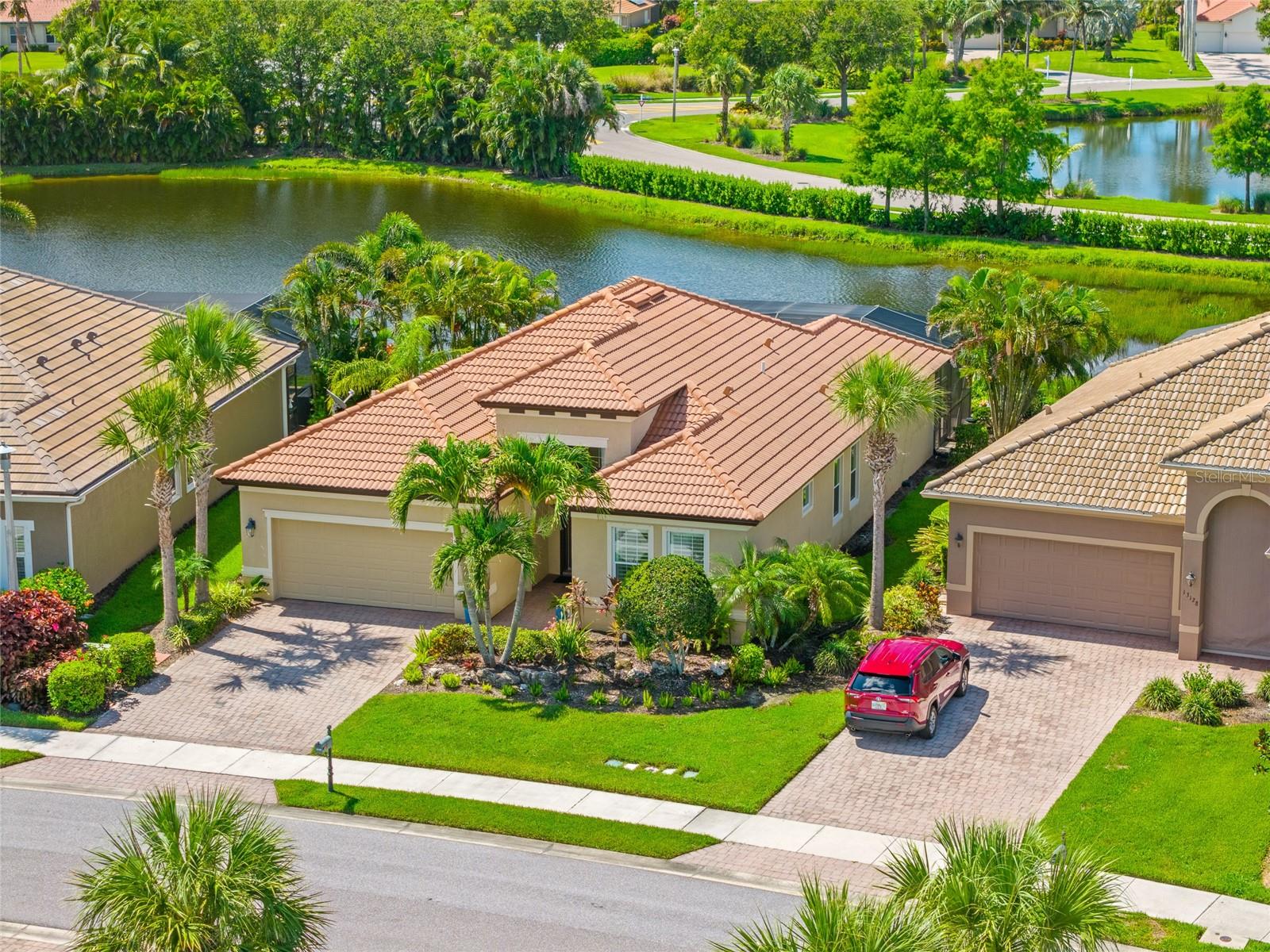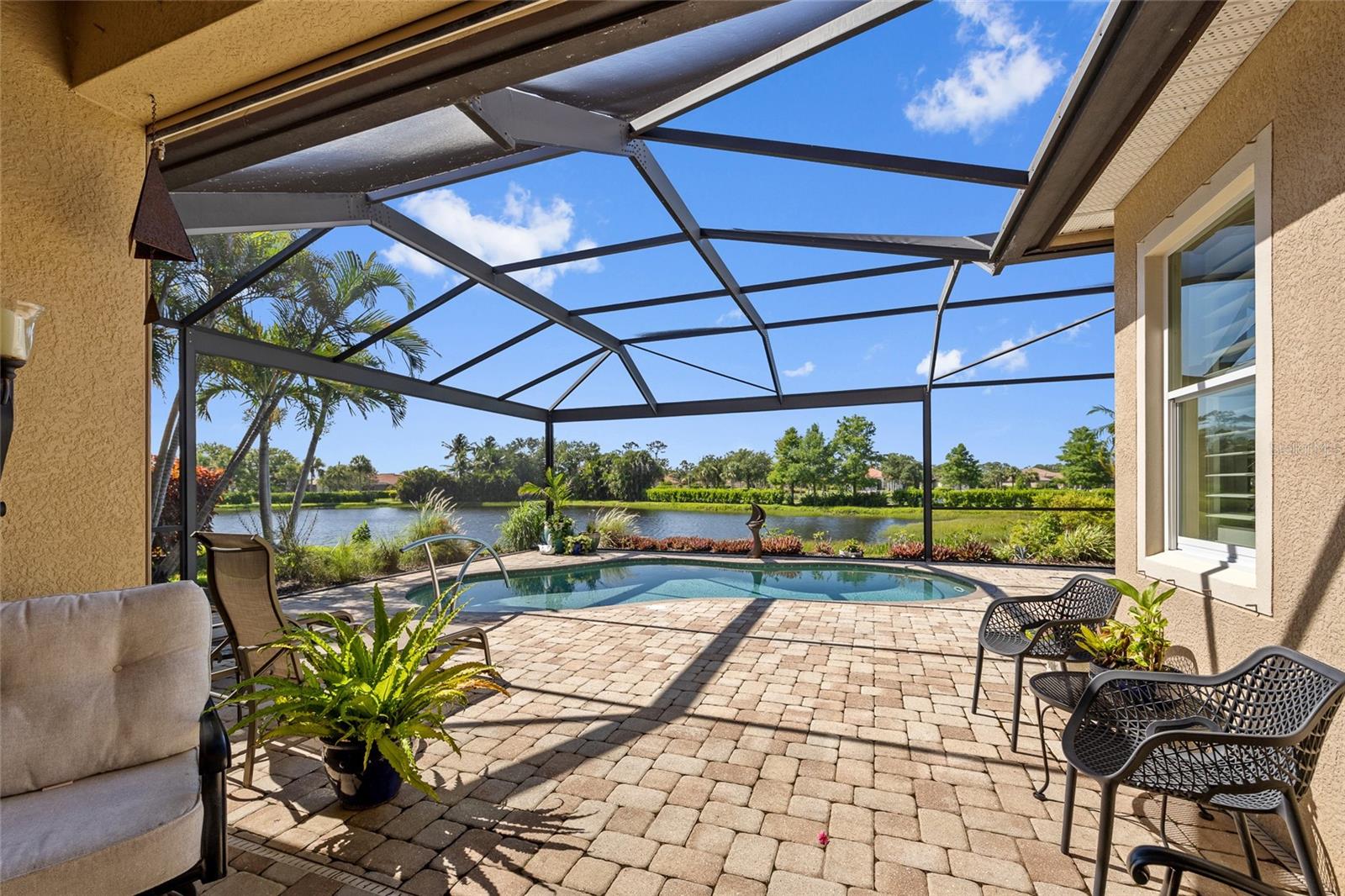 EXCEPTIONAL 3 BEDROOM, 2 BATH, 2-CAR GARAGE LAKEFRONT POOL HOME LOCATED IN THE HIGHLY DESIRED GOLFING COMMUNITY OF RIVERWOOD! Enjoy a quiet community with amazing lake views, beautiful wildlife and a fantastic location minutes from the Myakka River and just a short ride to white sandy beaches. Step inside to experience an open floor plan offering an unparalleled blend of elegance and comfort highlighted by high ceilings and designer accents, including crown molding and tall entryways. The living area features a large slider that opens to the lanai, showcasing breathtaking water views and your private pool. Enjoy hosting dinners in the formal dining area or casual meals in the breakfast nook, complete with sliders leading to the lanai. The kitchen is a chef's delight, boasting granite countertops, light cabinetry, and stainless appliances, including a newer French door refrigerator. The luxurious primary suite offers access to the lanai, serene lake views, and a private ensuite with dual vanities, a garden tub, and a walk-in shower. A light and bright guest bedroom and a separate full bath ensure comfort for visitors. The den/office can easily be converted to 3rd bedroom for extended family and guests. For convenience, the home includes an inside laundry with extra cabinets for storage. The outdoor entertaining area is perfect for gatherings, featuring a covered lanai, outdoor kitchen with a built-in gas grill and beverage cooler, and a saltwater freeform pool. Enjoy the panoramic screen views of the lake and the southeastern exposure that brings an abundance of Florida sunshine. This meticulously maintained home has seen numerous updates since 2023, including an electric roll-down shutter for the front door and lanai area, a new pool pump, and new grates for the Bull grill. The exterior is being freshly painted and is surrounded by lush tropical landscaping and meticulously maintained grounds. As a resident of Riverwood, indulge in a wealth of amenities such as a full fitness center, community pools, spa, tennis courts, pickleball, bocce ball, and more. The community offers a vibrant lifestyle with over 60 events and activities managed by a full-time activities director. Golf enthusiasts will love the par 72 championship course designed by Gene Bates, complete with extraordinary wildlife views. Plus, the conveniently located Beach Club on Manasota Key adds a touch of luxury to your living experience. This is more than a home; it's a lifestyle. Don't miss this opportunity to own a slice of paradise. Schedule your private showing today and discover everything that Southwest Florida has to offer!