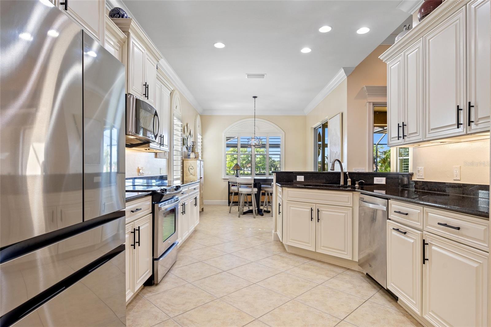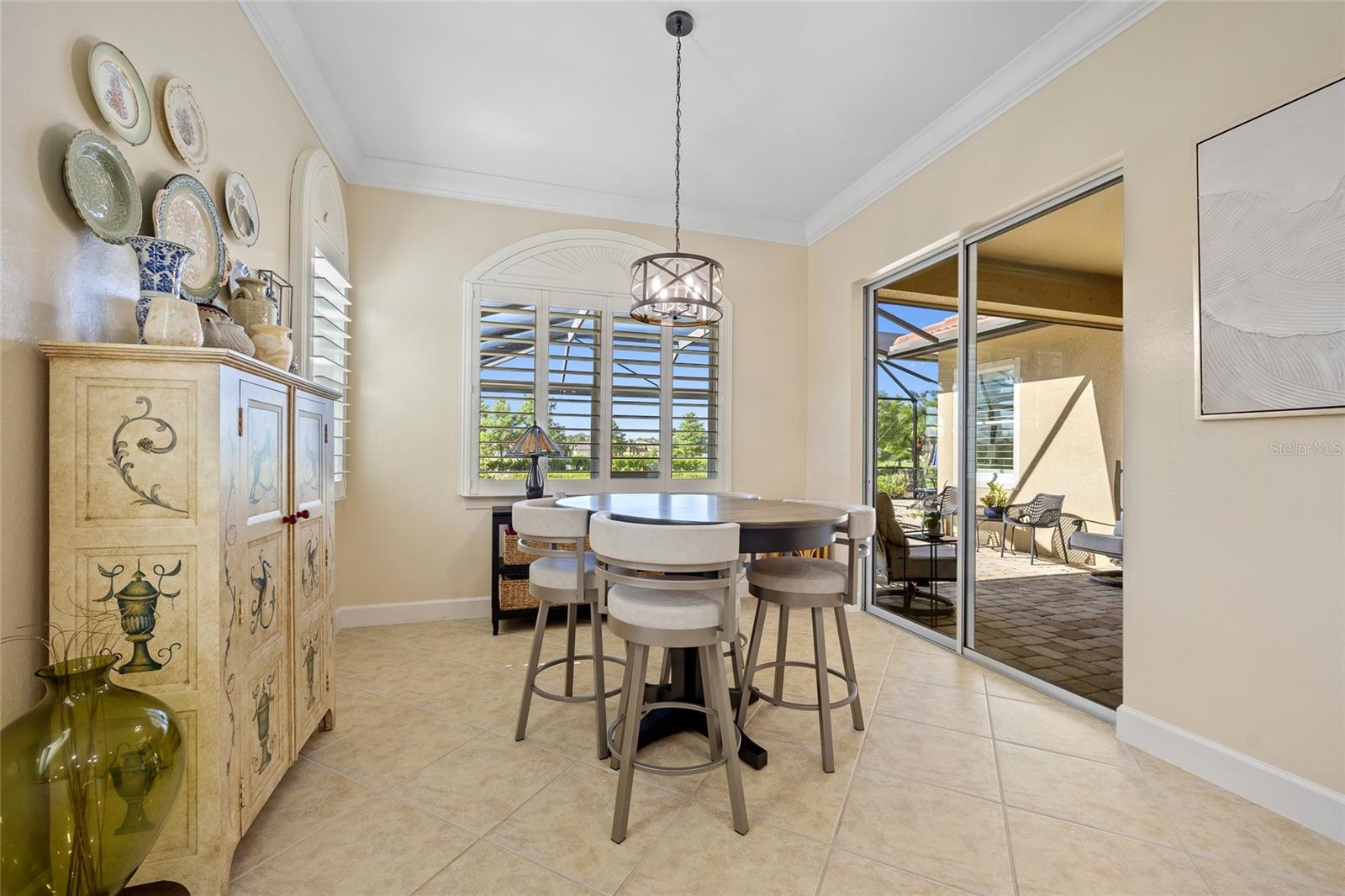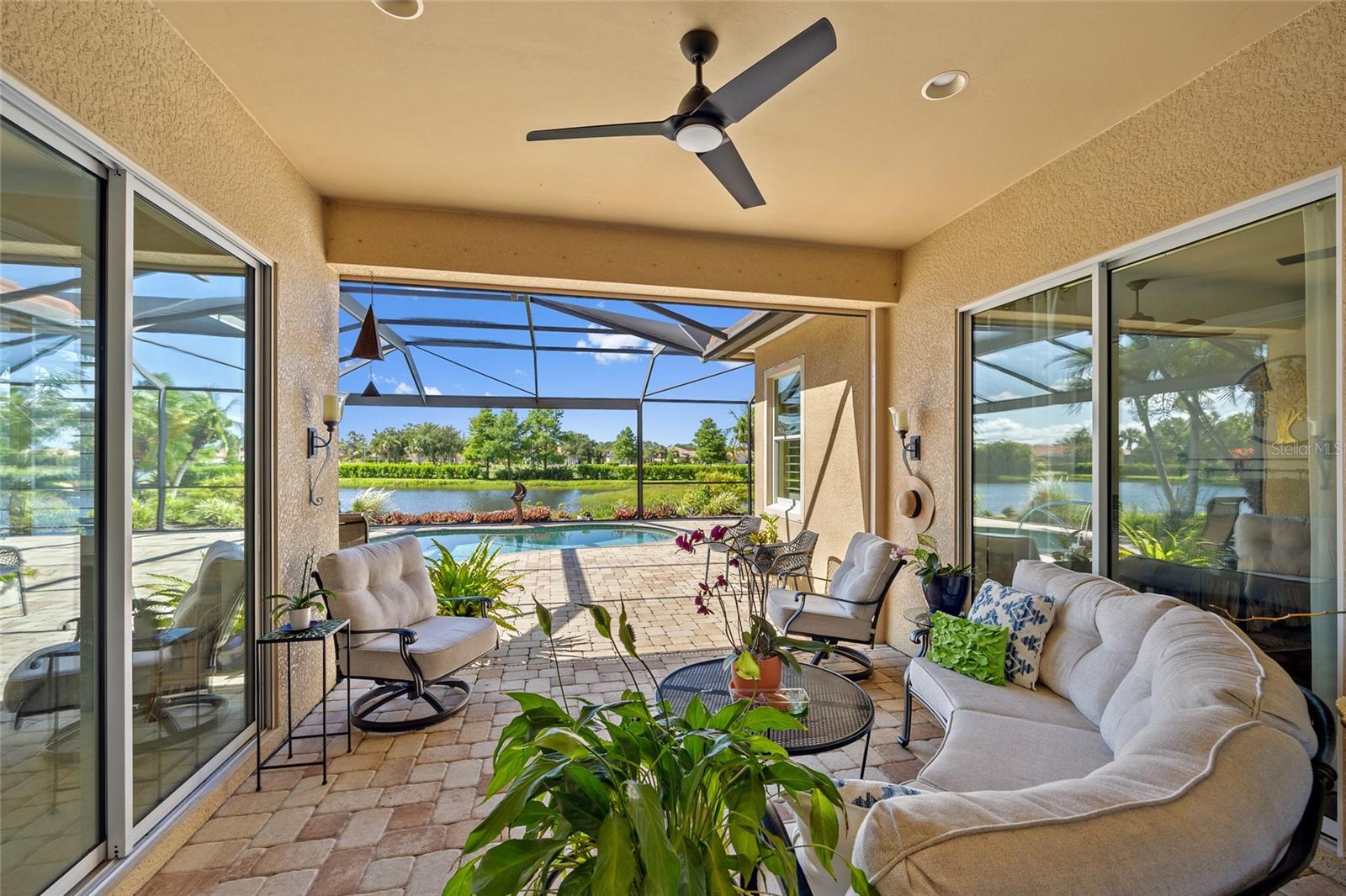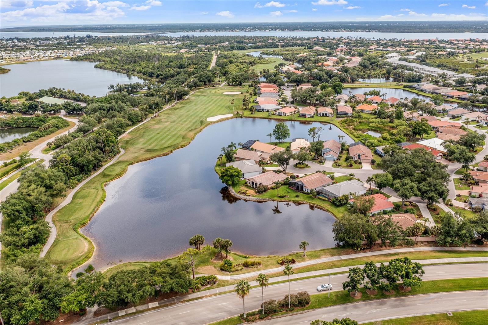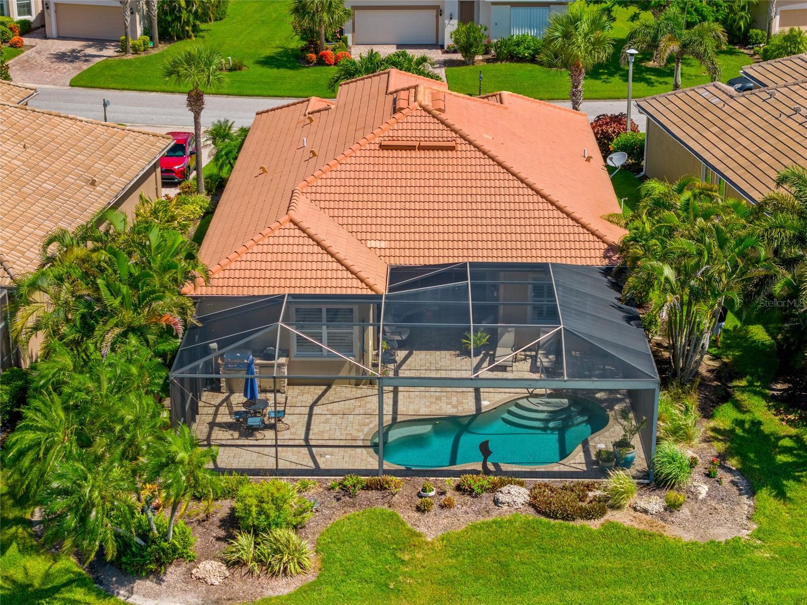 EXCEPTIONAL 3 BEDROOM, 2 BATH, 2-CAR GARAGE LAKEFRONT POOL HOME LOCATED IN THE HIGHLY DESIRED GOLFING COMMUNITY OF RIVERWOOD! Enjoy a quiet community with amazing lake views, beautiful wildlife and a fantastic location minutes from the Myakka River and just a short ride to white sandy beaches. Step inside to experience an open floor plan offering an unparalleled blend of elegance and comfort highlighted by high ceilings and designer accents, including crown molding and tall entryways. The living area features a large slider that opens to the lanai, showcasing breathtaking water views and your private pool. Enjoy hosting dinners in the formal dining area or casual meals in the breakfast nook, complete with sliders leading to the lanai. The kitchen is a chef's delight, boasting granite countertops, light cabinetry, and stainless appliances, including a newer French door refrigerator. The luxurious primary suite offers access to the lanai, serene lake views, and a private ensuite with dual vanities, a garden tub, and a walk-in shower. A light and bright guest bedroom and a separate full bath ensure comfort for visitors. The den/office can easily be converted to 3rd bedroom for extended family and guests. For convenience, the home includes an inside laundry with extra cabinets for storage. The outdoor entertaining area is perfect for gatherings, featuring a covered lanai, outdoor kitchen with a built-in gas grill and beverage cooler, and a saltwater freeform pool. Enjoy the panoramic screen views of the lake and the southeastern exposure that brings an abundance of Florida sunshine. This meticulously maintained home has seen numerous updates since 2023, including an electric roll-down shutter for the front door and lanai area, a new pool pump, and new grates for the Bull grill. The exterior is being freshly painted and is surrounded by lush tropical landscaping and meticulously maintained grounds. As a resident of Riverwood, indulge in a wealth of amenities such as a full fitness center, community pools, spa, tennis courts, pickleball, bocce ball, and more. The community offers a vibrant lifestyle with over 60 events and activities managed by a full-time activities director. Golf enthusiasts will love the par 72 championship course designed by Gene Bates, complete with extraordinary wildlife views. Plus, the conveniently located Beach Club on Manasota Key adds a touch of luxury to your living experience. This is more than a home; it's a lifestyle. Don't miss this opportunity to own a slice of paradise. Schedule your private showing today and discover everything that Southwest Florida has to offer!