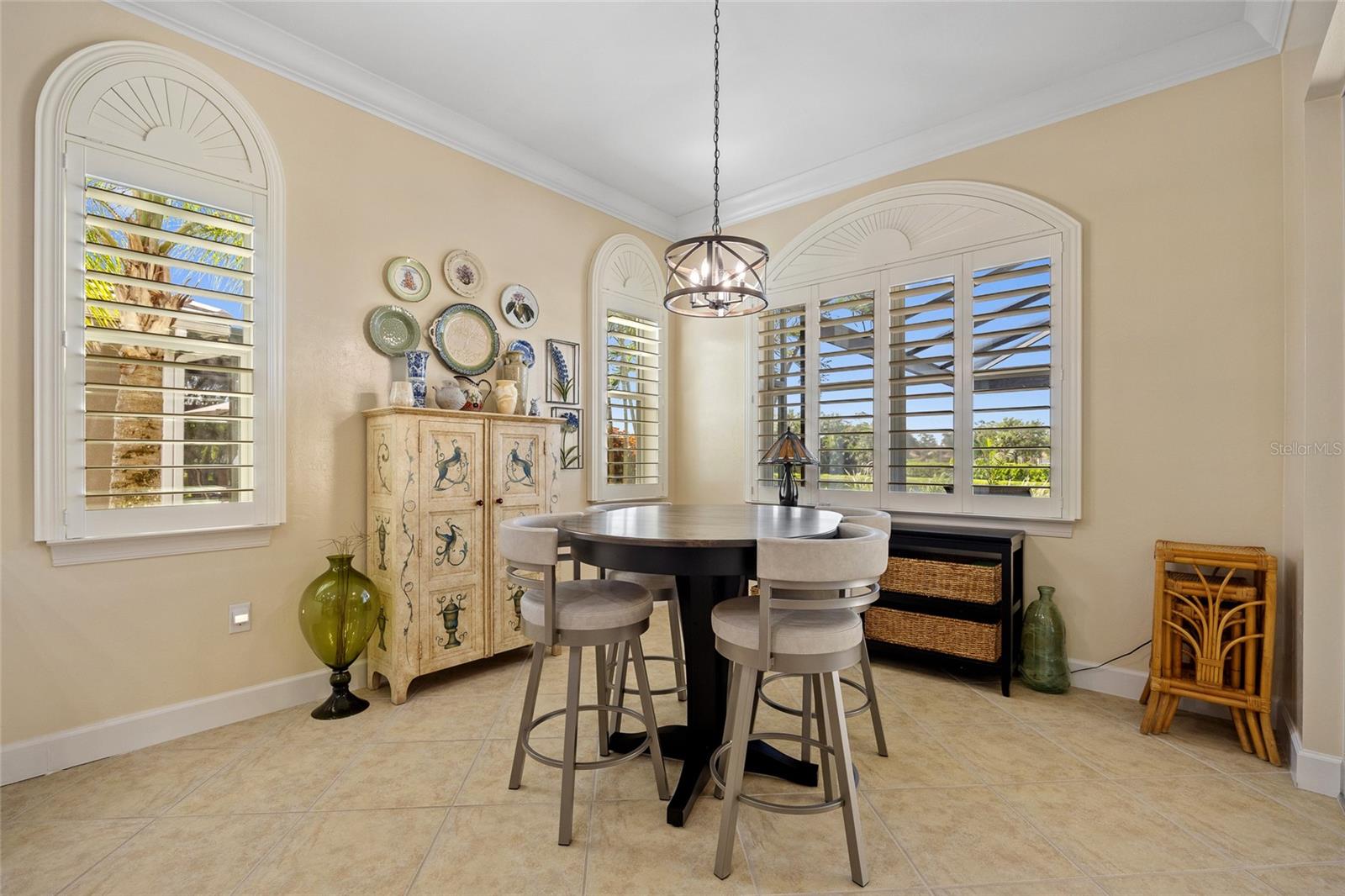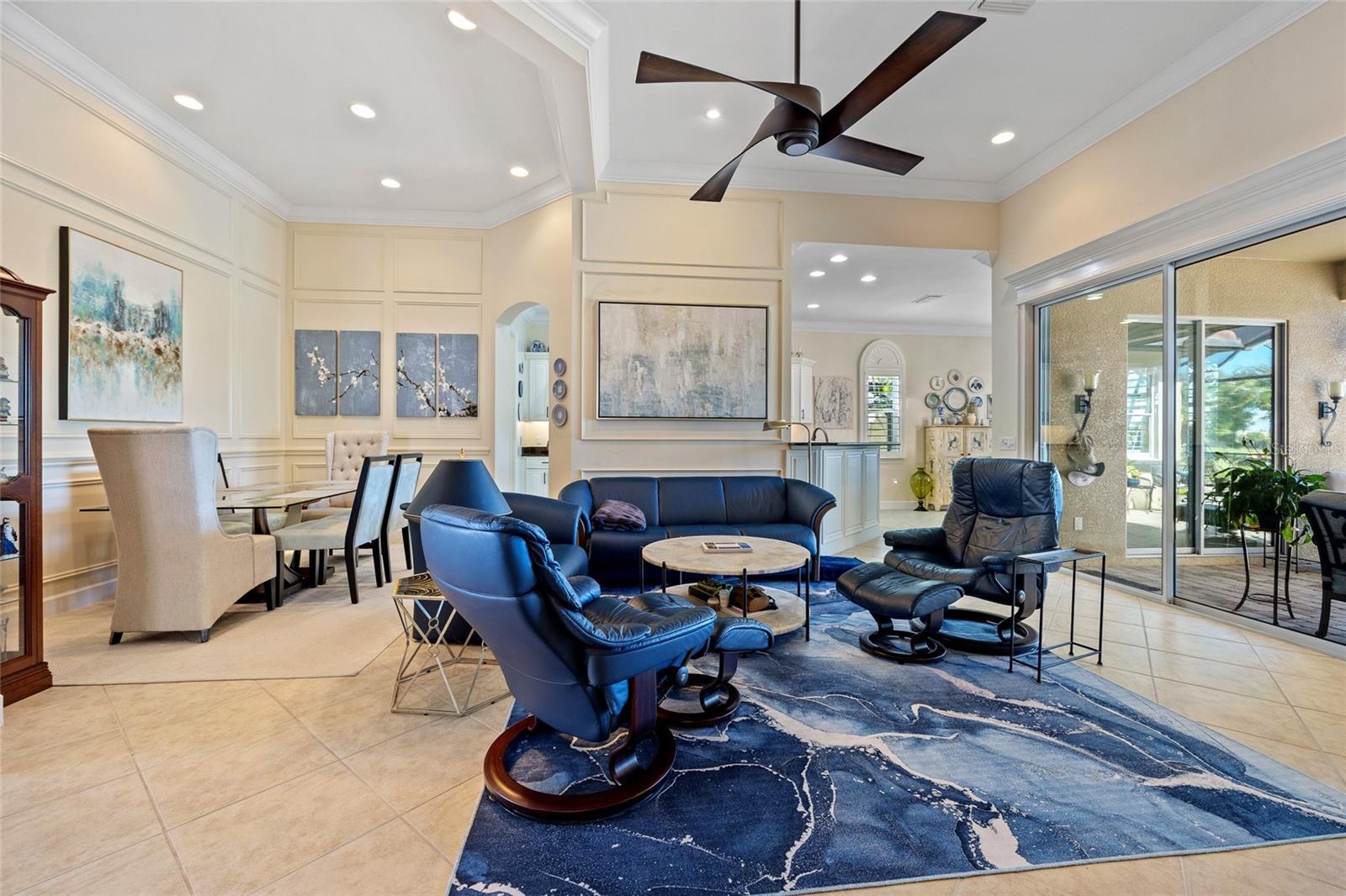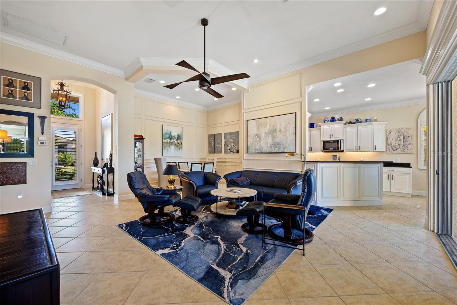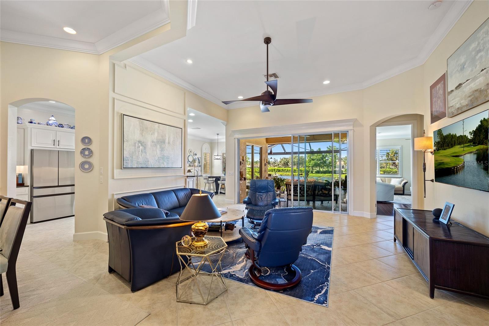 EXCEPTIONAL 3 BEDROOM, 2 BATH, 2-CAR GARAGE LAKEFRONT POOL HOME LOCATED IN THE HIGHLY DESIRED GOLFING COMMUNITY OF RIVERWOOD! Enjoy a quiet community with amazing lake views, beautiful wildlife and a fantastic location minutes from the Myakka River and just a short ride to white sandy beaches. Step inside to experience an open floor plan offering an unparalleled blend of elegance and comfort highlighted by high ceilings and designer accents, including crown molding and tall entryways. The living area features a large slider that opens to the lanai, showcasing breathtaking water views and your private pool. Enjoy hosting dinners in the formal dining area or casual meals in the breakfast nook, complete with sliders leading to the lanai. The kitchen is a chef's delight, boasting granite countertops, light cabinetry, and stainless appliances, including a newer French door refrigerator. The luxurious primary suite offers access to the lanai, serene lake views, and a private ensuite with dual vanities, a garden tub, and a walk-in shower. A light and bright guest bedroom and a separate full bath ensure comfort for visitors. The den/office can easily be converted to 3rd bedroom for extended family and guests. For convenience, the home includes an inside laundry with extra cabinets for storage. The outdoor entertaining area is perfect for gatherings, featuring a covered lanai, outdoor kitchen with a built-in gas grill and beverage cooler, and a saltwater freeform pool. Enjoy the panoramic screen views of the lake and the southeastern exposure that brings an abundance of Florida sunshine. This meticulously maintained home has seen numerous updates since 2023, including an electric roll-down shutter for the front door and lanai area, a new pool pump, and new grates for the Bull grill. The exterior is being freshly painted and is surrounded by lush tropical landscaping and meticulously maintained grounds. As a resident of Riverwood, indulge in a wealth of amenities such as a full fitness center, community pools, spa, tennis courts, pickleball, bocce ball, and more. The community offers a vibrant lifestyle with over 60 events and activities managed by a full-time activities director. Golf enthusiasts will love the par 72 championship course designed by Gene Bates, complete with extraordinary wildlife views. Plus, the conveniently located Beach Club on Manasota Key adds a touch of luxury to your living experience. This is more than a home; it's a lifestyle. Don't miss this opportunity to own a slice of paradise. Schedule your private showing today and discover everything that Southwest Florida has to offer!