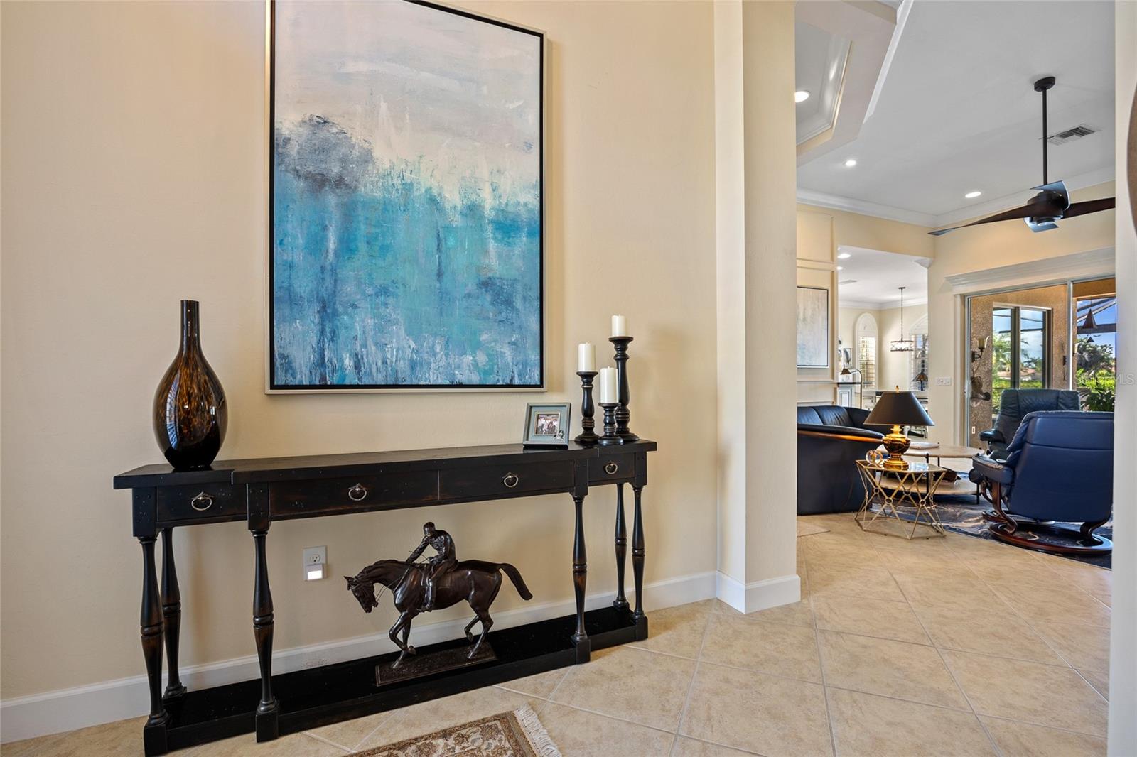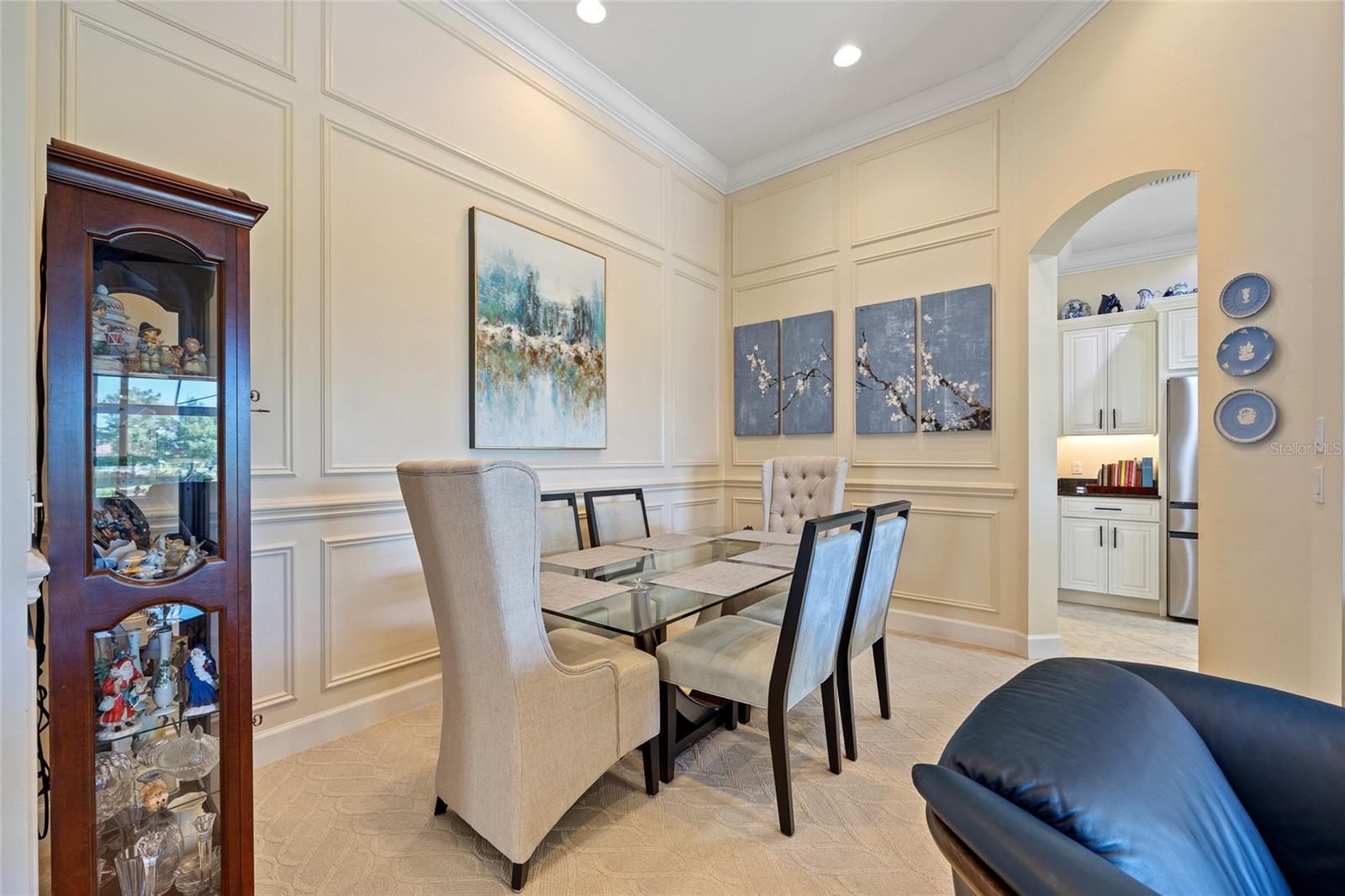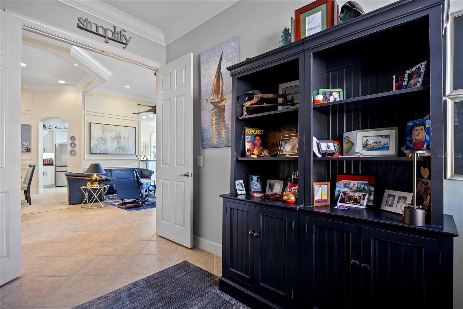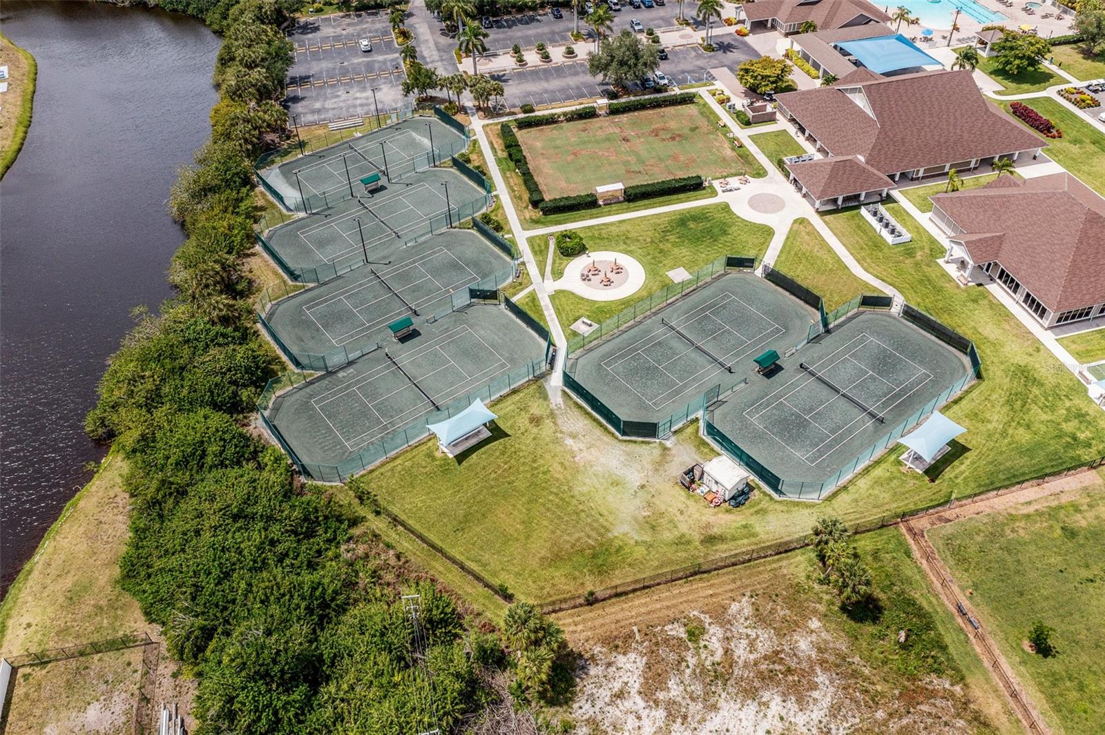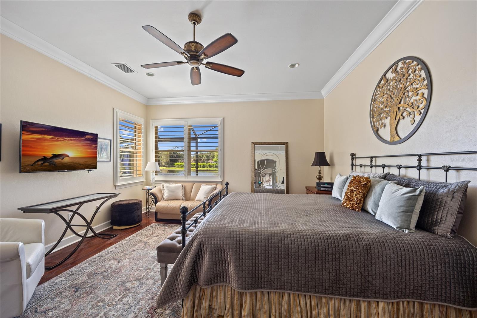 EXCEPTIONAL 3 BEDROOM, 2 BATH, 2-CAR GARAGE LAKEFRONT POOL HOME LOCATED IN THE HIGHLY DESIRED GOLFING COMMUNITY OF RIVERWOOD! Enjoy a quiet community with amazing lake views, beautiful wildlife and a fantastic location minutes from the Myakka River and just a short ride to white sandy beaches. Step inside to experience an open floor plan offering an unparalleled blend of elegance and comfort highlighted by high ceilings and designer accents, including crown molding and tall entryways. The living area features a large slider that opens to the lanai, showcasing breathtaking water views and your private pool. Enjoy hosting dinners in the formal dining area or casual meals in the breakfast nook, complete with sliders leading to the lanai. The kitchen is a chef's delight, boasting granite countertops, light cabinetry, and stainless appliances, including a newer French door refrigerator. The luxurious primary suite offers access to the lanai, serene lake views, and a private ensuite with dual vanities, a garden tub, and a walk-in shower. A light and bright guest bedroom and a separate full bath ensure comfort for visitors. The den/office can easily be converted to 3rd bedroom for extended family and guests. For convenience, the home includes an inside laundry with extra cabinets for storage. The outdoor entertaining area is perfect for gatherings, featuring a covered lanai, outdoor kitchen with a built-in gas grill and beverage cooler, and a saltwater freeform pool. Enjoy the panoramic screen views of the lake and the southeastern exposure that brings an abundance of Florida sunshine. This meticulously maintained home has seen numerous updates since 2023, including an electric roll-down shutter for the front door and lanai area, a new pool pump, and new grates for the Bull grill. The exterior is being freshly painted and is surrounded by lush tropical landscaping and meticulously maintained grounds. As a resident of Riverwood, indulge in a wealth of amenities such as a full fitness center, community pools, spa, tennis courts, pickleball, bocce ball, and more. The community offers a vibrant lifestyle with over 60 events and activities managed by a full-time activities director. Golf enthusiasts will love the par 72 championship course designed by Gene Bates, complete with extraordinary wildlife views. Plus, the conveniently located Beach Club on Manasota Key adds a touch of luxury to your living experience. This is more than a home; it's a lifestyle. Don't miss this opportunity to own a slice of paradise. Schedule your private showing today and discover everything that Southwest Florida has to offer!