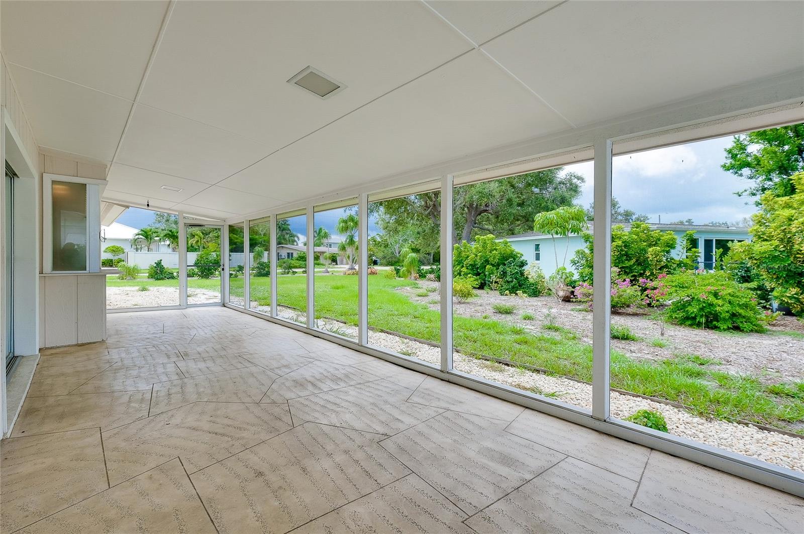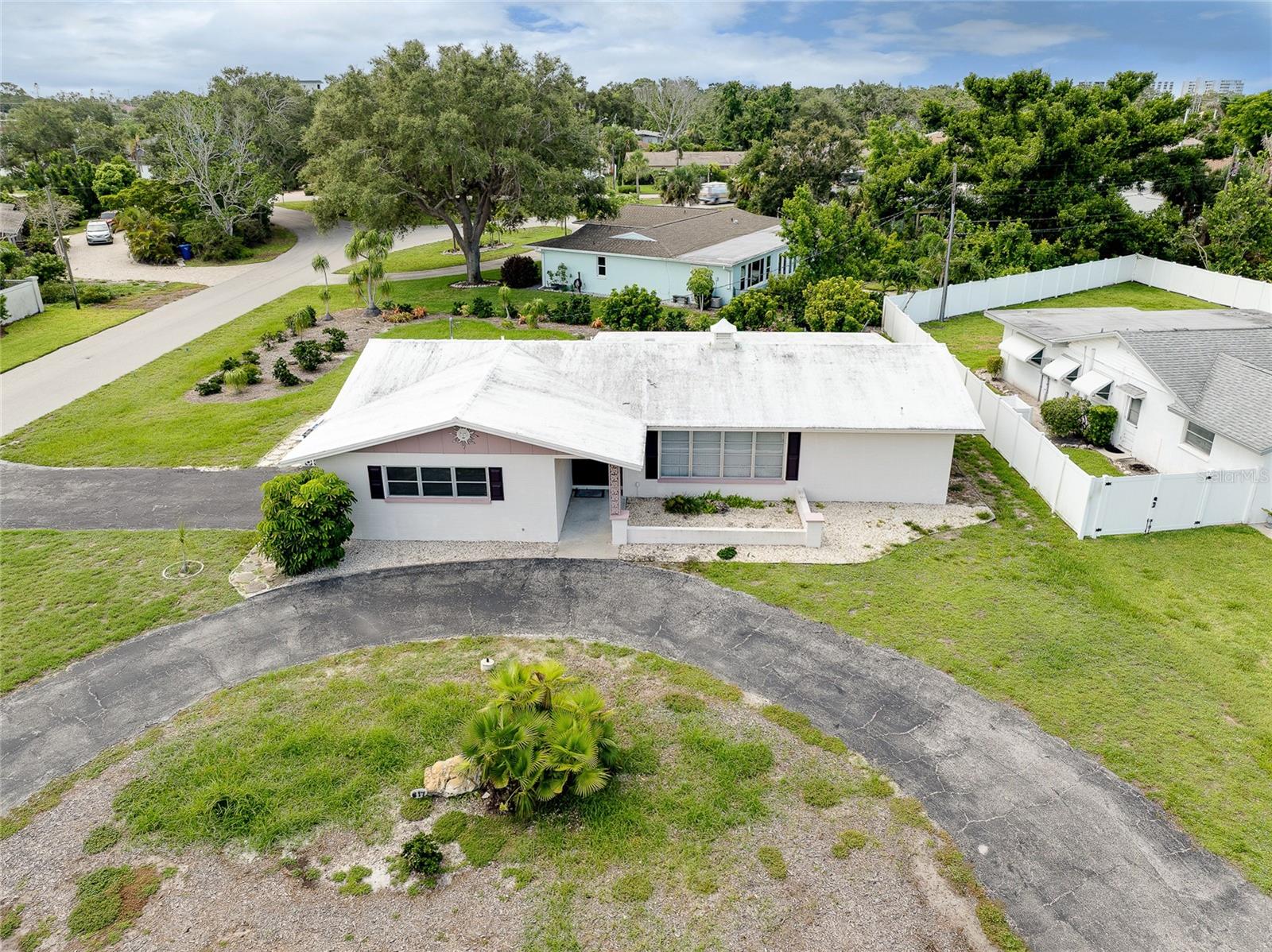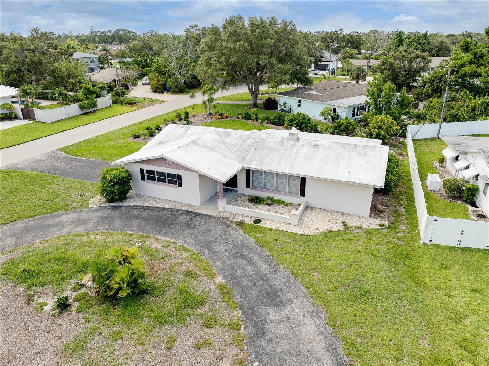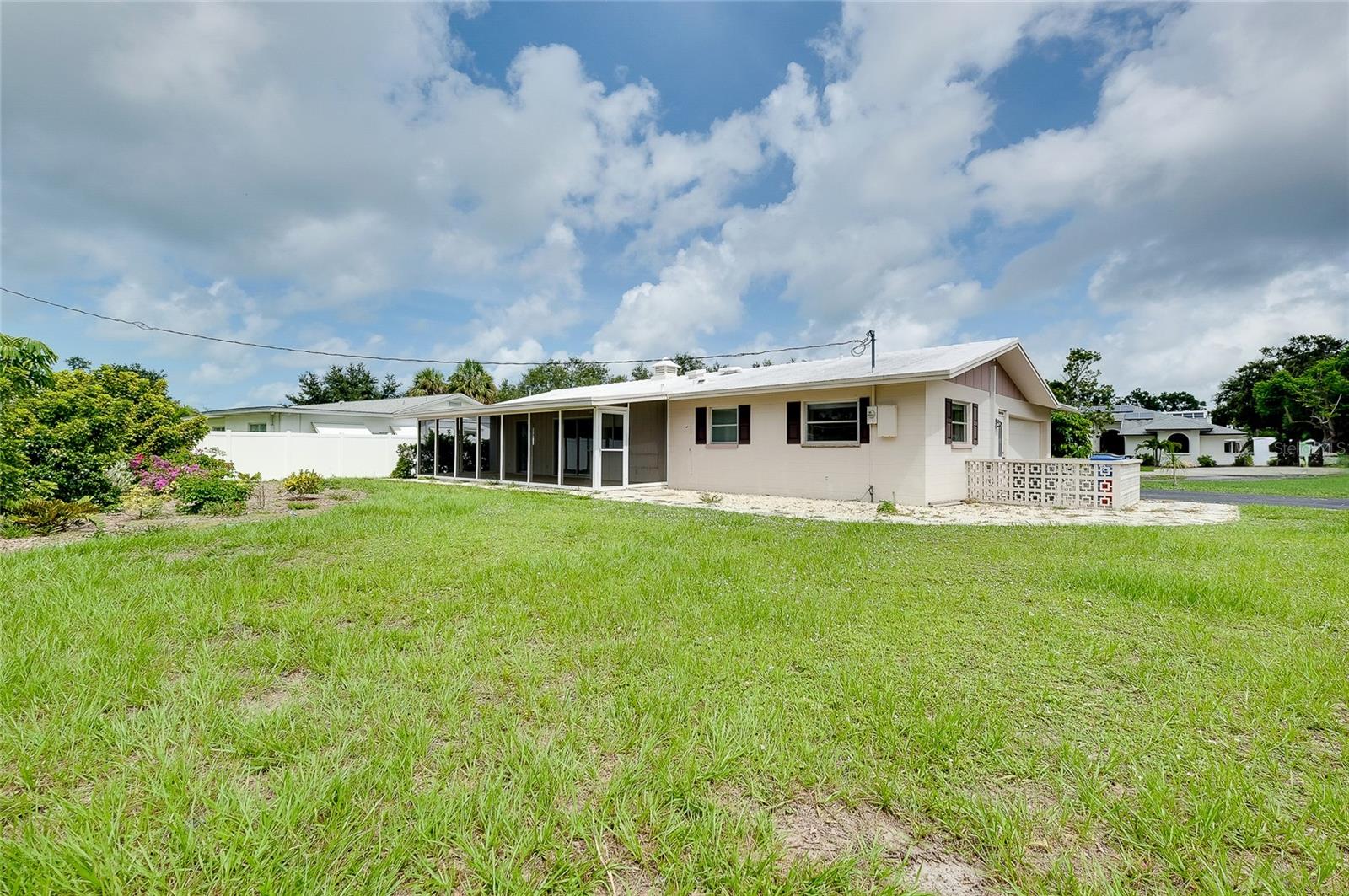 CHARMING COASTAL HOME ON RARE OVERSIZE VENICE ISLAND CORNER LOT: Nestled away on the desirable north side of Venice Island, this charming 2-bedroom, 2-bath block home sits on a rare oversized corner lot with over 12,500 square feet of land--offering both space and opportunity in one of the island's most sought-after neighborhoods. Designed for functionality and future potential, the property affords a spacious side-entry two-car garage featuring its own dedicated driveway, complemented by a separate circular driveway out front, creating ample parking for residents and guests alike. Inside, the home boasts a large open kitchen complete with a movable central island, custom cabinet pullouts, and abundant counter space--ideal for cooking, entertaining, or casual gatherings. Pocket sliding doors open to a generous size screened lanai with stamped concrete flooring, seamlessly blending indoor and outdoor living. Whether you are enjoying a peaceful morning coffee or hosting friends for a sunset gathering, the lanai offers the perfect space to relax and envision future enhancements such as a pool, spa, or outdoor kitchen. Showcasing a split-bedroom layout, the floorplan ensures privacy, with both bathrooms featuring tiled showers and ample space. The home is equipped with a 2019 HVAC system and offers just under 1,300 square feet under air, providing a cozy and efficient floorplan that is move-in ready or ready for your personal updates. Located just a short stroll from West Venice Avenue, this home places you minutes from boutique shopping, fine dining, seasonal festivals, and Venice's vibrant farmers market. The Gulf beaches, known for their soft sand and legendary shark teeth, are just down the road, offering four miles of breathtaking coastline to explore. Whether you are seeking a full-time residence, winter escape, or a blank canvas for your dream coastal retreat, this property delivers the lot size, location, and lifestyle that make island living so exceptional.