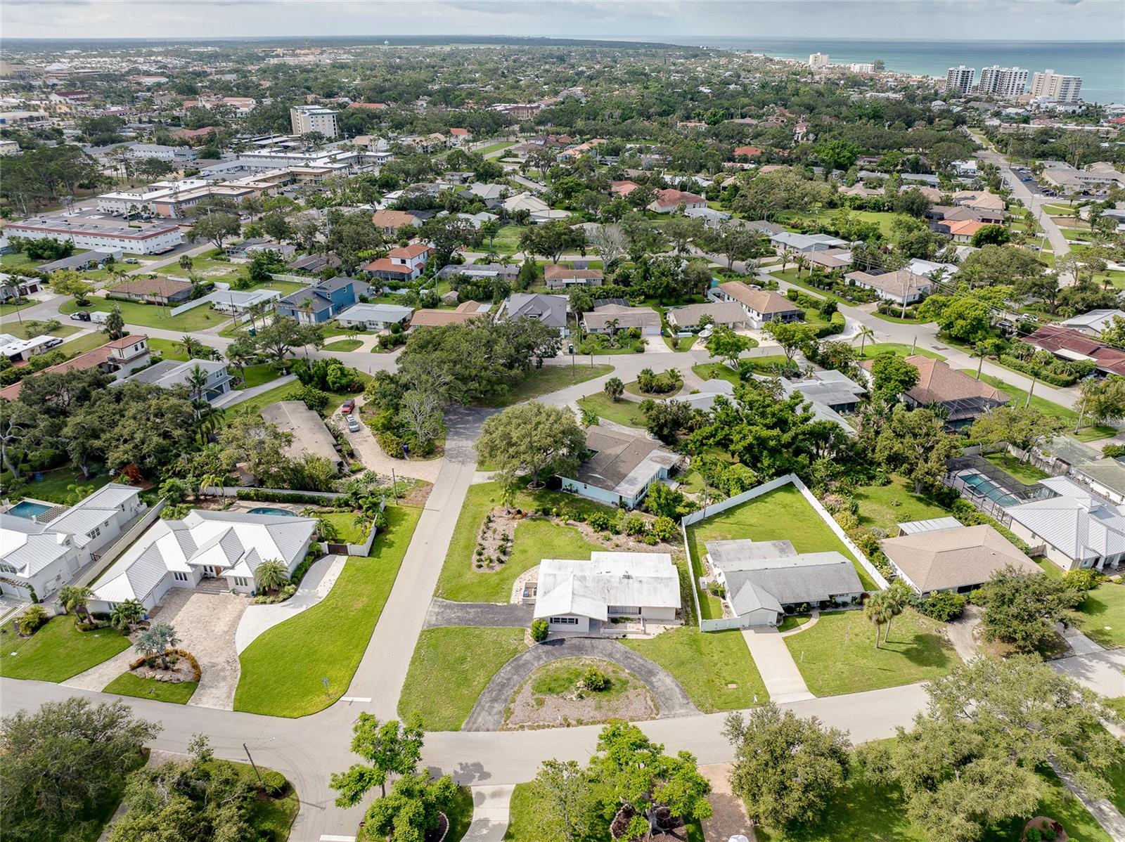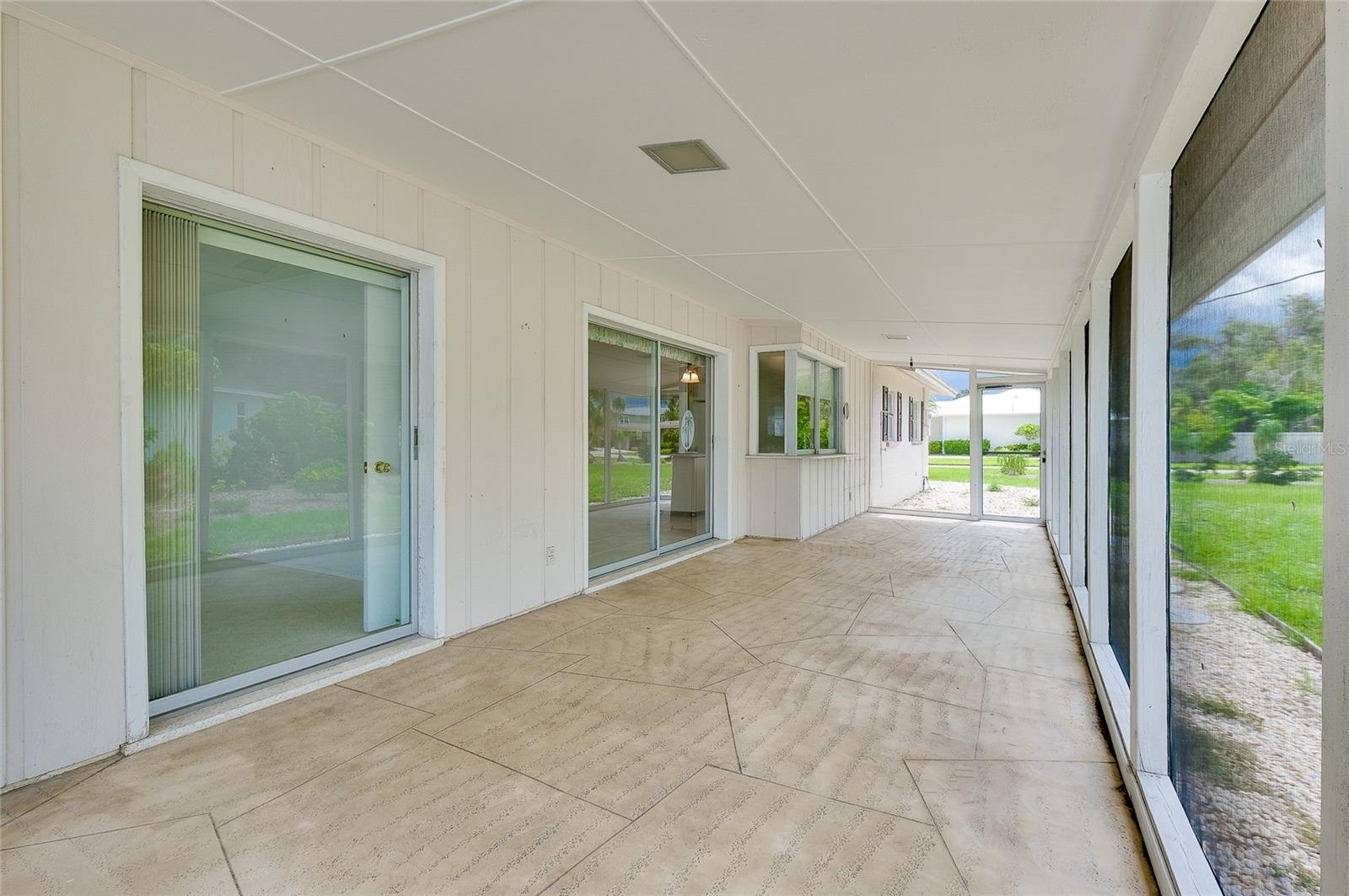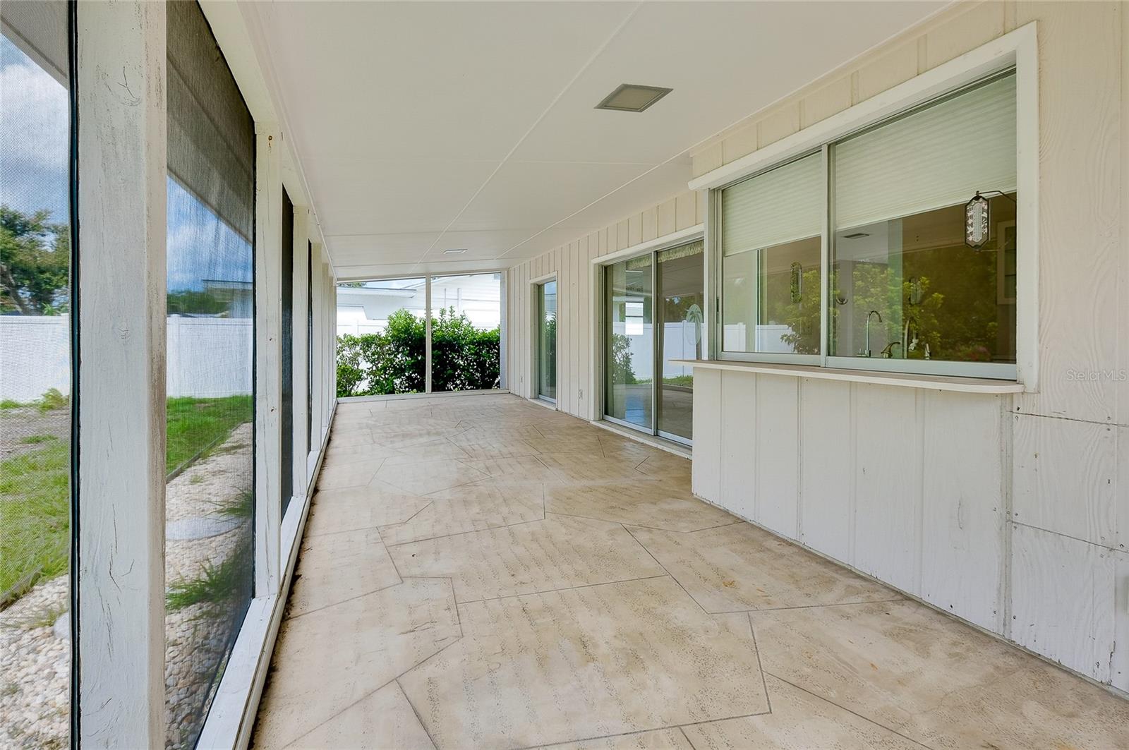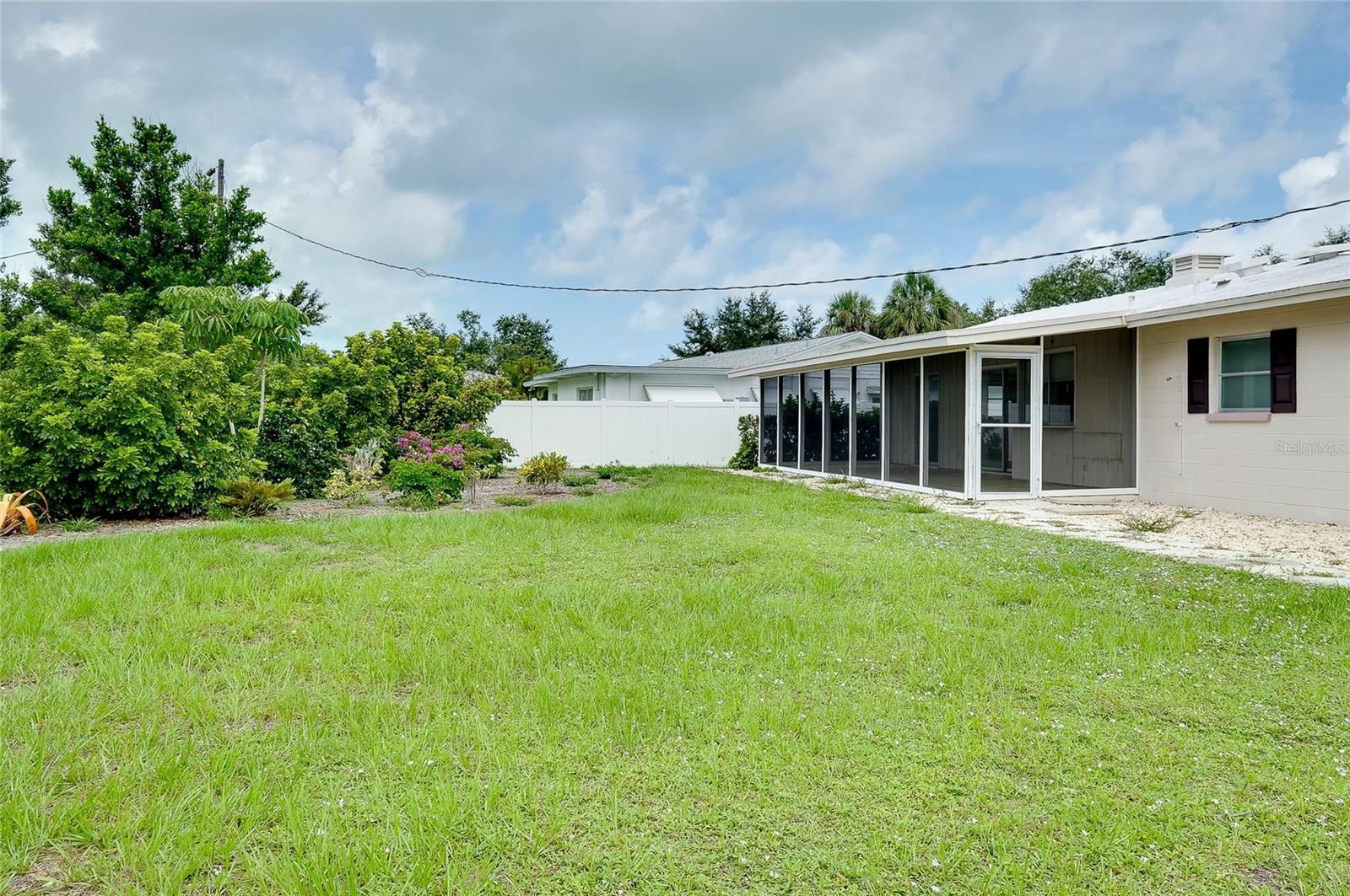 CHARMING COASTAL HOME ON RARE OVERSIZE VENICE ISLAND CORNER LOT: Nestled away on the desirable north side of Venice Island, this charming 2-bedroom, 2-bath block home sits on a rare oversized corner lot with over 12,500 square feet of land--offering both space and opportunity in one of the island's most sought-after neighborhoods. Designed for functionality and future potential, the property affords a spacious side-entry two-car garage featuring its own dedicated driveway, complemented by a separate circular driveway out front, creating ample parking for residents and guests alike. Inside, the home boasts a large open kitchen complete with a movable central island, custom cabinet pullouts, and abundant counter space--ideal for cooking, entertaining, or casual gatherings. Pocket sliding doors open to a generous size screened lanai with stamped concrete flooring, seamlessly blending indoor and outdoor living. Whether you are enjoying a peaceful morning coffee or hosting friends for a sunset gathering, the lanai offers the perfect space to relax and envision future enhancements such as a pool, spa, or outdoor kitchen. Showcasing a split-bedroom layout, the floorplan ensures privacy, with both bathrooms featuring tiled showers and ample space. The home is equipped with a 2019 HVAC system and offers just under 1,300 square feet under air, providing a cozy and efficient floorplan that is move-in ready or ready for your personal updates. Located just a short stroll from West Venice Avenue, this home places you minutes from boutique shopping, fine dining, seasonal festivals, and Venice's vibrant farmers market. The Gulf beaches, known for their soft sand and legendary shark teeth, are just down the road, offering four miles of breathtaking coastline to explore. Whether you are seeking a full-time residence, winter escape, or a blank canvas for your dream coastal retreat, this property delivers the lot size, location, and lifestyle that make island living so exceptional.