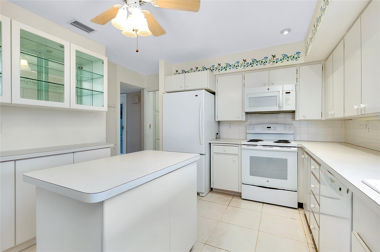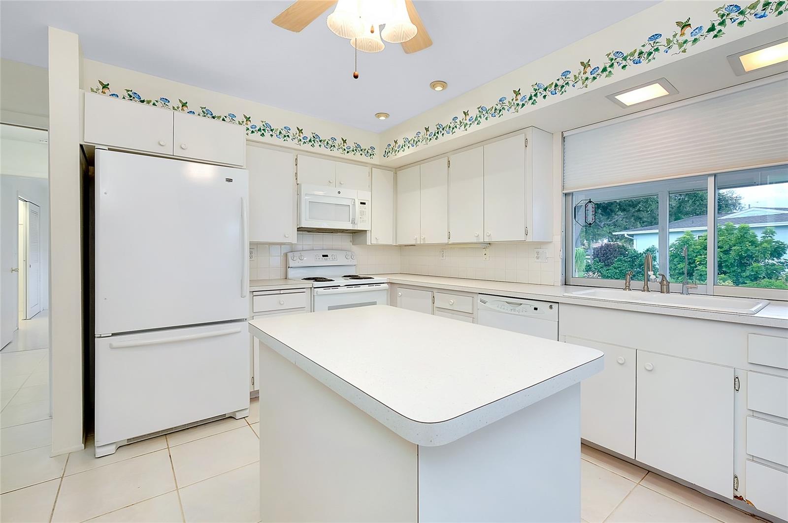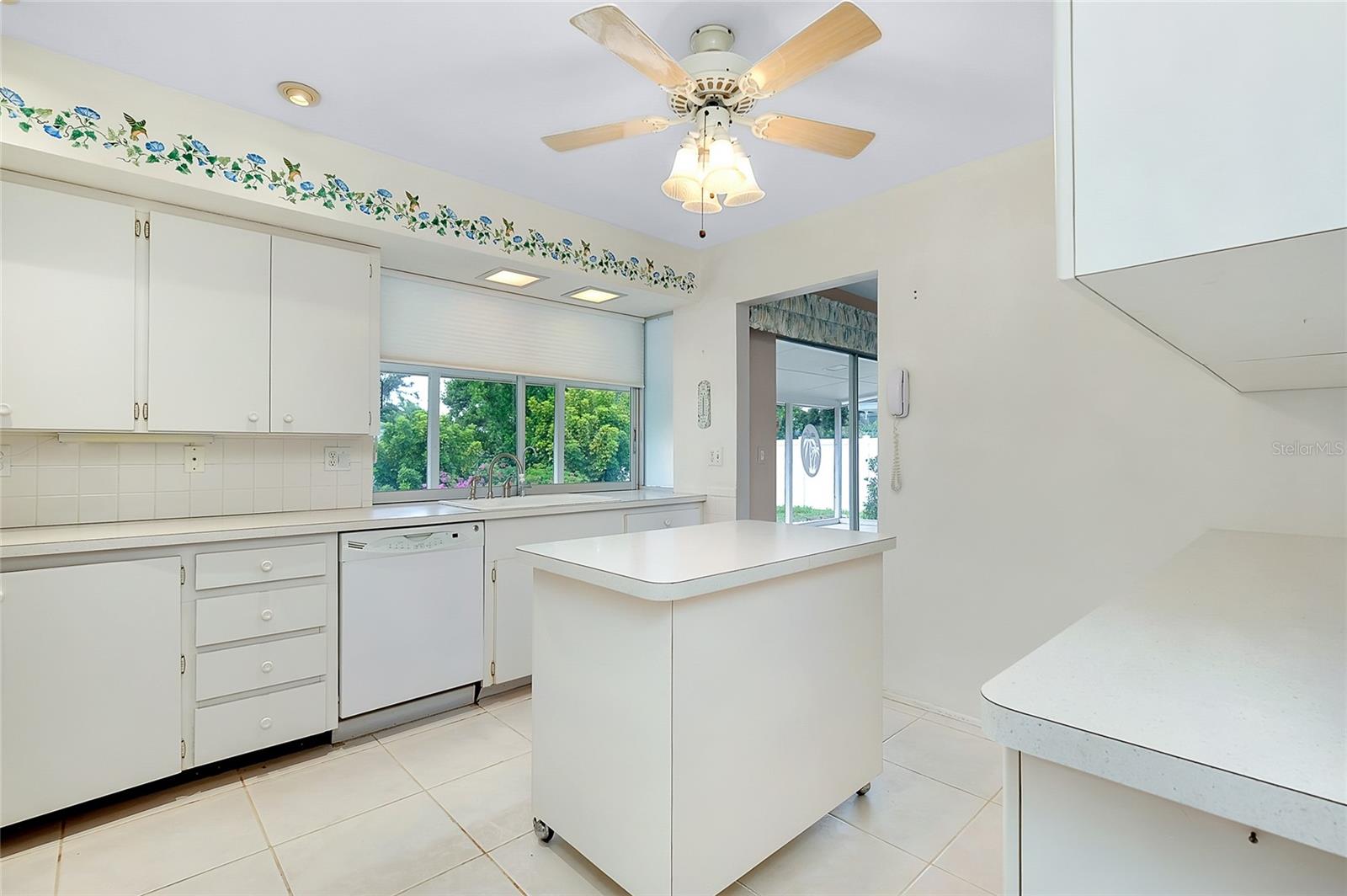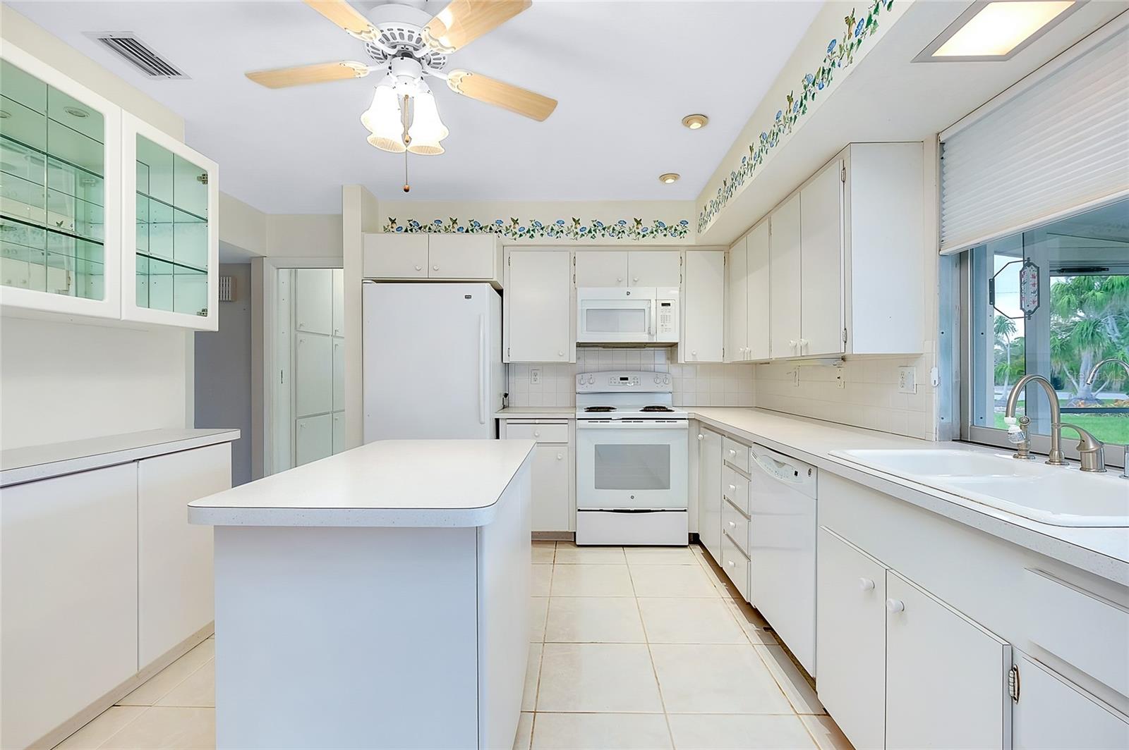 CHARMING COASTAL HOME ON RARE OVERSIZE VENICE ISLAND CORNER LOT: Nestled away on the desirable north side of Venice Island, this charming 2-bedroom, 2-bath block home sits on a rare oversized corner lot with over 12,500 square feet of land--offering both space and opportunity in one of the island's most sought-after neighborhoods. Designed for functionality and future potential, the property affords a spacious side-entry two-car garage featuring its own dedicated driveway, complemented by a separate circular driveway out front, creating ample parking for residents and guests alike. Inside, the home boasts a large open kitchen complete with a movable central island, custom cabinet pullouts, and abundant counter space--ideal for cooking, entertaining, or casual gatherings. Pocket sliding doors open to a generous size screened lanai with stamped concrete flooring, seamlessly blending indoor and outdoor living. Whether you are enjoying a peaceful morning coffee or hosting friends for a sunset gathering, the lanai offers the perfect space to relax and envision future enhancements such as a pool, spa, or outdoor kitchen. Showcasing a split-bedroom layout, the floorplan ensures privacy, with both bathrooms featuring tiled showers and ample space. The home is equipped with a 2019 HVAC system and offers just under 1,300 square feet under air, providing a cozy and efficient floorplan that is move-in ready or ready for your personal updates. Located just a short stroll from West Venice Avenue, this home places you minutes from boutique shopping, fine dining, seasonal festivals, and Venice's vibrant farmers market. The Gulf beaches, known for their soft sand and legendary shark teeth, are just down the road, offering four miles of breathtaking coastline to explore. Whether you are seeking a full-time residence, winter escape, or a blank canvas for your dream coastal retreat, this property delivers the lot size, location, and lifestyle that make island living so exceptional.