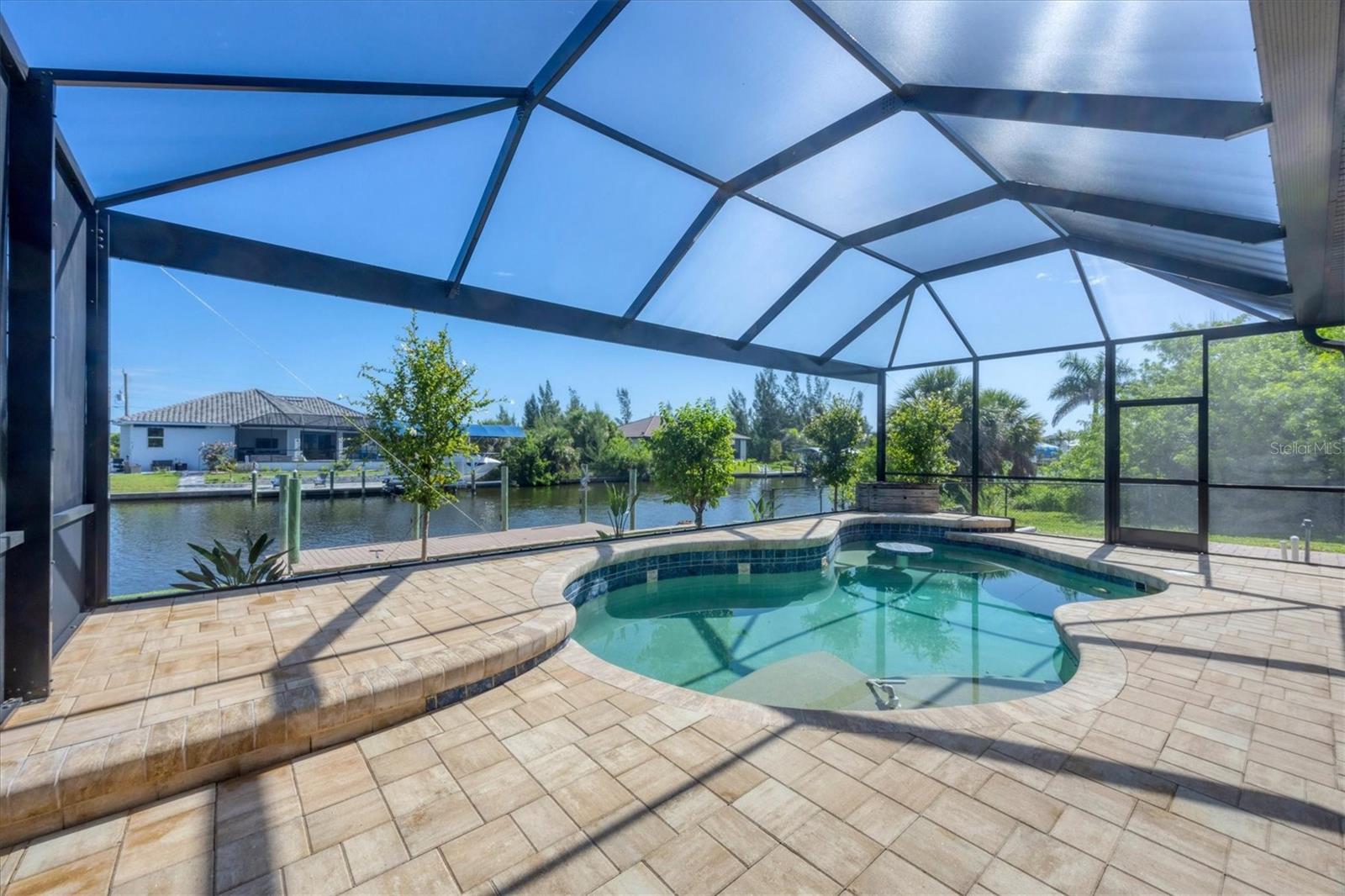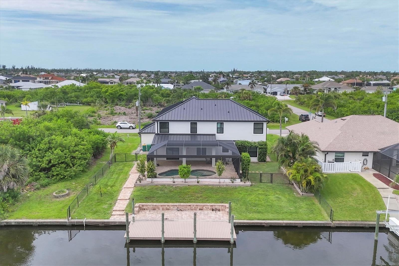Significant price adjustment makes you question why wait to build when you can move right into this like new home. All since 2023 - New 24 gauge metal roof, impact windows/doors, garage door, HVAC, pool cage, LVP flooring in all bedrooms, wood plank look tile other areas, spray foam insulation in attic (seller's says reduced elec. bill $100), It feels like home as soon as you step through the custom double door entry of the WATERFRONT, 4 bedroom, 3 CAR GARAGE home! Located in sought after Sec 93 of South Gulf Cove. Noticing first the custom designed Italian glass light in foyer, wood plank look tile on the diagonal throughout the downstairs, custom updated kitchen with wood cabinets, granite counters and spacious island with breakfast bar fully applianced including commercial fridge/freezer. Directly off of kitchen is dining room and at front of home formal living room. From kitchen you'll overlook your large family room with sliders to pool and lanai. Rounding out the practicality of the downstairs is the 1/2 bath at hallway from foyer to kitchen. Talk about great home for family or large gatherings, this one more than fits the bill. Up the beautiful redone staircase you'll find the primary suite with organizer walk in closet and en suite bath that is bright and beautiful walk in shower w/frameless glass door, dual sinks and private water closet and wood plank look tile on diagonal. The remaining 3 bedrooms are situated nicely around the staircase, two with built in closets and one with walk in closets. At the very front of the home upstairs is a large "bonus" room, perfect for media room, game room, second family room, endless choices. Also on second floor where it belongs for ease of use, is the laundry room that includes utility sink. Lanai has new screen cage with Picture window screen facing your waterfront canal and dock, that will take you out to the Lagoon if you just want a quick fishing trip or through the lock onto the Myakka River, then Charlotte Harbor or to the Intracoastal and Gulf of Mexico. Desirable South Gulf Cove waterfront community offers a park, boat launch (for a fee) walking paths and so much more, it is also appx. 15-20 minutes to Boca Grande beaches and Englewood (Manasota Key) beaches as well as 10-15 minutes to golf courses in the area. If you're looking for YOUR Florida paradise with lots of room for family and friends, do yourself a favor and call to see this one now!