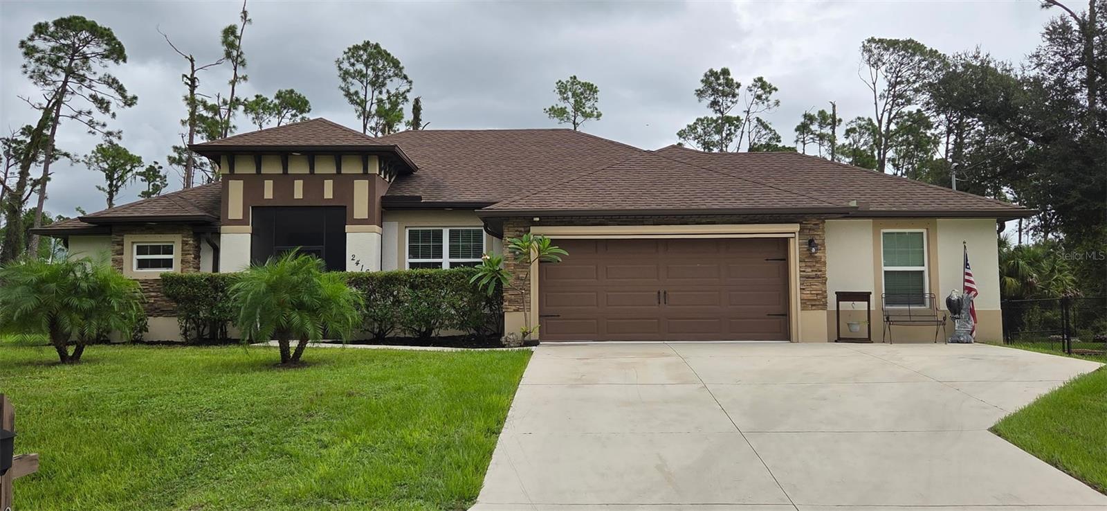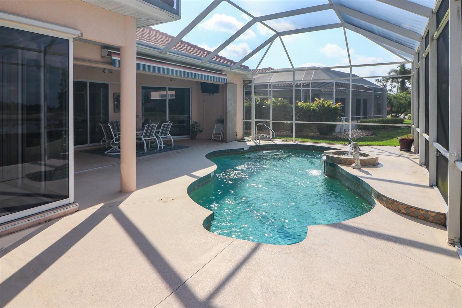 WONDERFUL LOCATION FOR THIS LARGE WATERFRONT HOME IN THE GATED COMMUNITY OF BOBCAT TRAIL! THIS HOME OFFERS SLIDERS IN THE LIVING ROOM, CORNER SLIDERS IN THE FAMILY ROOM AND A LARGE WINDOW IN THE DINETTE AREA FOR BEAUTIFUL PANORAMIC VIEWS OF THE FOUNTAIN POOL AND POND. And you can open them for a nice breeze during the cooler months. This home boasts 3 BR, 3 BA plus a den! Den can also be used as a BR. It is a spacious home with 2,442 sf of living space. The large two-car garage is neat with lots of shelves. There are large, light ceramic tile floors throughout, white cabinets, including a focal cabinet with colorful stain glass which gives a nice Floridan touch. Gorgeous high, coffered ceilings, double entrance doors and separate laundry room. Come see this luxurious home before it is gone. Bobcat trail offers a community center with activities, heated community pool, fitness room, tennis and more. It is close to US41 and a short drive to I75. There is plenty of shopping and restaurants to experience and it is a short drive to the SWFL beaches.