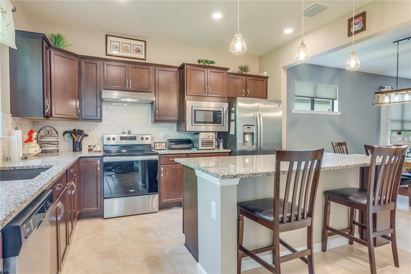 - Appliances: Dishwasher, Disposal, Dryer, Electric Water Heater, Exhaust Fan, Ice Maker, Microwave, Range, Range Hood, Refrigerator, Washer