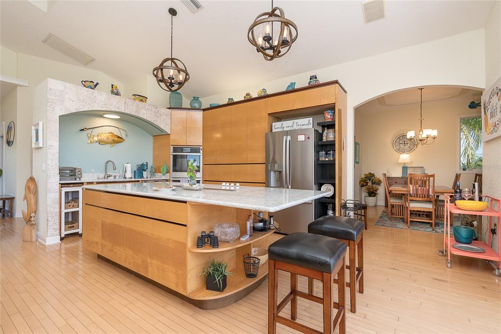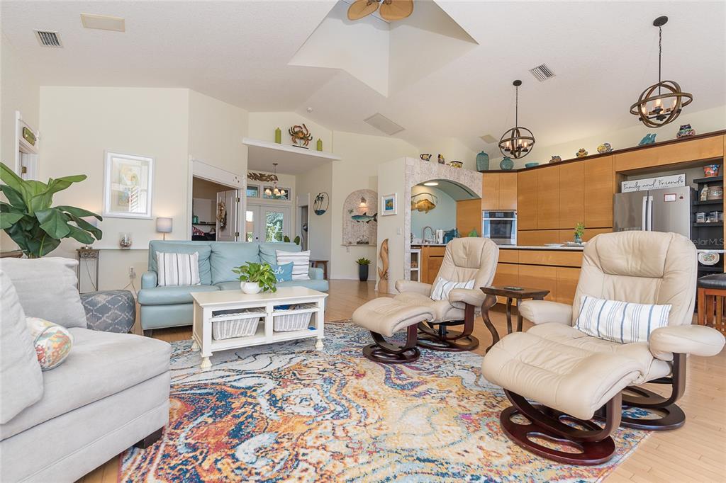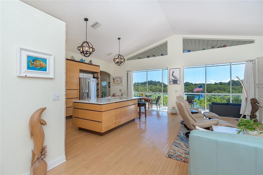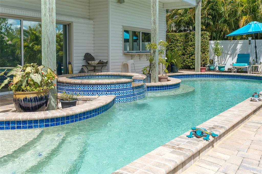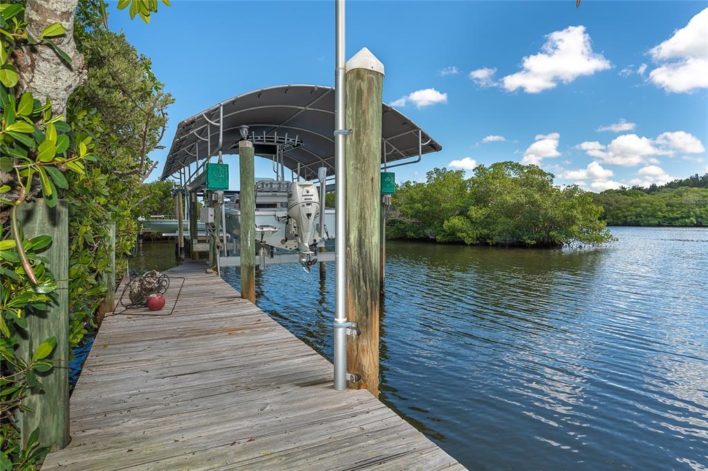 Captivating custom built 3 bedroom, 2 and 1/2 bath island home with direct access to the Intracoastal Waterway! This 80x135 lot with 80 feet of rip wrapped waterfront has a 30 foot dock with a 13,000 lb boat lift. Six foot privacy fencing surrounds the heated in ground pool and spa with a paver deck. Home has newly sanded and refinished wood floors, tile in the bathrooms and new tile on the back deck, which is the length of the house, quartz countertops, wood cabinets, newer appliances, new front stairs, wainscoting in the dining room, new light fixtures and ceiling fans throughout. The rear deck boasts a view of the ICW and forest like greenery. The lower level opens to the private pool and spa and is great for entertaining with space for a bar, tv area, kitchen, sleeping area and bonus room that was previously used as a wine room. The garage has room for one car and golf cart and has a newly refinished floor and paint. Under the front entry staircase, there is a 1,000 gallon koi/goldfish pond. Additional repairs since the hurricanes are as follows: siding, upper decks/screens, window and wainscoting in the cupola, luxury vinyl plank flooring on the lower level, new drywall/texture and paint, new dock wiring, control box, bunks and lift motors, pool equipment with heater/chiller, back and front porch decks reframed with new decking installed and new front stairs/crab trap and new hot water heater. Located on Don Pedro-Knight-Palm Island, this bridgeless barrier island is situated between Sarasota/Tampa to the north and Ft Myers/Naples to the south. Access via a car passenger ferry or private boat. If you buy your piece of island paradise today. you can luxuriate in this spacious and beautiful home, as well as enjoy the uncrowded beaches and glorious sunsets forever!!!