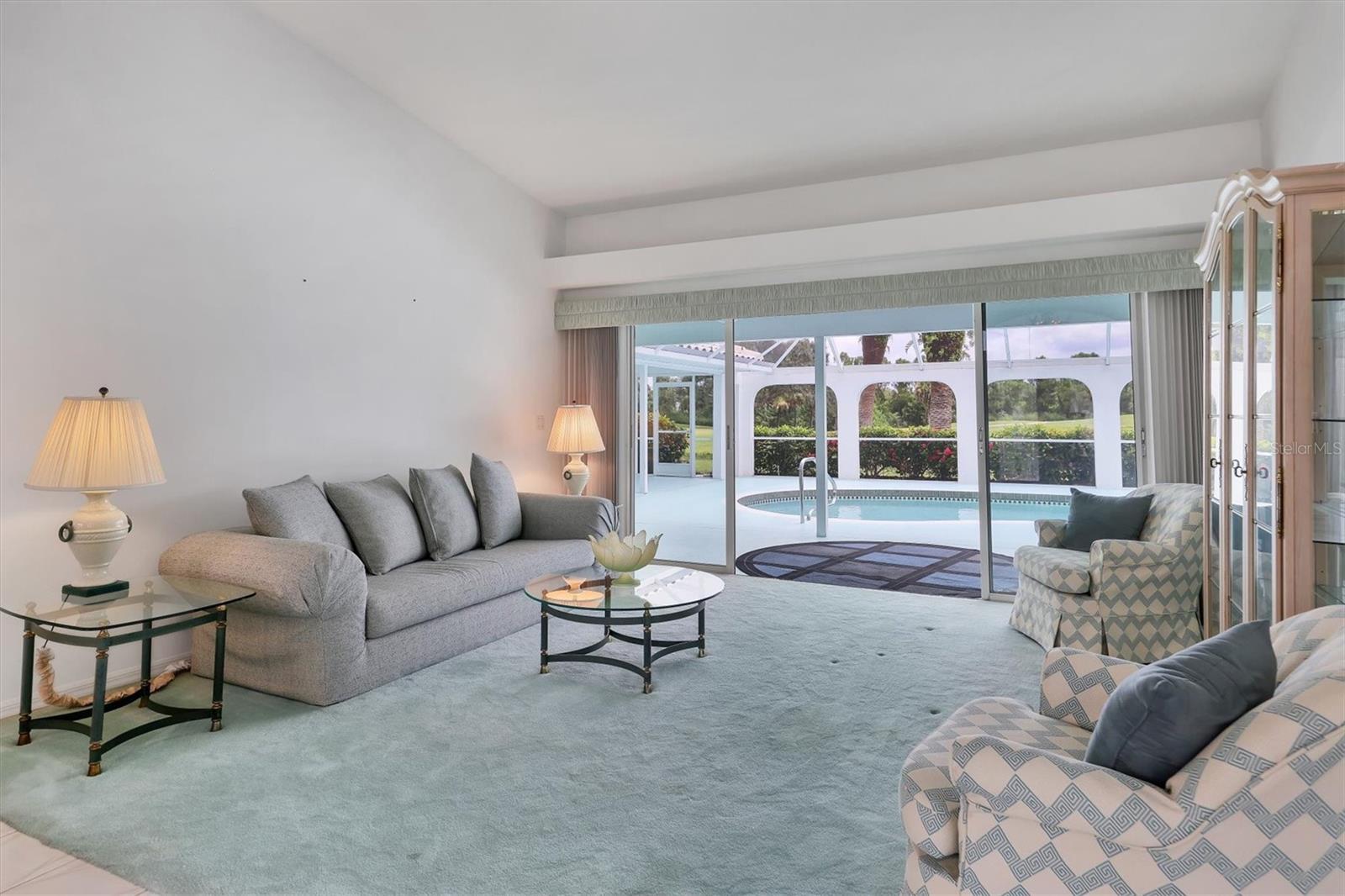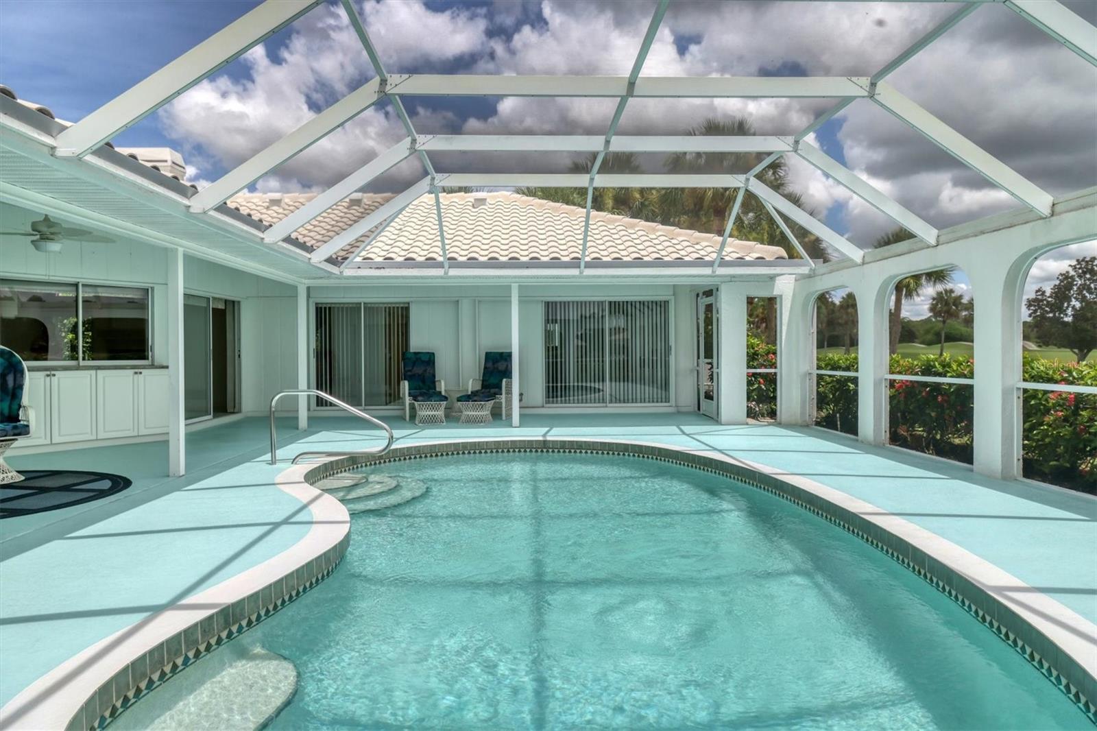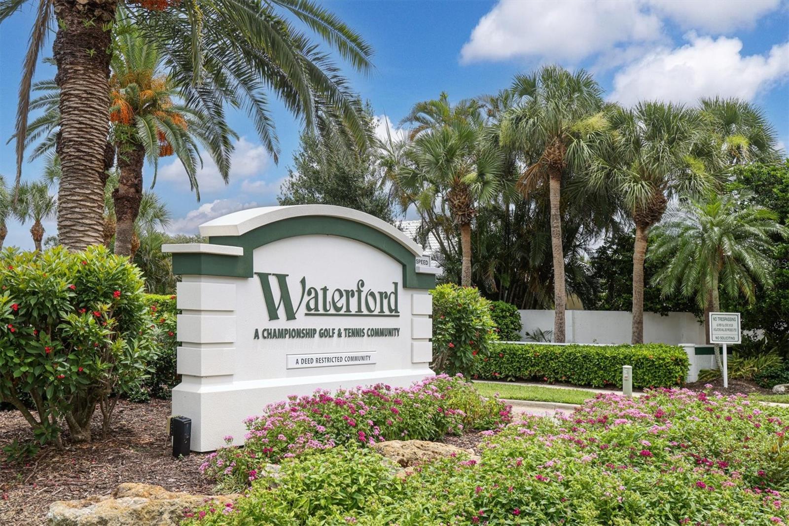WELCOME TO PARADISE! This lovely home is centrally located in Venice within the gates of WATERFORD, one of the area's most popular golf course communities; known for it's world class 27-hole golf course, fabulous restaurant, private library, park & playground, tennis courts, fitness facility including pool, spa, and work-out center. Waterford is a very active community with many events and awesome clubs to join. You future home is nestled perfectly on a cul-de-sac in the Devonshire neighborhood of the community. It is very evident this home has been well maintained and loved by the original owner. As you pass through the double door entry way you are greeted by warm sunlight, tall ceilings, expansive windows and sliding glass doors. This large home has dedicated spaces with plenty of room to entertain family and guest. The spacious split plan layout offers a lot privacy for everyone. The primary suite is very large with walk-in closets and a sitting room that leads out to the pool. The footprint of the kitchen and family room is an inviting space awaiting your personal touch and updates! The secondary bedrooms are tucked away in the back of the home, both are spacious and there are 2 sets of sliders leading out to the pool. Spend your evenings with a cocktail on your over-sized lanai with expansive views of the pool, lakes and golf course. This home is located about 5 miles from Venice Island and the beach! You are just minutes away from shopping, dining, local hospitals and I75. Venice is know to be one of the BEST coastal communities in the United States! You don't want this to be the one that got away! Call today for your private tour!
