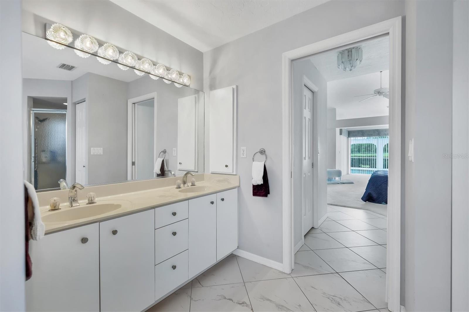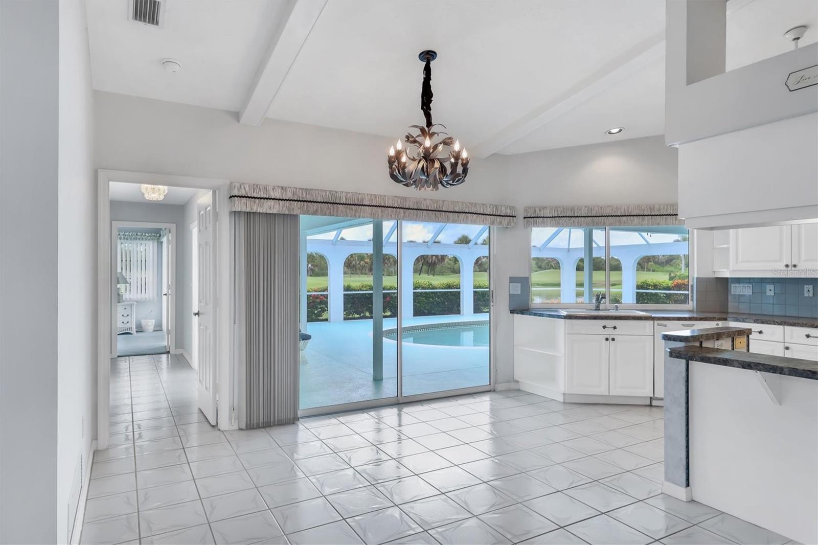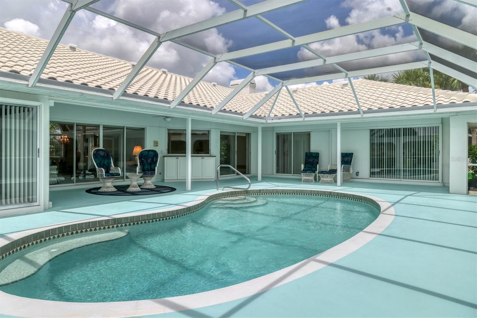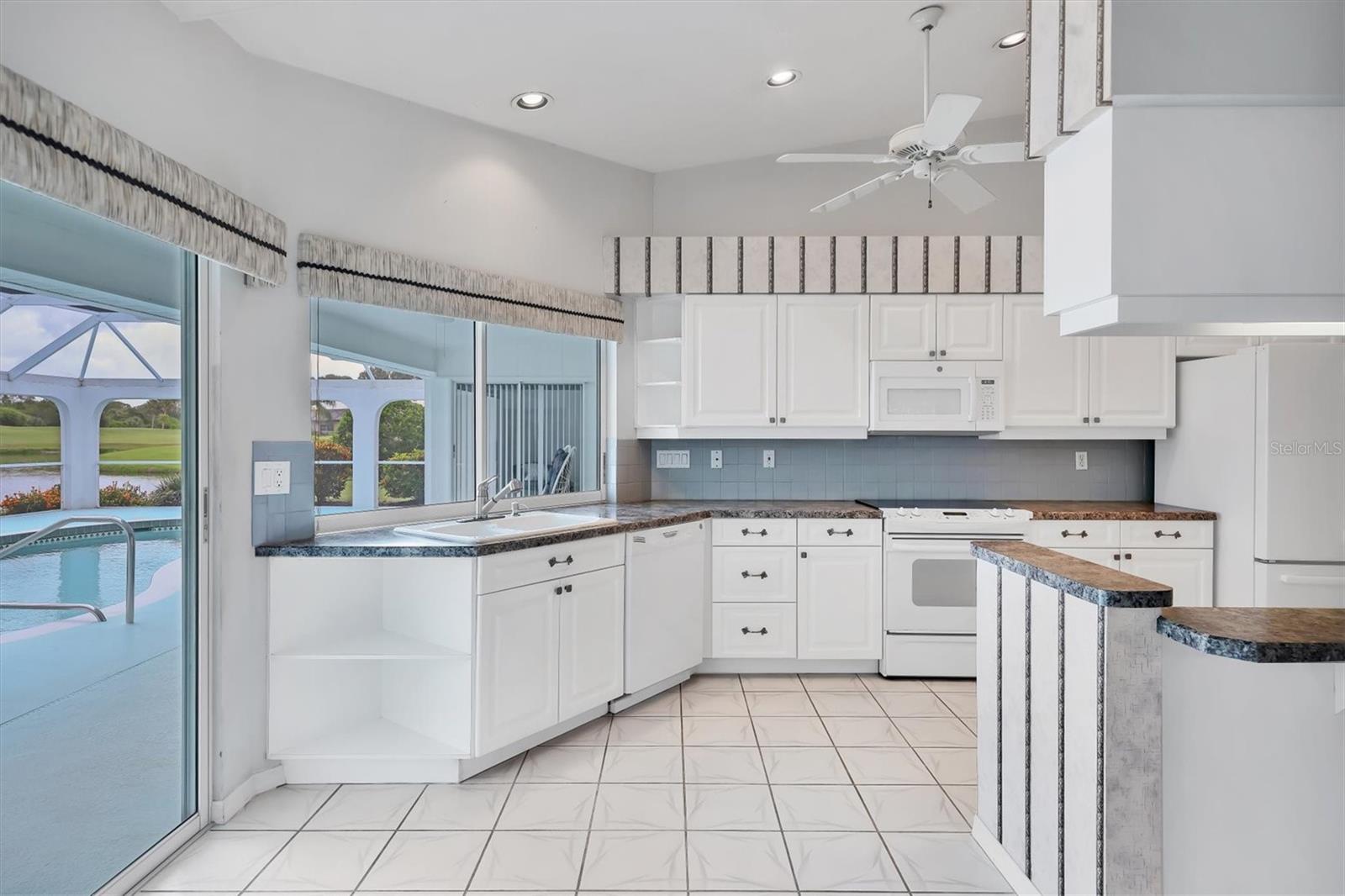 WELCOME TO PARADISE! This lovely home is centrally located in Venice within the gates of WATERFORD, one of the area's most popular golf course communities; known for it's world class 27-hole golf course, fabulous restaurant, private library, park & playground, tennis courts, fitness facility including pool, spa, and work-out center. Waterford is a very active community with many events and awesome clubs to join. You future home is nestled perfectly on a cul-de-sac in the Devonshire neighborhood of the community. It is very evident this home has been well maintained and loved by the original owner. As you pass through the double door entry way you are greeted by warm sunlight, tall ceilings, expansive windows and sliding glass doors. This large home has dedicated spaces with plenty of room to entertain family and guest. The spacious split plan layout offers a lot privacy for everyone. The primary suite is very large with walk-in closets and a sitting room that leads out to the pool. The footprint of the kitchen and family room is an inviting space awaiting your personal touch and updates! The secondary bedrooms are tucked away in the back of the home, both are spacious and there are 2 sets of sliders leading out to the pool. Spend your evenings with a cocktail on your over-sized lanai with expansive views of the pool, lakes and golf course. This home is located about 5 miles from Venice Island and the beach! You are just minutes away from shopping, dining, local hospitals and I75. Venice is know to be one of the BEST coastal communities in the United States! You don't want this to be the one that got away! Call today for your private tour!