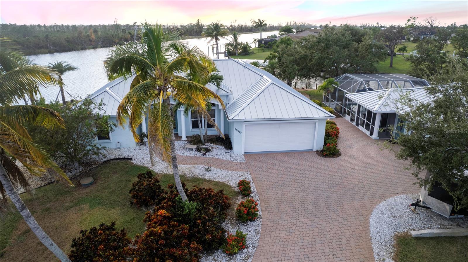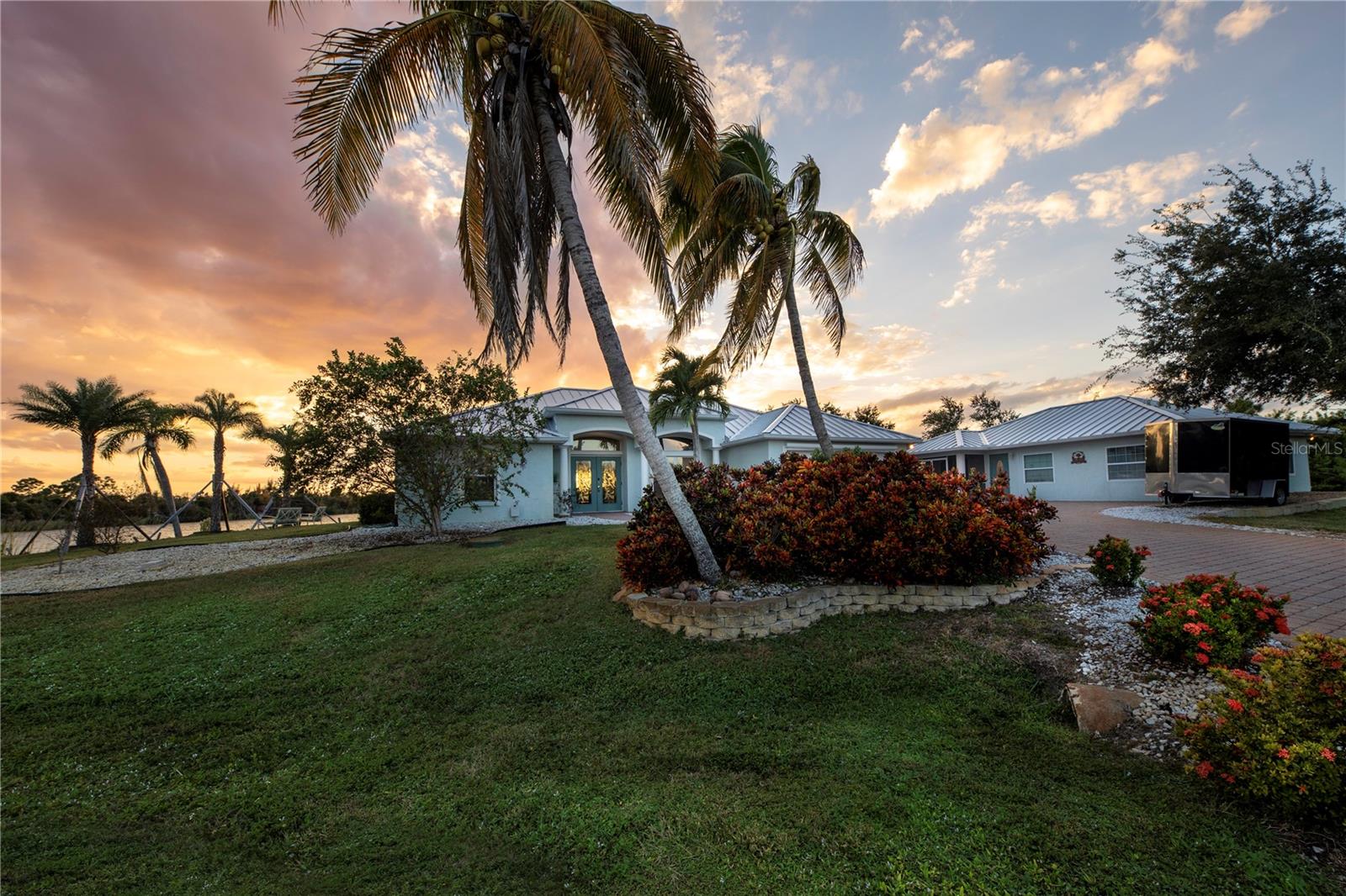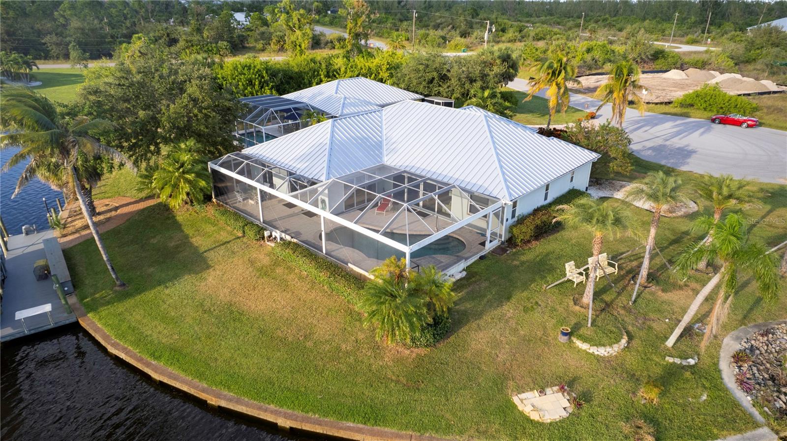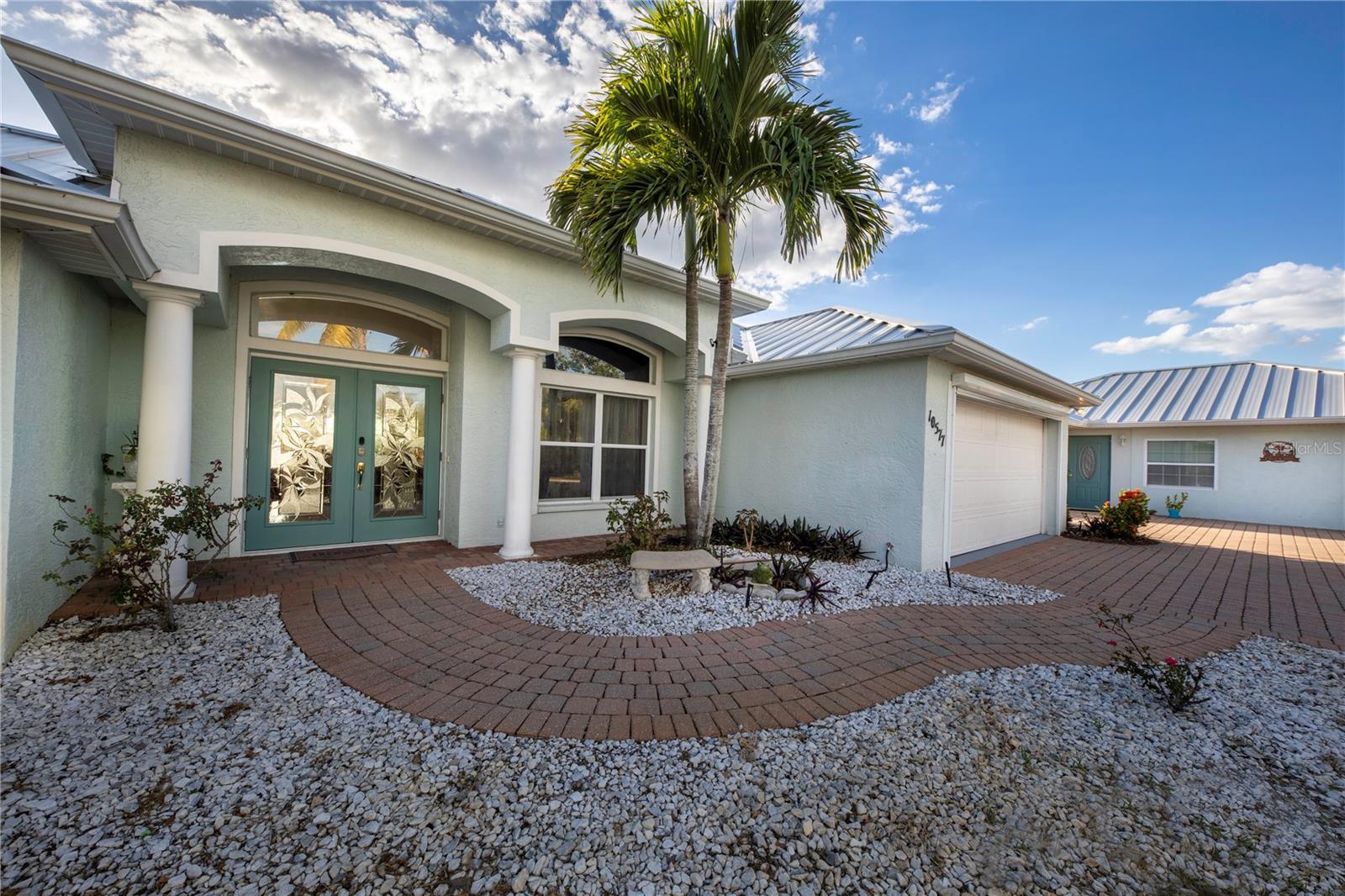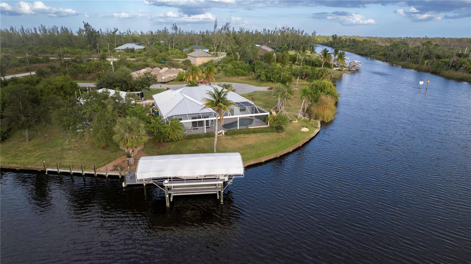 Wow!! This unique offering includes two fabulous separate homes each with a private pool! In addition the homes are located on a highly desirable deep water front, sailboat access, no bridges, oversized lot with incredible water and nature preserve views. Fabulous income producing property or create your own family compound. With your backyard facing west for beautiful sunsets, and a nature preserve across the waterway it is a quiet, serene location. For boating enthusiasts your boat is docked along your 280 feet of concrete seawall on a 12,000 pound lift with new cover (2023) and new decking in 2020, ensuring you can set out at any time. This property includes two furnished homes providing a total of 5 bedrooms and 3 baths, with each home featuring their own private, screened, in-ground gunite pool. Both homes have new metal roofs and are thoughtfully situated on the property providing privacy for each. The guest house spans 936 square feet with a living room, kitchen with eating area, two bedrooms and a lovely 2020 renovated bath. The guest house pool was added in 2022 and is 12x24. The main home with it's sunny open floor plan offers 1,935 square feet under air and includes an enticing free-form pool for your enjoyment. The home has been impeccably maintained and has resplendent marble floors throughout the main rooms of the home which also feature vaulted and trayed ceilings and decorative crown moldings. The kitchen has abundant storage, an attractive granite-topped island, breakfast bar, pantry closet, quality Samsung appliances and stunning views that extend through the home to the pool and the water. The split bedroom floor plan provides privacy for the master bedroom suite which includes two walk-in closets, spacious bath with stone counters and a walk-in shower. Two additional bedrooms share a bath with tub/shower combination. South Gulf Cove is a highly sought-after waterfront community which offers optional membership into the Association and provides numerous amenities. Conveniently situated near Boca Grande, known for its world-class tarpon fishing and beaches, and additional vibrant communities offering diverse shopping and dining options, this location and these two homes are not to be missed. Whether you choose to live in one home and keep one for guests, or rent one, or rent both, the options are all incredibly positive for this generous half-acre property situated at the end of St. Paul Drive on the Santa Cruz Waterway.