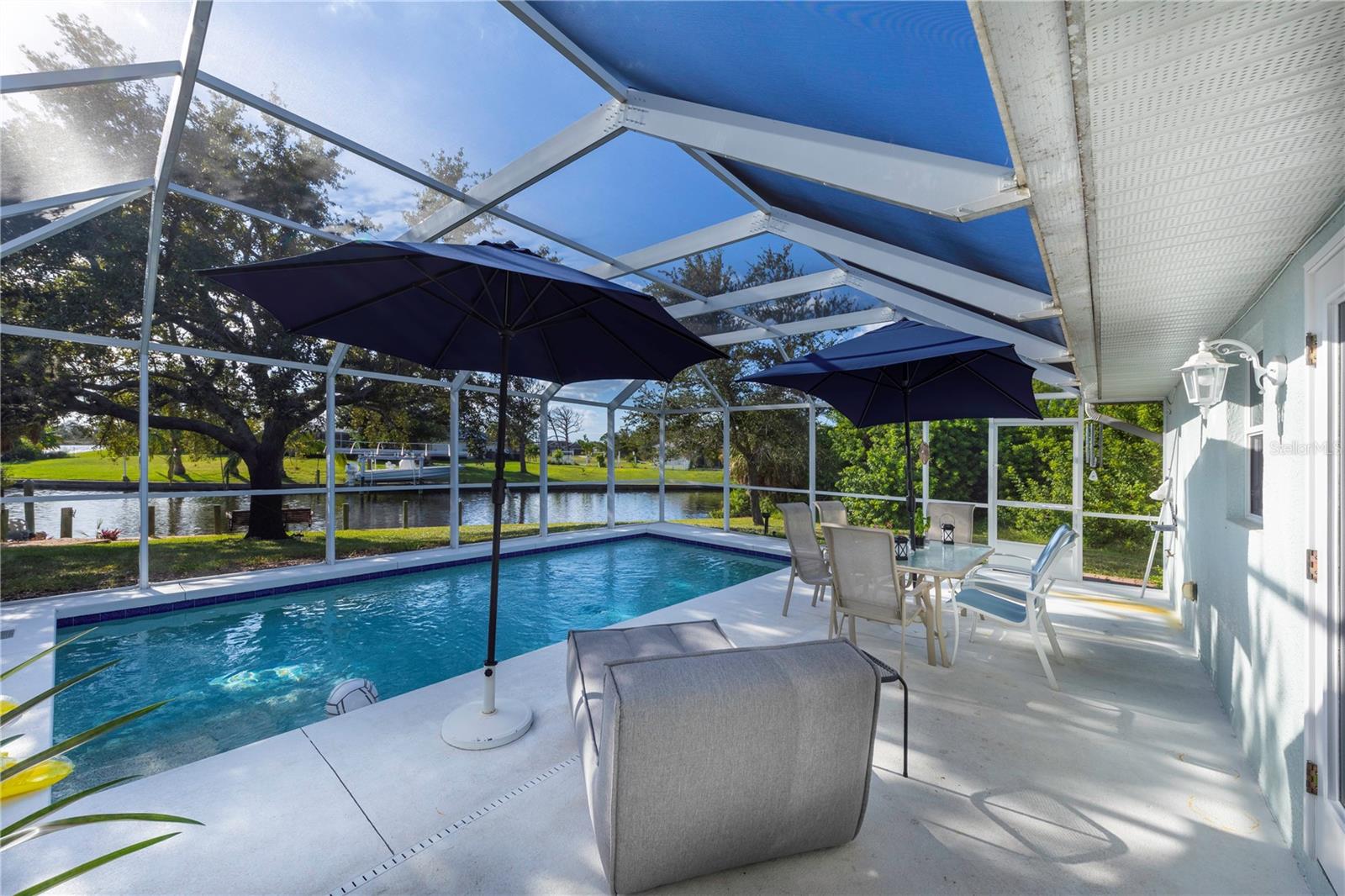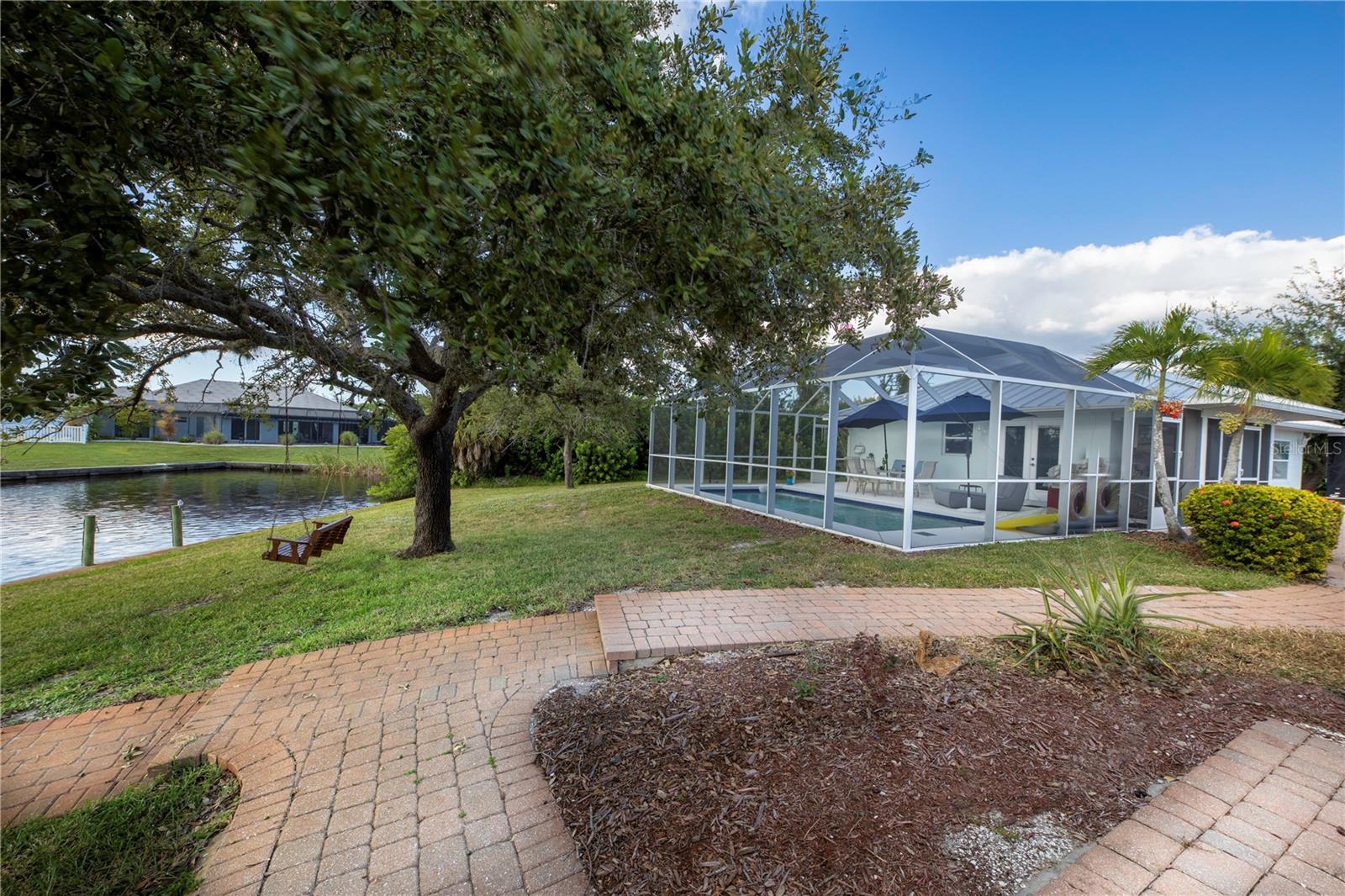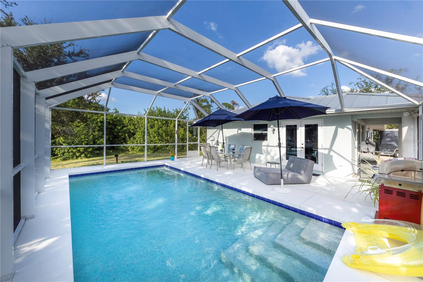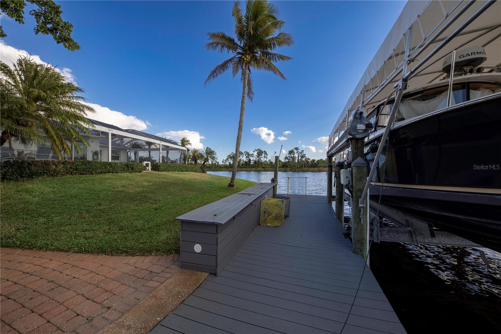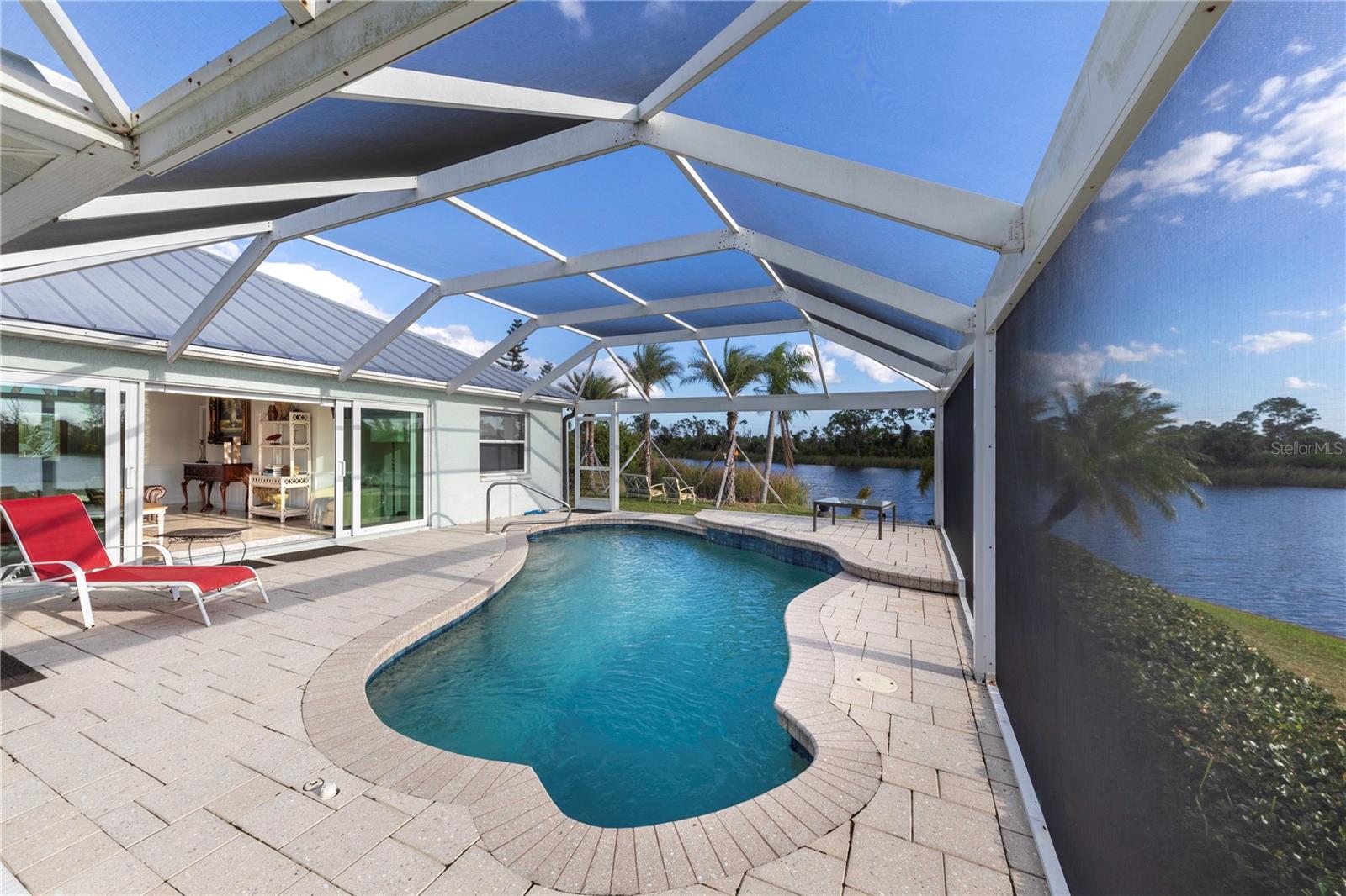 Wow!! This unique offering includes two fabulous separate homes each with a private pool! In addition the homes are located on a highly desirable deep water front, sailboat access, no bridges, oversized lot with incredible water and nature preserve views. Fabulous income producing property or create your own family compound. With your backyard facing west for beautiful sunsets, and a nature preserve across the waterway it is a quiet, serene location. For boating enthusiasts your boat is docked along your 280 feet of concrete seawall on a 12,000 pound lift with new cover (2023) and new decking in 2020, ensuring you can set out at any time. This property includes two furnished homes providing a total of 5 bedrooms and 3 baths, with each home featuring their own private, screened, in-ground gunite pool. Both homes have new metal roofs and are thoughtfully situated on the property providing privacy for each. The guest house spans 936 square feet with a living room, kitchen with eating area, two bedrooms and a lovely 2020 renovated bath. The guest house pool was added in 2022 and is 12x24. The main home with it's sunny open floor plan offers 1,935 square feet under air and includes an enticing free-form pool for your enjoyment. The home has been impeccably maintained and has resplendent marble floors throughout the main rooms of the home which also feature vaulted and trayed ceilings and decorative crown moldings. The kitchen has abundant storage, an attractive granite-topped island, breakfast bar, pantry closet, quality Samsung appliances and stunning views that extend through the home to the pool and the water. The split bedroom floor plan provides privacy for the master bedroom suite which includes two walk-in closets, spacious bath with stone counters and a walk-in shower. Two additional bedrooms share a bath with tub/shower combination. South Gulf Cove is a highly sought-after waterfront community which offers optional membership into the Association and provides numerous amenities. Conveniently situated near Boca Grande, known for its world-class tarpon fishing and beaches, and additional vibrant communities offering diverse shopping and dining options, this location and these two homes are not to be missed. Whether you choose to live in one home and keep one for guests, or rent one, or rent both, the options are all incredibly positive for this generous half-acre property situated at the end of St. Paul Drive on the Santa Cruz Waterway.