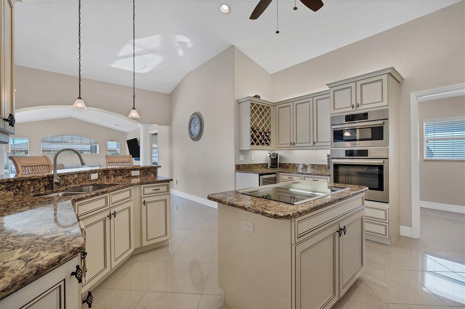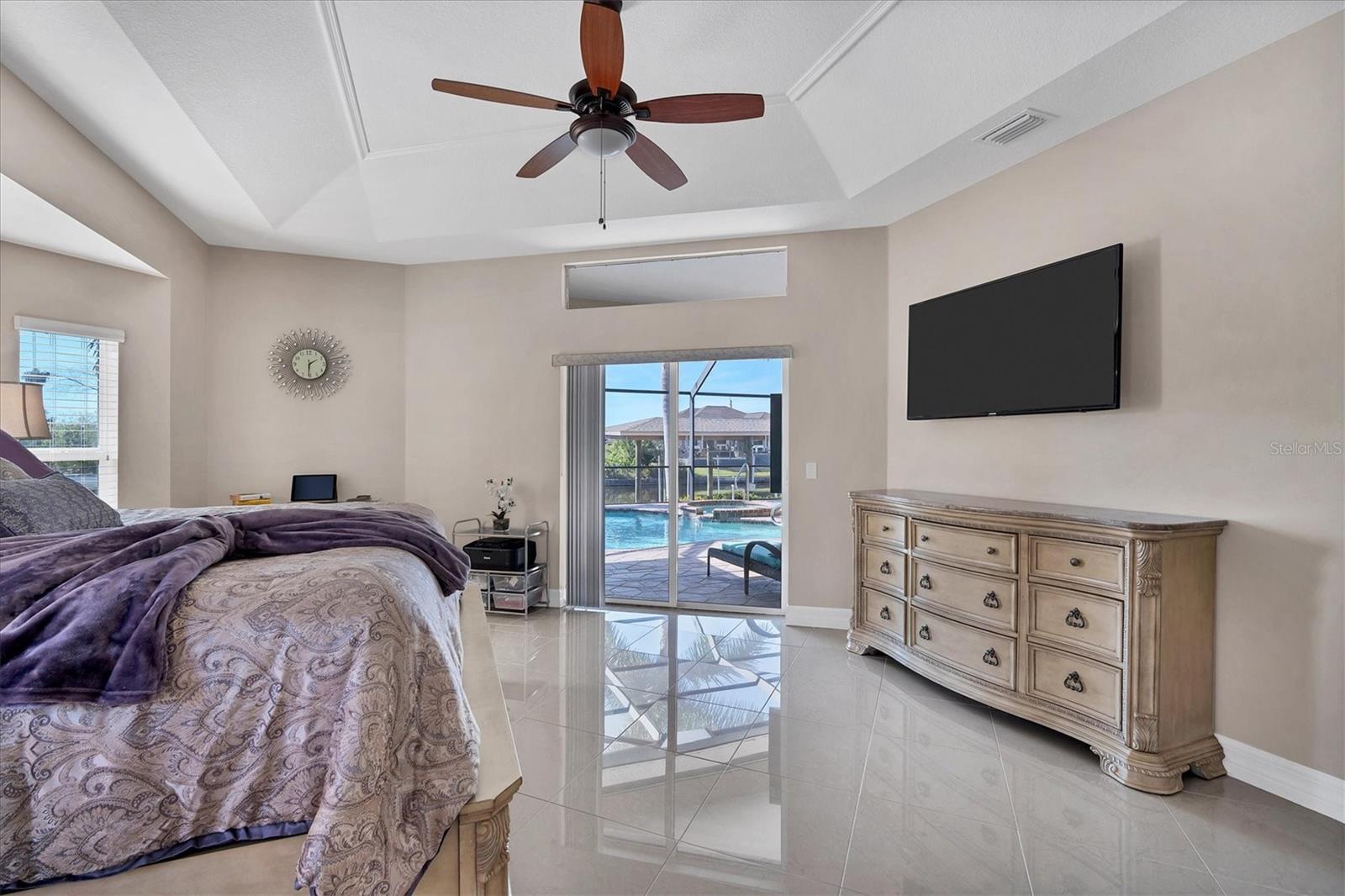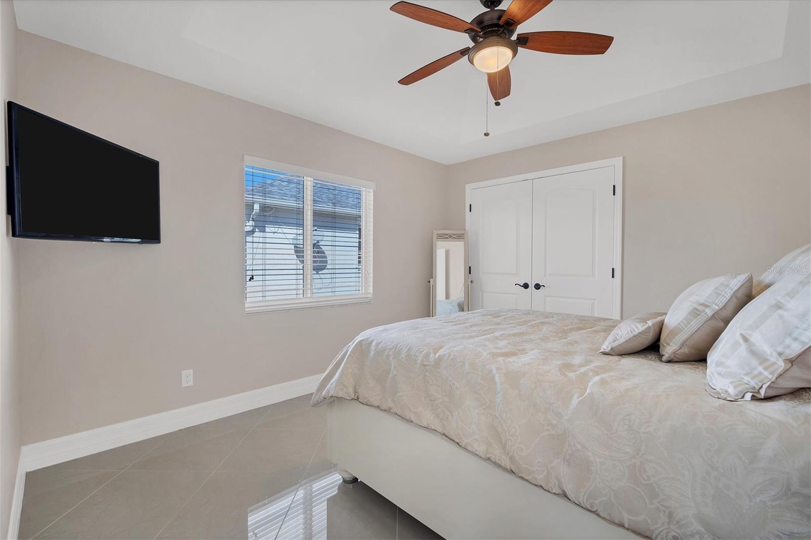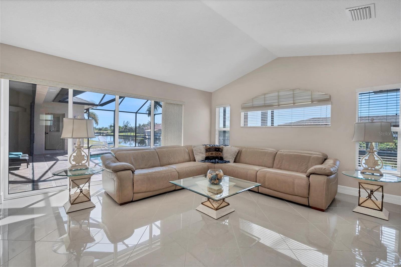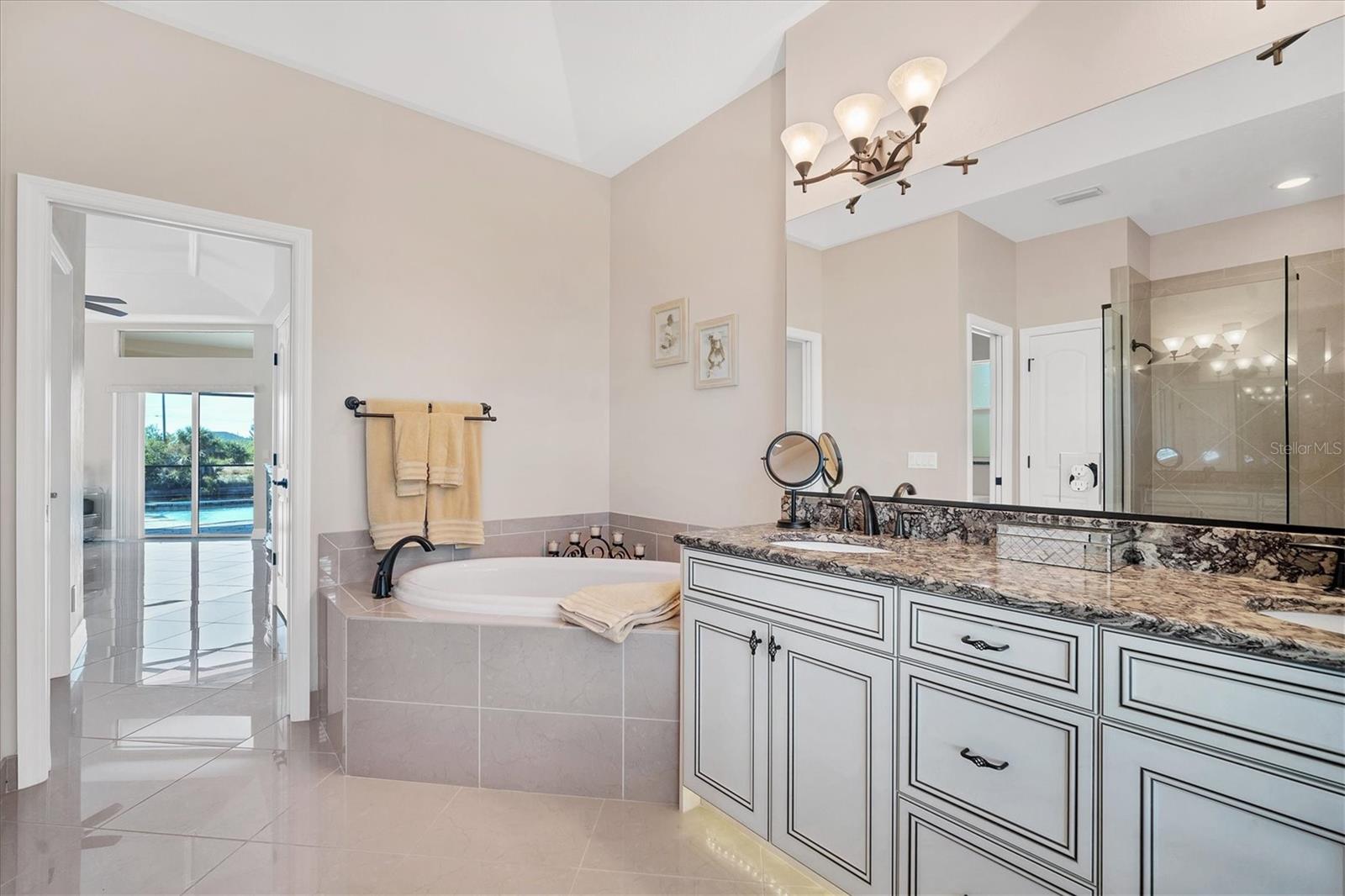 Elegantly Designed and Decorated Home With Iconic Water Views in South Gulf Cove. A 2022 roof, oversized garage with room for all your toys, a beautiful saltwater heated pool, and 15,000lb boat lift with custom built cover are just a few of the features that make this a truly remarkable home. This home displays beautiful curb appeal with the paver driveway and walkways, leaded glass double entry doors with transom window, and mature landscaping. The first thing you will notice as you enter this immaculately kept home are the gorgeous views to the rear of the waterway, gleaming marble tile flooring, vaulted ceilings, decorative niches and chair rail. There is plenty of space for everyone with a formal living room, formal dining room, breakfast nook, central kitchen and family room. Multiple sliding glass doors provide access to the pool and lanai for several locations in the home. Chef's will love the open kitchen with wood cabinets, double ovens, granite countertops, wine refrigerator, above cabinet lighting and a Bosch cooktop on the island. The master bedroom highlights include a tray ceiling with crown molding, Bay window, and both a walk-in and reach-in closet. The ensuite master bathroom has a nice glass enclosed walk-in shower, double vanity with granite countertop, oversized soaking tub, linen closet, private water closet and large window for an abundance of natural light. The split bedroom design separates the guest bedrooms from the primary bedroom to provide you with plenty of privacy. The two guest bedrooms both have reach-in closets and the shared guest bath has a granite topped vanity, and large, tiled walk-in shower. A separate laundry room has built-in cabinet, granite topped laundry sink, and shelving. The garage space is a hobby enthusiasts dream with the epoxy floor coating and built in workshop space with cabinets. Additional upgrades in this home include a central vac, 6" baseboards throughout, pool bath, outdoor shower, When you are ready to sit back and enjoy Florida living, the custom paver lanai and pool will be a welcome retreat. If you prefer to spend time on the water, the dock and boat lift will make it easy to load up the coolers and family and head out for a great day of fishing or shelling on one of many local beaches, try for a Tarpon in Boca Grande Pass, sightsee on the Myakka River, or cruise the local waterways. South Gulf Cove is centrally located near all area shopping, dining, two major league baseball spring training facilities, medical facilities and much more. Schedule an appointment today to see this magnificent home. Bedroom Closet Type: Walk-in Closet (Primary Bedroom).