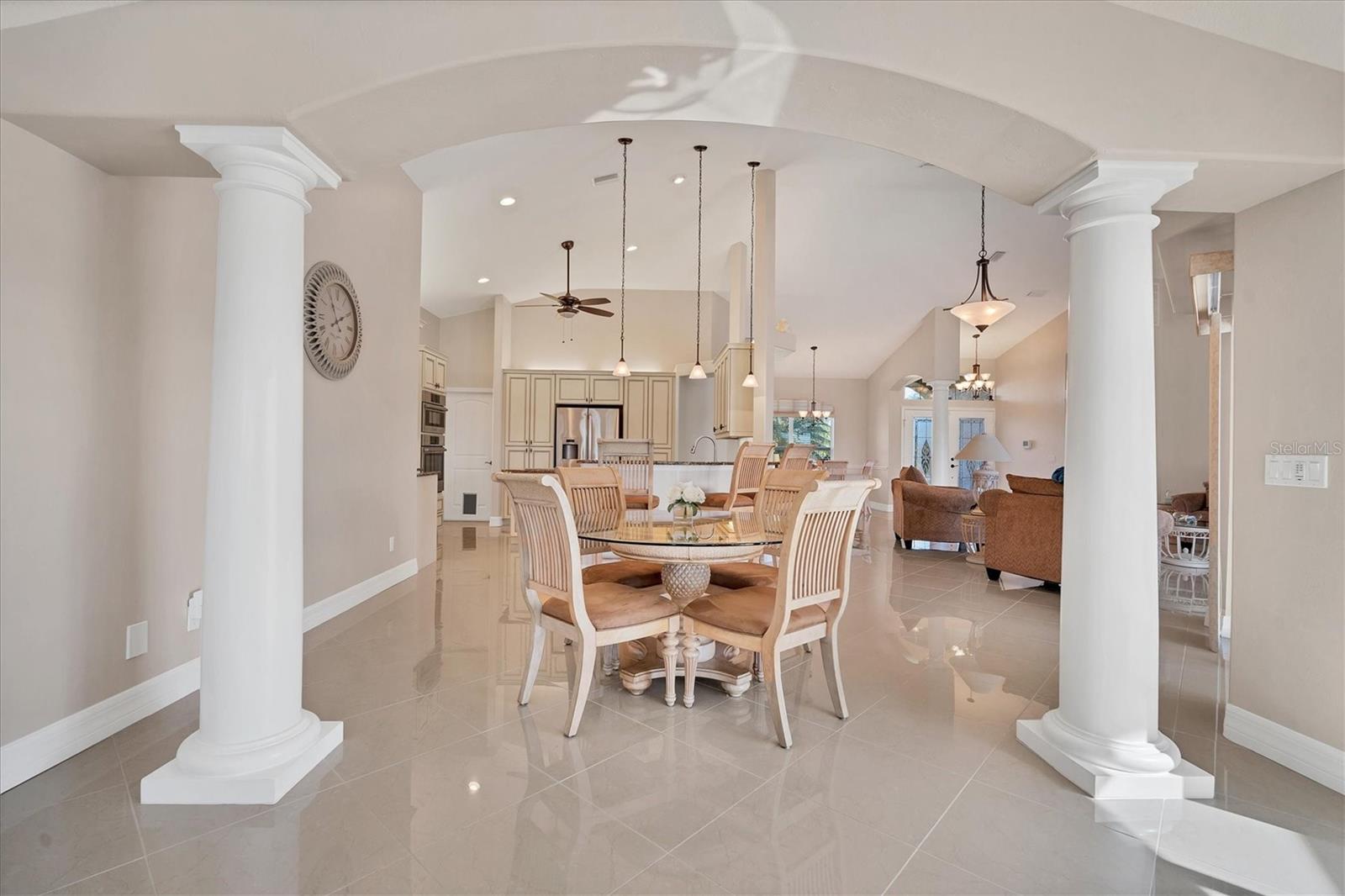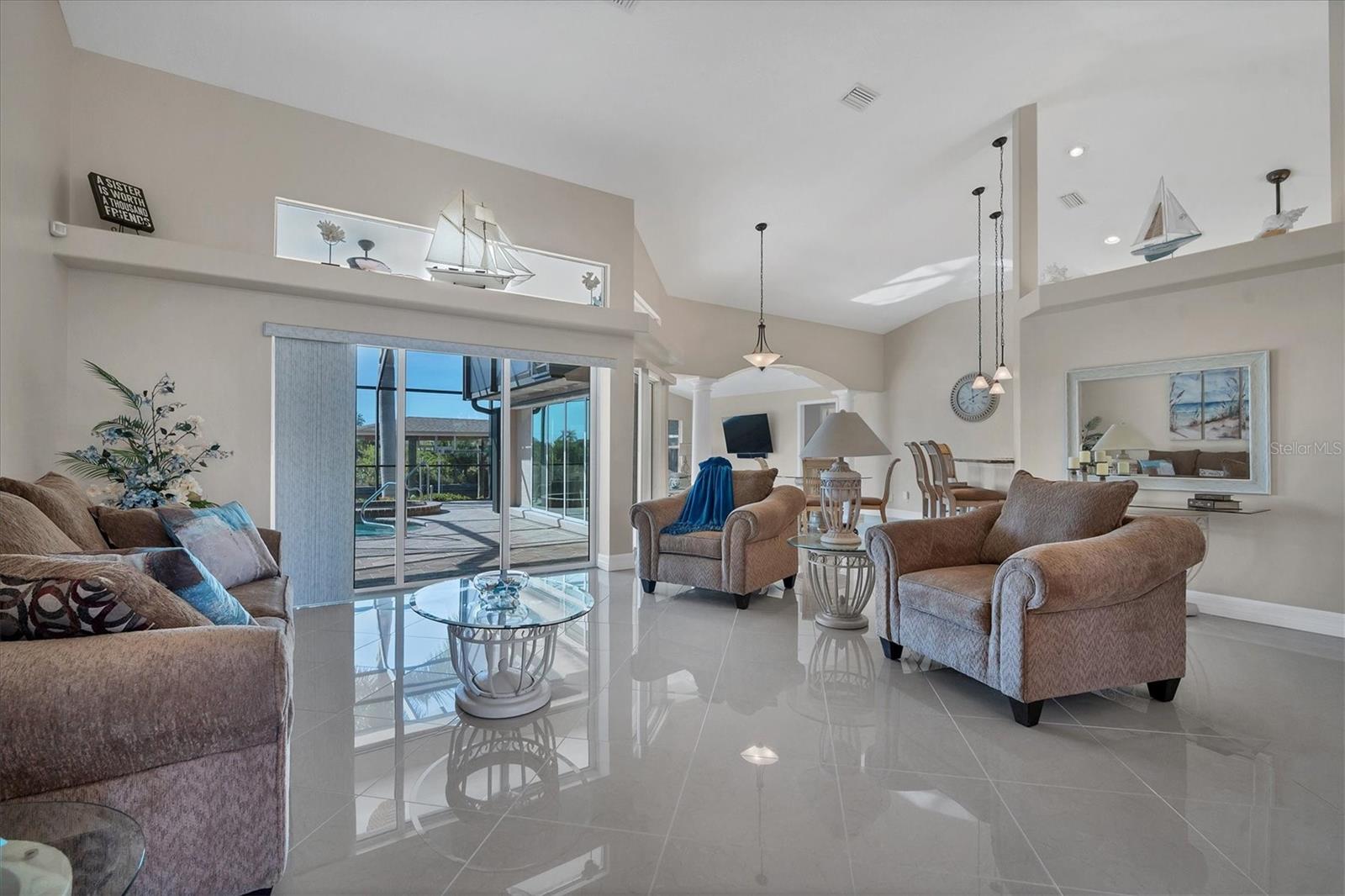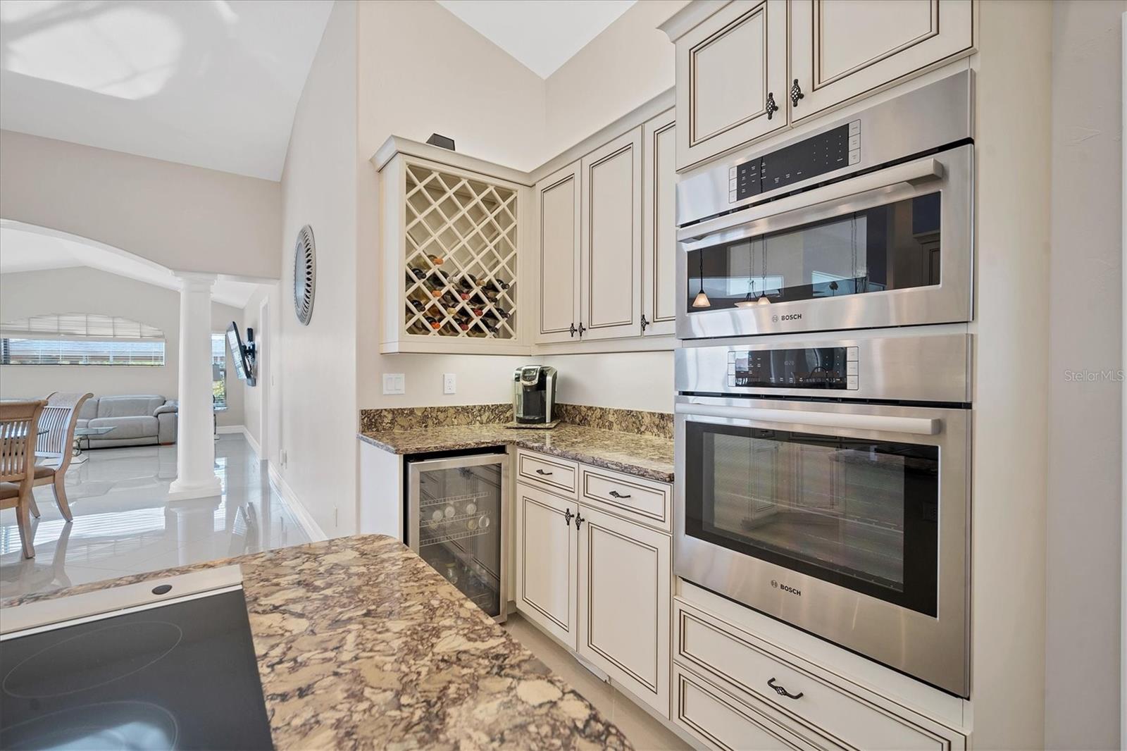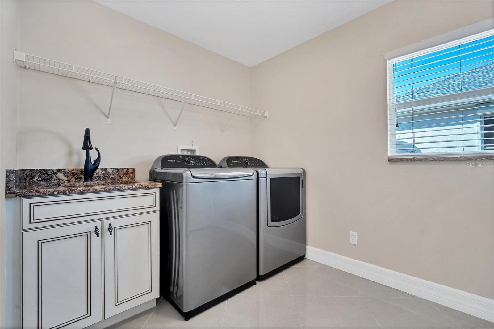 Elegantly Designed and Decorated Home With Iconic Water Views in South Gulf Cove. A 2022 roof, oversized garage with room for all your toys, a beautiful saltwater heated pool, and 15,000lb boat lift with custom built cover are just a few of the features that make this a truly remarkable home. This home displays beautiful curb appeal with the paver driveway and walkways, leaded glass double entry doors with transom window, and mature landscaping. The first thing you will notice as you enter this immaculately kept home are the gorgeous views to the rear of the waterway, gleaming marble tile flooring, vaulted ceilings, decorative niches and chair rail. There is plenty of space for everyone with a formal living room, formal dining room, breakfast nook, central kitchen and family room. Multiple sliding glass doors provide access to the pool and lanai for several locations in the home. Chef's will love the open kitchen with wood cabinets, double ovens, granite countertops, wine refrigerator, above cabinet lighting and a Bosch cooktop on the island. The master bedroom highlights include a tray ceiling with crown molding, Bay window, and both a walk-in and reach-in closet. The ensuite master bathroom has a nice glass enclosed walk-in shower, double vanity with granite countertop, oversized soaking tub, linen closet, private water closet and large window for an abundance of natural light. The split bedroom design separates the guest bedrooms from the primary bedroom to provide you with plenty of privacy. The two guest bedrooms both have reach-in closets and the shared guest bath has a granite topped vanity, and large, tiled walk-in shower. A separate laundry room has built-in cabinet, granite topped laundry sink, and shelving. The garage space is a hobby enthusiasts dream with the epoxy floor coating and built in workshop space with cabinets. Additional upgrades in this home include a central vac, 6" baseboards throughout, pool bath, outdoor shower, When you are ready to sit back and enjoy Florida living, the custom paver lanai and pool will be a welcome retreat. If you prefer to spend time on the water, the dock and boat lift will make it easy to load up the coolers and family and head out for a great day of fishing or shelling on one of many local beaches, try for a Tarpon in Boca Grande Pass, sightsee on the Myakka River, or cruise the local waterways. South Gulf Cove is centrally located near all area shopping, dining, two major league baseball spring training facilities, medical facilities and much more. Schedule an appointment today to see this magnificent home. Bedroom Closet Type: Walk-in Closet (Primary Bedroom).
