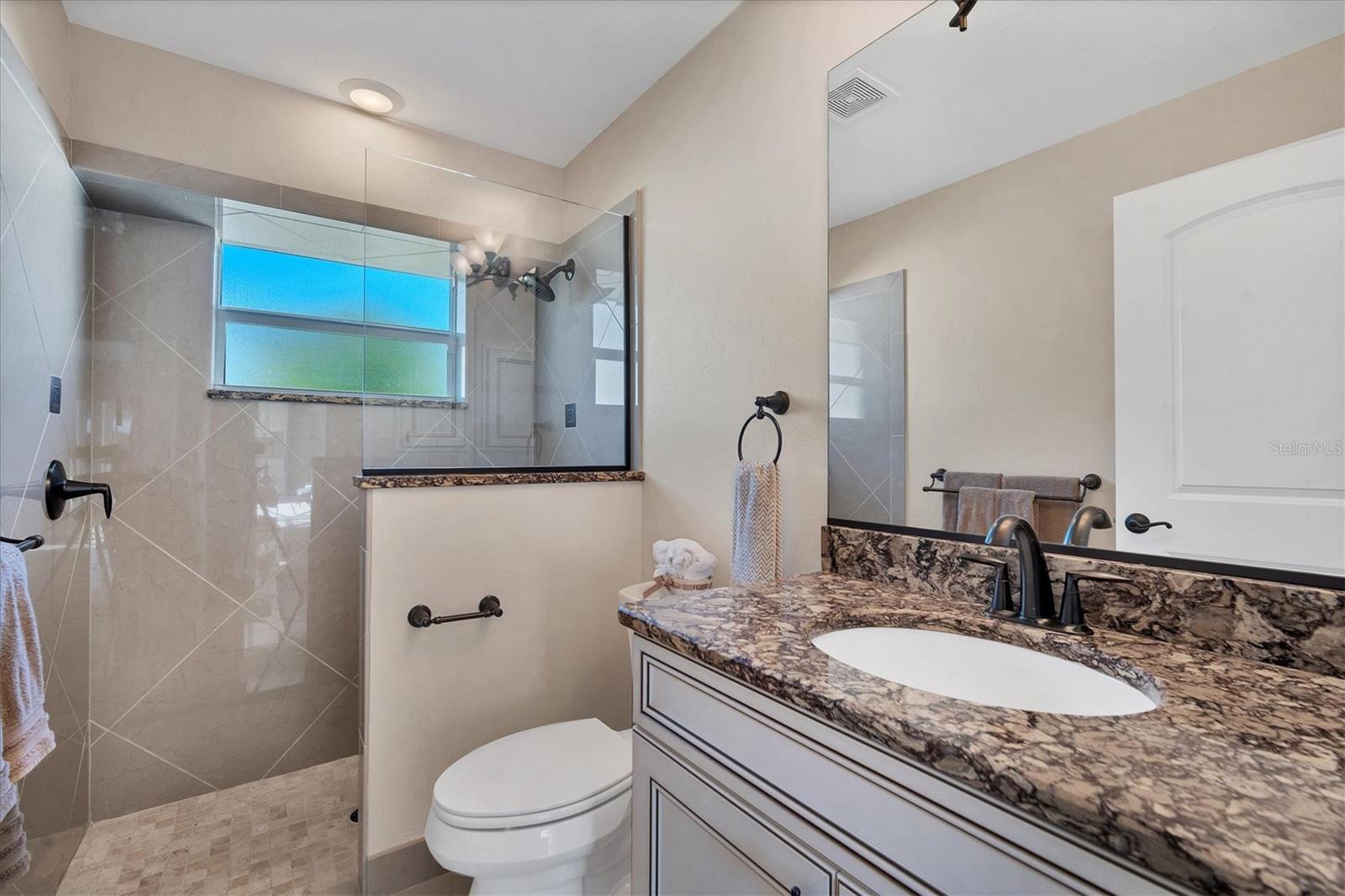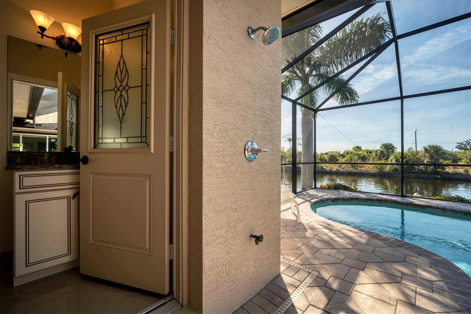 - Exterior: Hurricane Shutters, Irrigation System, Lighting, Outdoor Shower, Rain Gutters, Sliding Doors, Storage
