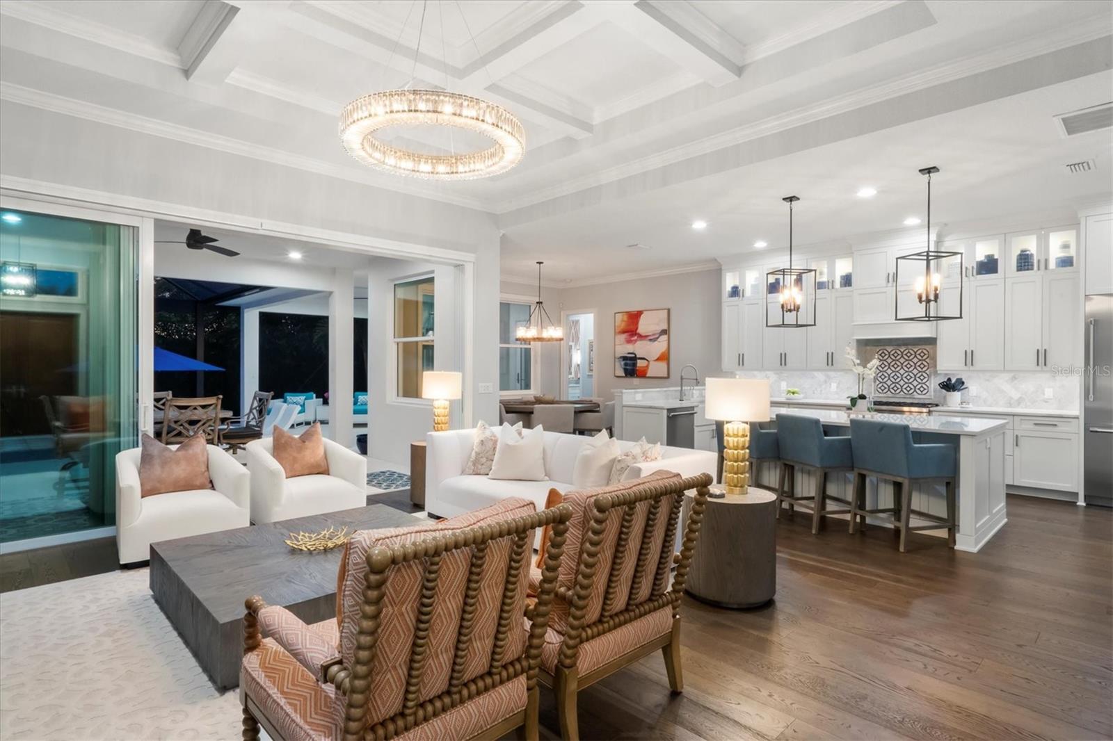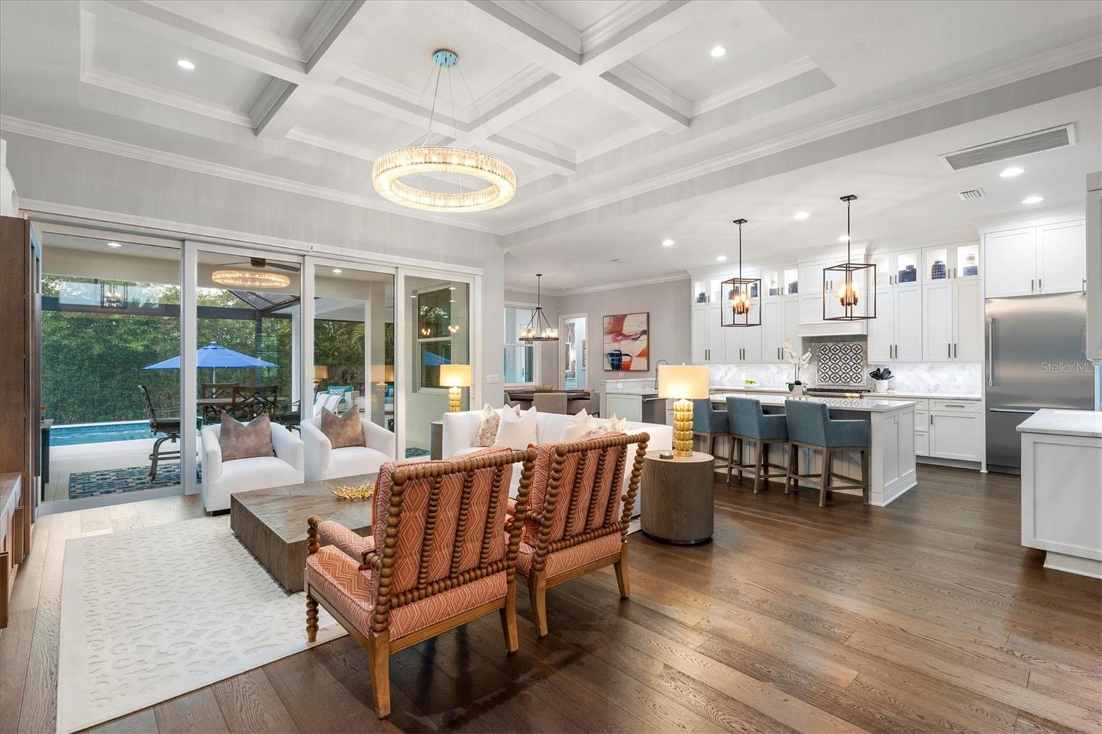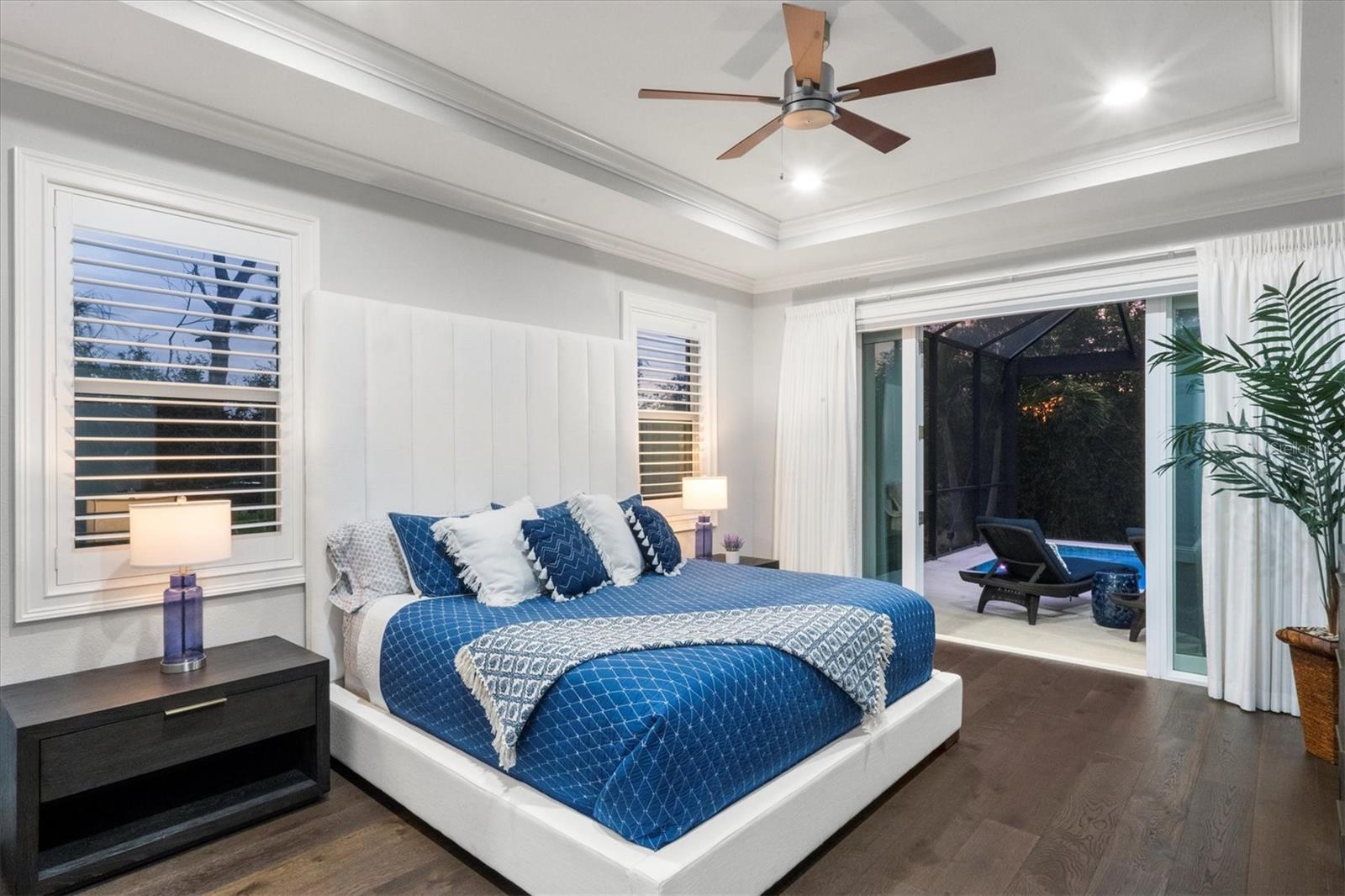Move right into this impeccably appointed residence in one of Placida's premier communities Cape Haze Windward. West Indies inspired, this home blends transitional features both inside and out. 4 bedrooms plus a large den with a closet, and 3 full baths. All impact rated windows and doors. Large gourmet kitchen including top of the line professional Thermador appliances, 6 burner gas range, finely crafted wood cabinetry, quartz counter tops, large walk-in pantry with superb shelving, and tile backsplash. Wide-plank wood flooring throughout the home, Italian porcelain tile in all 3 baths and spacious laundry room, premium closet organizers, tailored plantation shutters and draperies, fashioned lighting fixtures including crystal chandeliers and oversized pendants in the kitchen. The impressive foyer and great room has 12+ foot coffered ceilings and generous 9 foot tall sliding glass doors that leads out to the spectacular outdoor covered living area with natural stone pavers, inviting heated salt water pool with sun shelf, open view screen cage, outdoor kitchen with stainless steel grill, hood and beverage cooler. The large buried propane tank feeds both the kitchen oven/range and outdoor grill. Carpentry trim package includes fully cased windows, crown molding, and 7" base board. The lush landscaping was designed and installed by renowned local architect and offers grand palms, extensive privacy hedges, towering bamboo trees and dramatic landscape lighting. Oversized, side entry 3 car garage with epoxy painted floor. The home is being sold mostly furnished including the high-end RH brand furnishings. Located in Placida you're just minutes to historic Boca Grande, 3 marinas, miles of tranquil sandy beaches, numerous golf courses, and world-class fishing and boating. Walk, bicycle or golf cart to essential shopping.