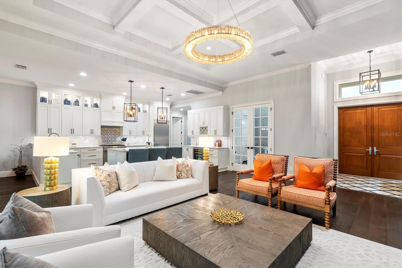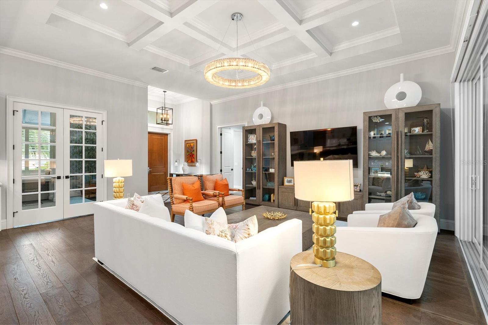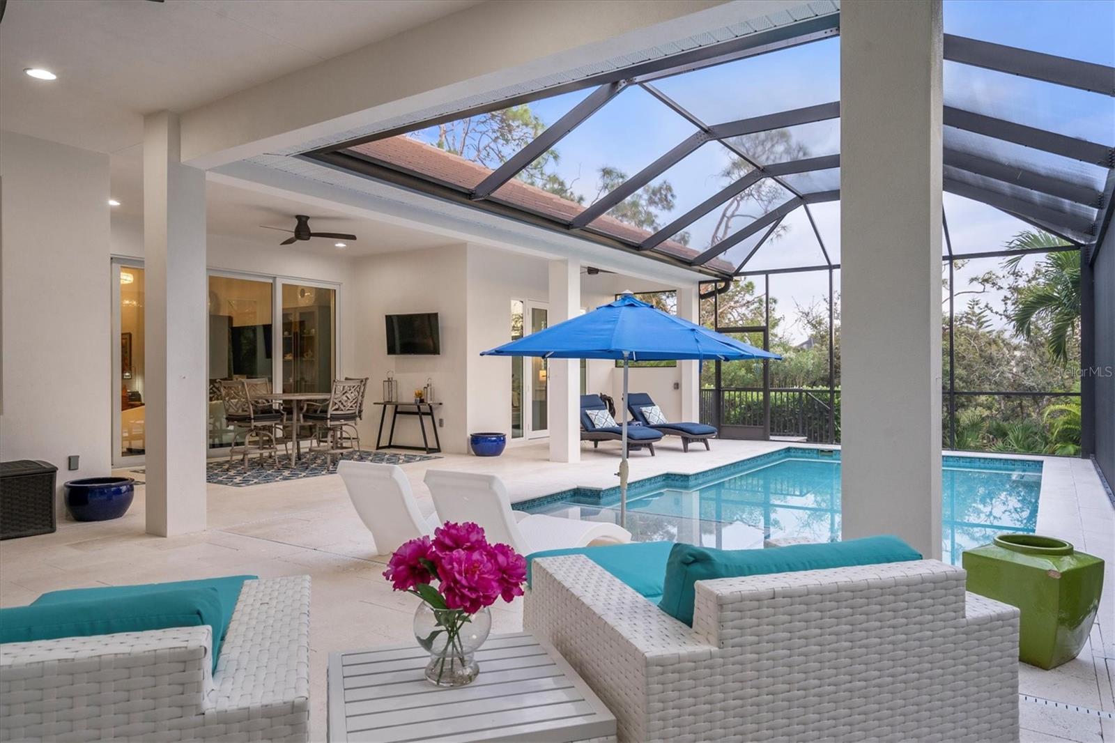 Move right into this impeccably appointed residence in one of Placida's premier communities Cape Haze Windward. West Indies inspired, this home blends transitional features both inside and out. 4 bedrooms plus a large den with a closet, and 3 full baths. All impact rated windows and doors. Large gourmet kitchen including top of the line professional Thermador appliances, 6 burner gas range, finely crafted wood cabinetry, quartz counter tops, large walk-in pantry with superb shelving, and tile backsplash. Wide-plank wood flooring throughout the home, Italian porcelain tile in all 3 baths and spacious laundry room, premium closet organizers, tailored plantation shutters and draperies, fashioned lighting fixtures including crystal chandeliers and oversized pendants in the kitchen. The impressive foyer and great room has 12+ foot coffered ceilings and generous 9 foot tall sliding glass doors that leads out to the spectacular outdoor covered living area with natural stone pavers, inviting heated salt water pool with sun shelf, open view screen cage, outdoor kitchen with stainless steel grill, hood and beverage cooler. The large buried propane tank feeds both the kitchen oven/range and outdoor grill. Carpentry trim package includes fully cased windows, crown molding, and 7" base board. The lush landscaping was designed and installed by renowned local architect and offers grand palms, extensive privacy hedges, towering bamboo trees and dramatic landscape lighting. Oversized, side entry 3 car garage with epoxy painted floor. The home is being sold mostly furnished including the high-end RH brand furnishings. Located in Placida you're just minutes to historic Boca Grande, 3 marinas, miles of tranquil sandy beaches, numerous golf courses, and world-class fishing and boating. Walk, bicycle or golf cart to essential shopping.