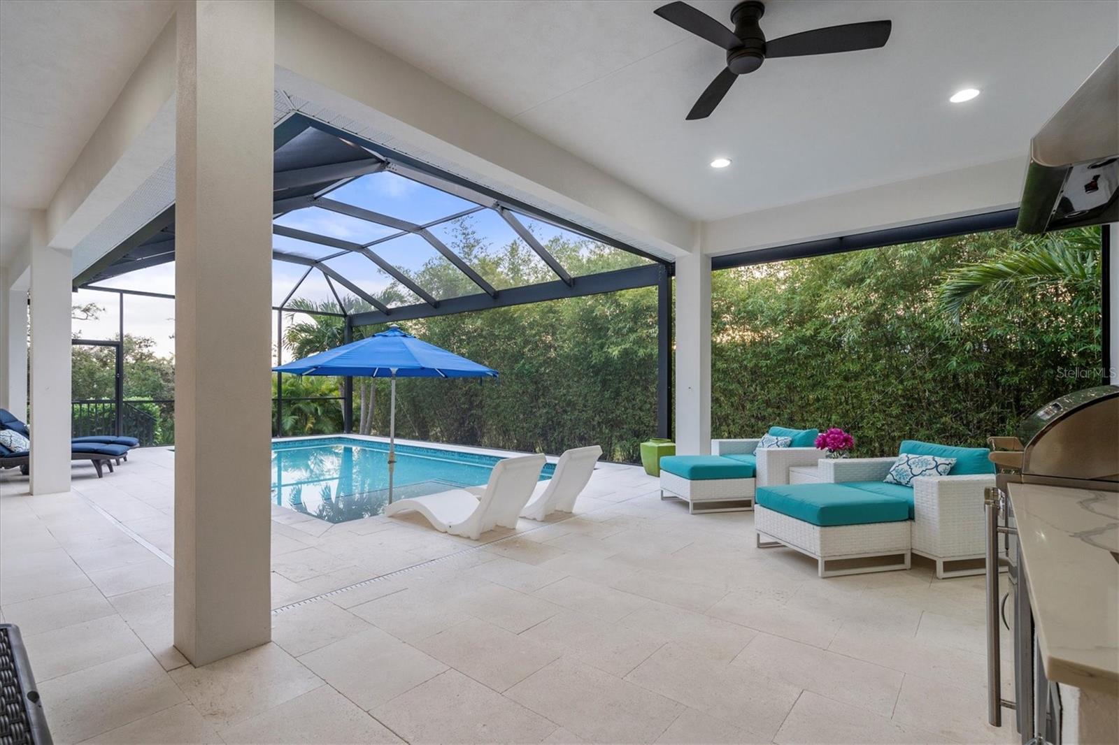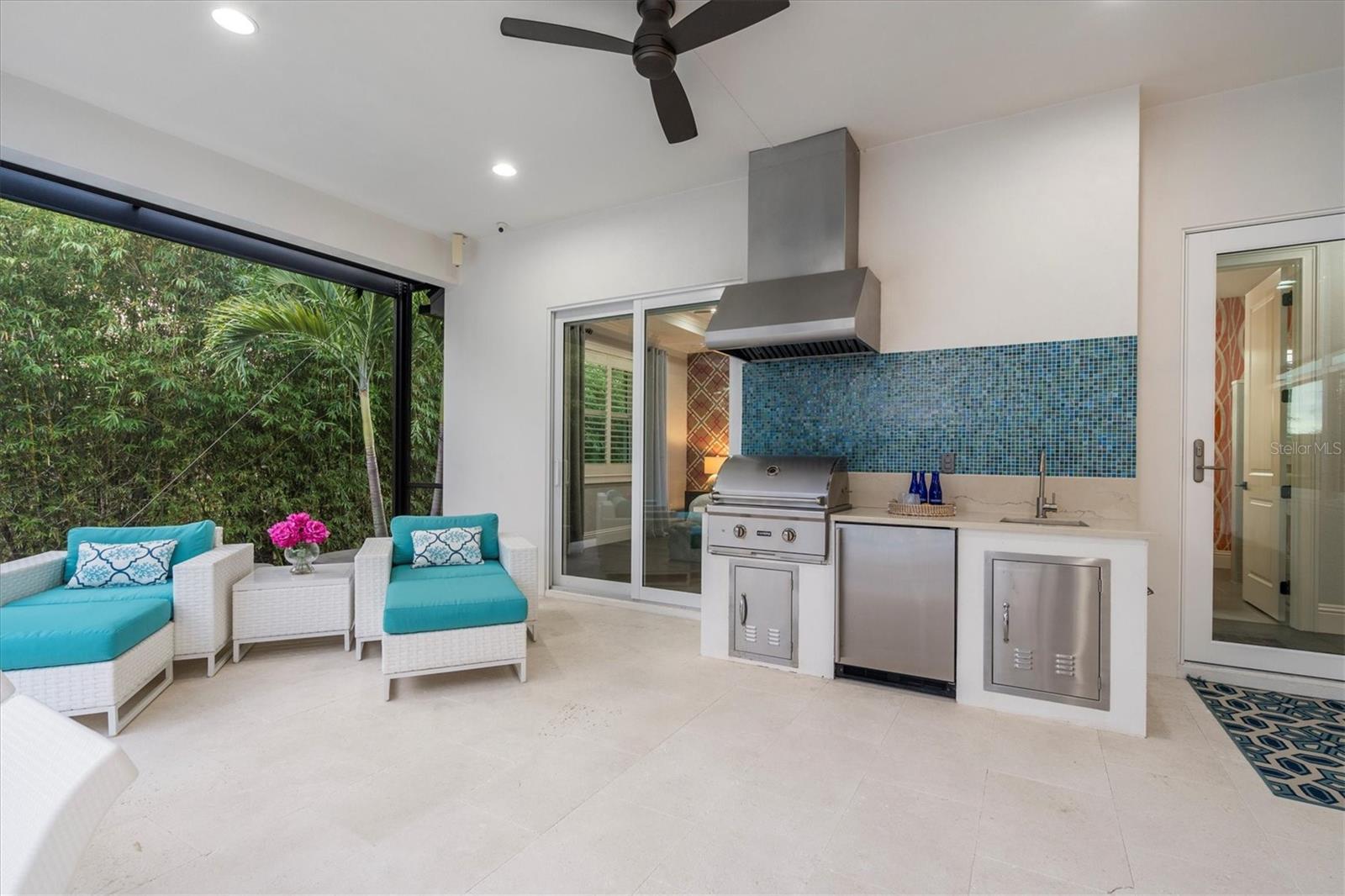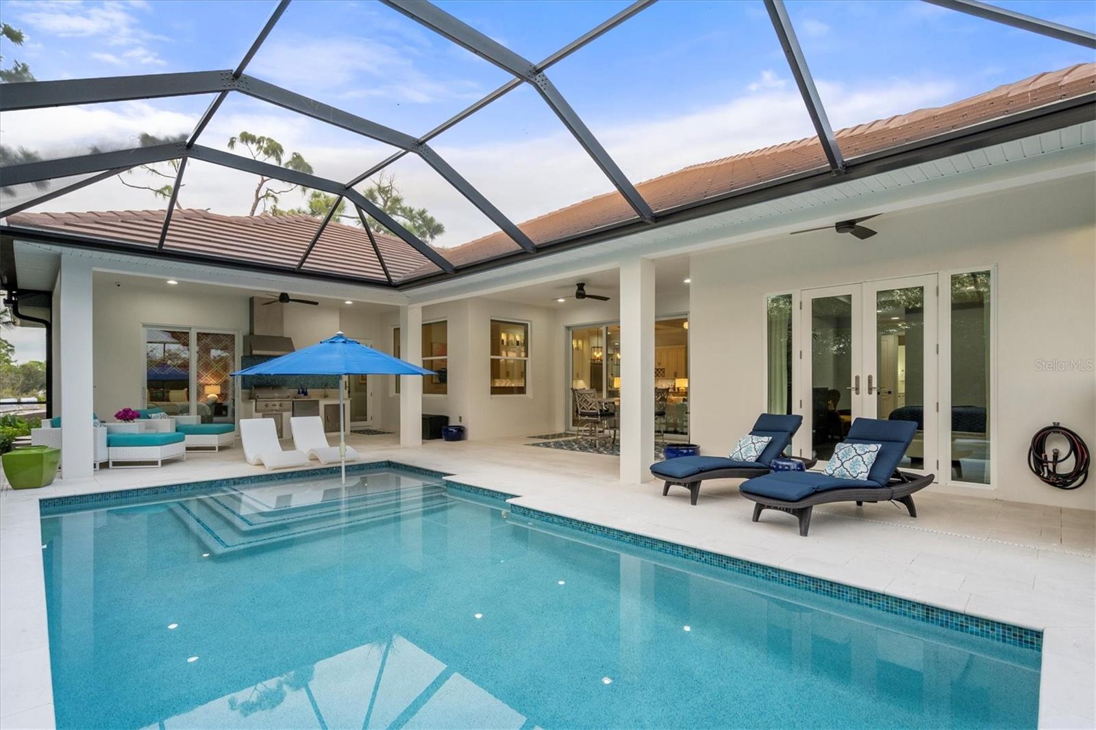- Exterior: French Doors, Irrigation System, Lighting, Outdoor Grill, Outdoor Kitchen, Rain Gutters, Sliding Doors