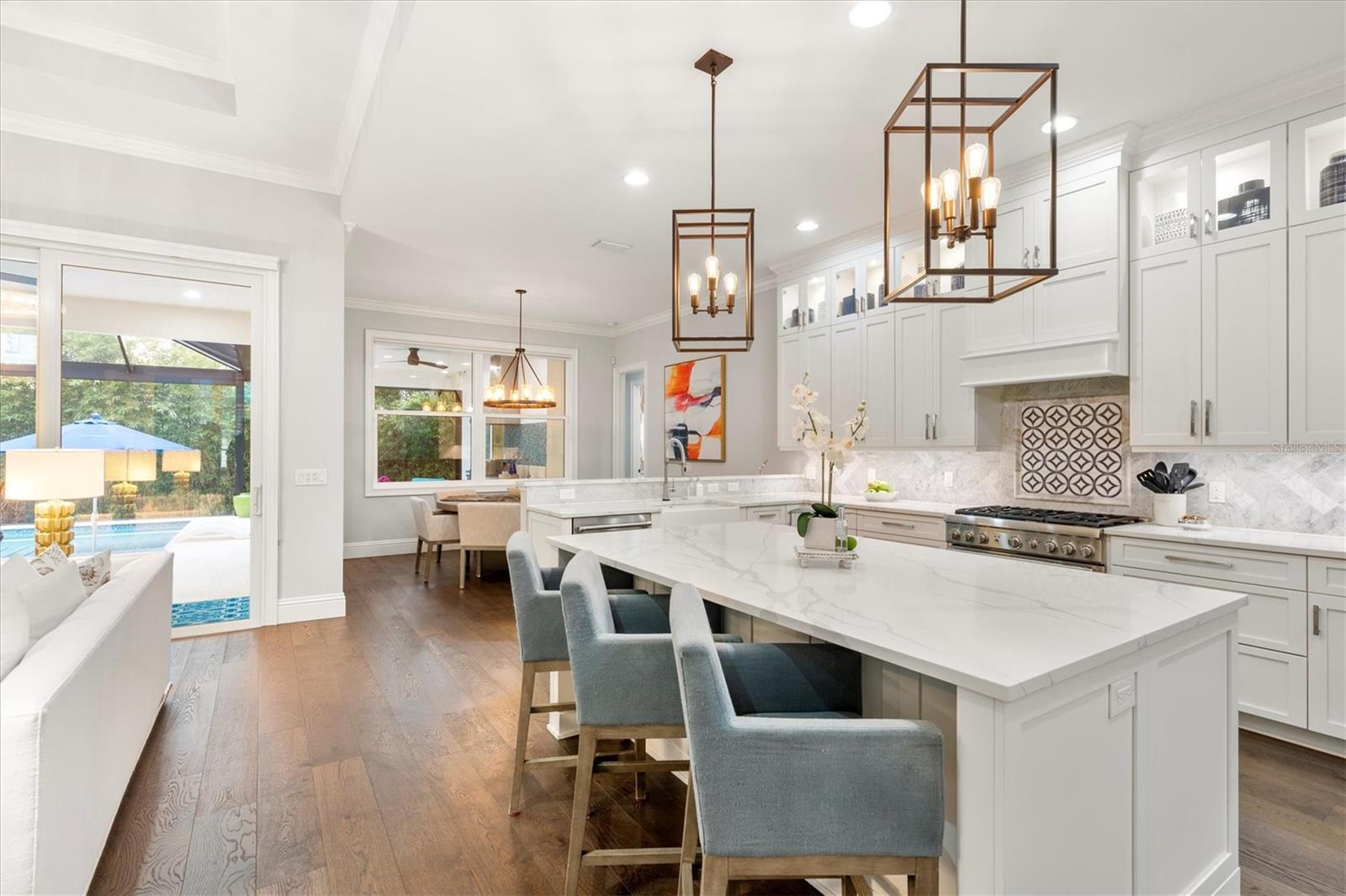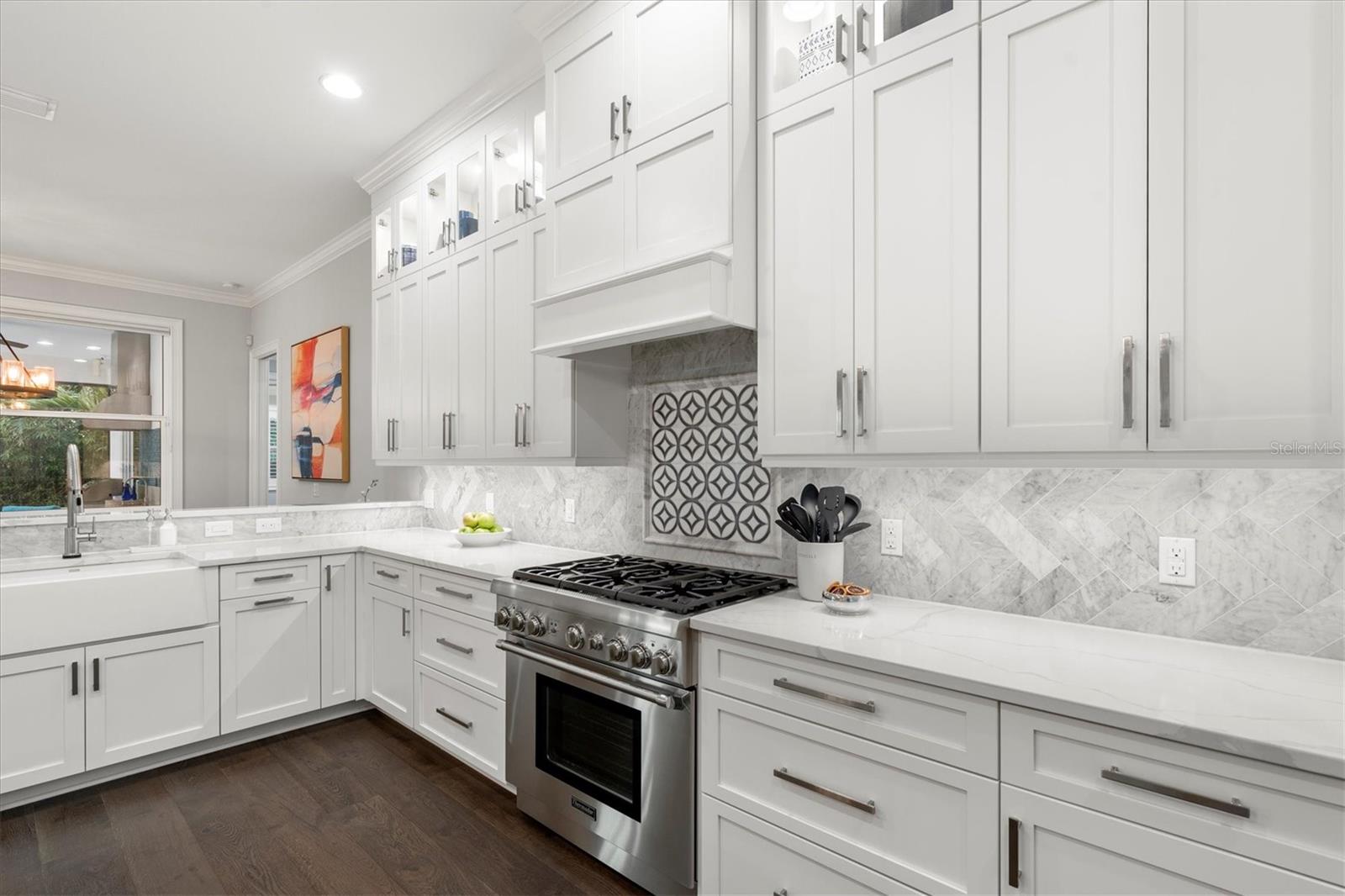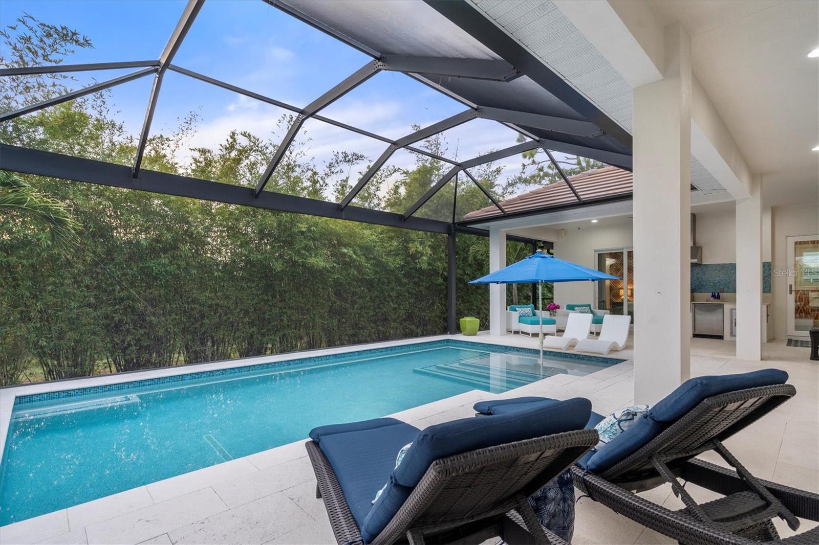 - Exterior: French Doors, Irrigation System, Lighting, Outdoor Grill, Outdoor Kitchen, Rain Gutters, Sliding Doors