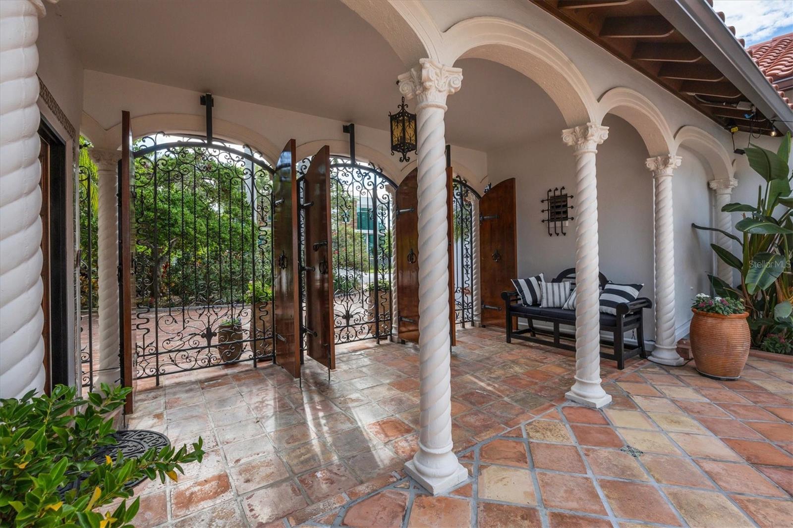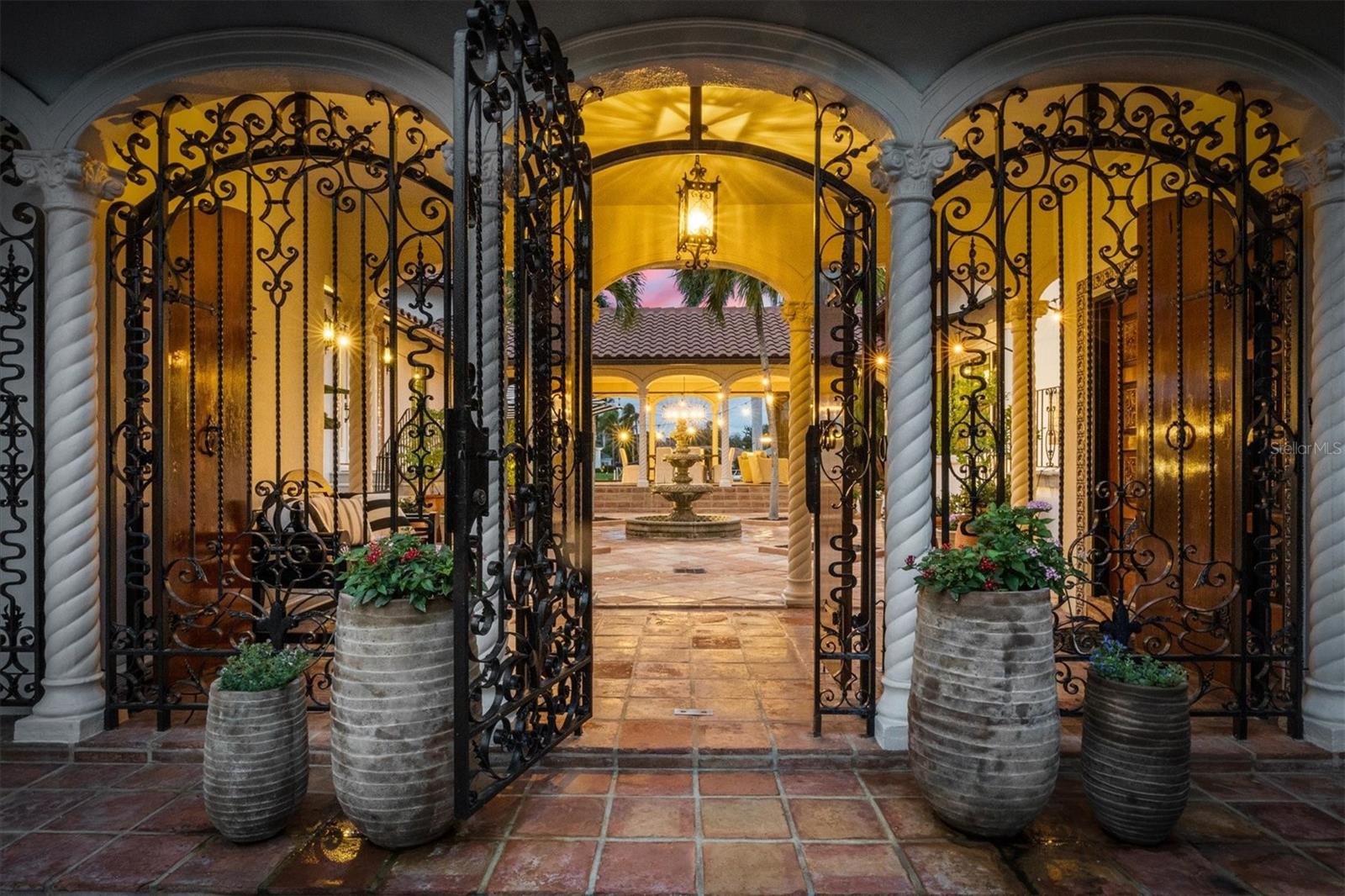 Welcome to your dream residence on coveted Bird Key! This exquisite Spanish Mediterranean-style courtyard home offers an unparalleled blend of luxury, comfort, and breathtaking views. Boasting 3 bedrooms and 4 baths, this meticulously designed bayfront property provides an oasis of tranquility in the heart of Sarasota and direct access via your private deep-water dock to the Gulf of Mexico. As you enter through the gated courtyard, you are greeted by the allure of a trickling fountain, surrounded by lush landscaping, creating a serene and secluded retreat. The courtyard design seamlessly integrates indoor and outdoor living spaces, perfect for entertaining or enjoying quiet moments of relaxation. The interior of this home exudes elegance, with a spacious floor plan bathed in natural light. The living areas showcase impeccable attention to detail, featuring high ceilings, arched doorways, and beautiful tile flooring that complements the Spanish Mediterranean aesthetic. The gourmet kitchen is a culinary enthusiast's delight, equipped with top-of-the-line appliances, including a Subzero fridge, 6 burners w/ griddle Wolf range & double ovens, multiple beverage coolers and a large, Carrara marble island boasting an additional sink. Whether you're preparing a casual meal or hosting a grand dinner party, this kitchen is both functional and stylish, with custom cabinetry, reclaimed barn wood flooring and premium finishes. The three bedrooms offer comfort and privacy, each with its own en-suite bath. The master suite is a sanctuary of luxury, complete with spa-like amenities, a soaking tub, 2 walk- in closets and private access to the backyard retreat. Bird Key is renowned for its exclusive waterfront lifestyle, and this residence epitomizes the best it has to offer. From the private pool oasis to the sweeping views of downtown Sarasota and the Ringling Bridge, every detail of this property reflects a commitment to a life of sophistication and leisure.