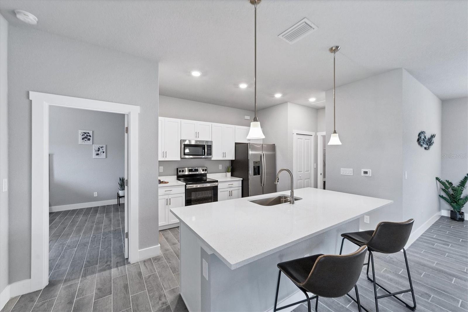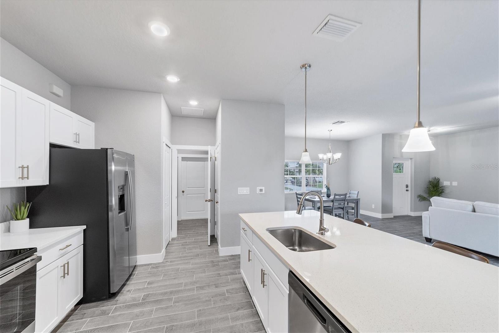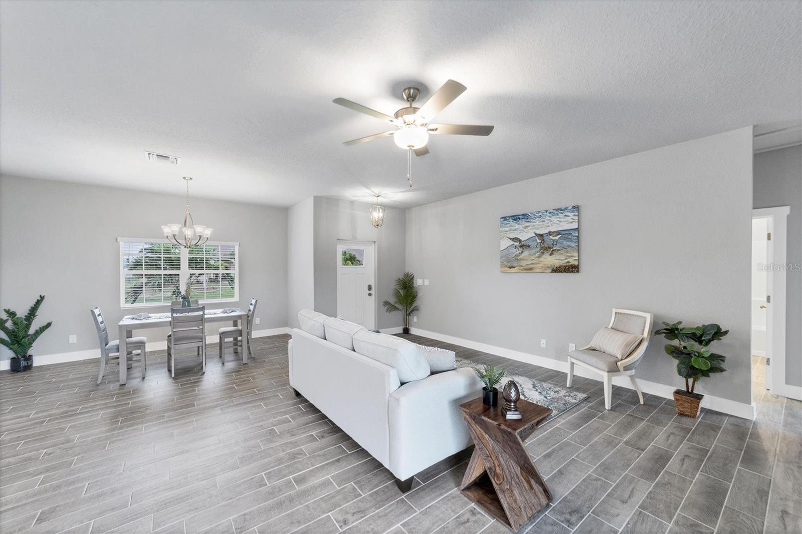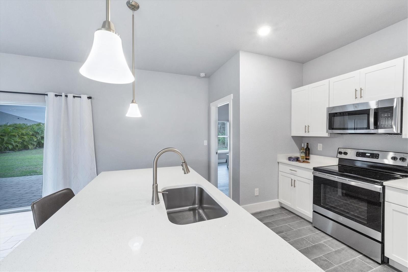 Under Construction. A Brand New Home with an Expected Completion Date of December 2023 can be Yours!! The modern color scheme and design of the exterior of the home, gray paver driveway, walkways and covered porch are showstoppers. Inside you will find this home has an abundance of updates and upgrades that include impact windows, easy care wood look tile flooring throughout, black door hardware throughout, prewired for a whole house generator, keyless entry door, designer black lighting fixtures in the living area and kitchen, energy efficient air conditioning and water heater systems, city water and sewer. The gourmet kitchen features white shaker style cabinets, quartz countertops, and a stainless steel appliance package. The ensuite primary bedroom has 2 walk-in closets, dual vanity, an oversized fully tiled walk-in shower. The two additional bedrooms both have double door reach-in closets, and the shared guest bathroom has a nice shower/tub combo and oversized vanity. Step through the sliding doors in the great room to a nice sized paver brick patio. This home is situated in the waterfront community of South Gulf Cove, where you can join the voluntary HOA for access to the community boat ramp, nature trails, a garden park, picnic pavilions, clubhouse, social activities and upgrades coming soon to include pickleball courts. The builder will provide a 2-10 home warranty and if you choose the builder's preferred lender you will receive an additional $2,500 bonus towards lender credits. **NOTE: Photos are of the builder's model home with the same layout and floor plan. Schedule your showing to see everything this home has to offer today.