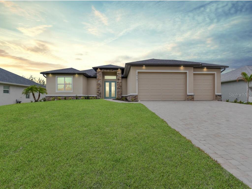 JUST REDUCED!!!! This NEW CONSTRUCTION custom home by Southwest Florida Dream Builders is ready to be yours. Situated on a corner lot with so much extra yard space to utilize, the possibilities are endless. This home is PACKED with high end amenities such as beautiful granite countertops, all wood cabinets, tile floors throughout, and hurricane impact glass throughout the whole house. From the moment you walk in you are greeted with a STUNNING view to your deck area through 8ft tall disappearing sliders in this open floor plan design. An oversized island and breakfast bar provides the perfect space to prepare meals and entertain. The dining room is separate from the nook/sitting area; which is situated off the kitchen and framed by a large aquarium window to the pool area. The master bedroom features yet another way to access the lanai out of 8 ft tall french doors with internalized blinds. Dual sinks in the master bath and a large walk in shower. Enjoy the Florida lifestyle on your covered paver lanai with a grilling pass-through for optimum airflow or soak up the sun in a 12x28 saltwater pool all surrounded by a large paver deck and sunning area. The yard has irrigation installed so keeping your grass in tip-top shape during the dry season is a breeze. The 3rd car garage is a must have for anyone needing additional storage space or an out of the way area for extra cars or recreational vehicles. South Gulf Cove is a highly sought after neighborhood with parks, boat ramps, kayak launches, fishing, and fitness/nature trails. Secure your piece of paradise today!