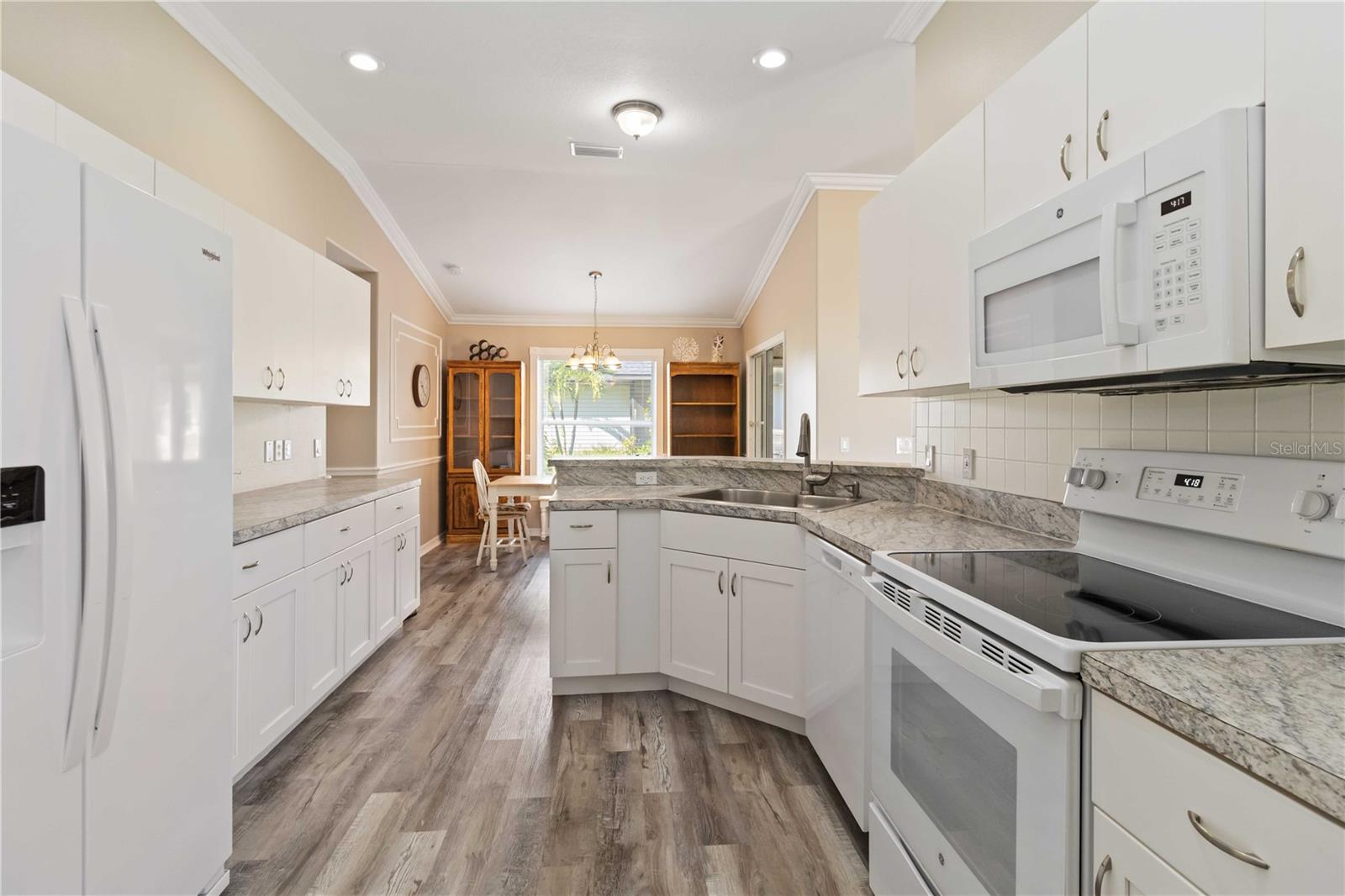Be sure to be one of the first to see this great deal in the highly desirable South Venice area. Don't miss your chance to own this Beautiful 3 bedroom 2 bath with an additional under air FLEX SPACE (Perfect for a home office, man cave or craft room alike) home situated on a 100' WIDE CORNER LOT. Walking through the double door entrance, you can't help but notice the custom trim work found throughout the main living areas such as crown molding, chair railing, wainscoting and even the windows and doors are completely cased out. Check out those gorgeous luxury plank floors flowing to a well appointed kitchen with a huge pantry and ample amounts of counter and cabinet space. This home features a split floor plan with 2 sizeable guest bedrooms to the left and a large primary bedroom off to the right. The primary ensuite complete with a large walk in closet, showcases a newly renovated shower with subway tile and an updated vanity. Through the sliding glass doors you will find a great sized lanai that has an additional set of sliders allowing you the option and utility of year round usage. Off the lanai is where the additional flex room is located. Things to know before you go: New Roof 2023, A/C 2017, Brand New Never Used Water System, and Brand New Exterior Paint (Accessible Beige). This home is priced to sell, so don't let your South Venice Area Dream Home become someone else's address. Setup your showing today!