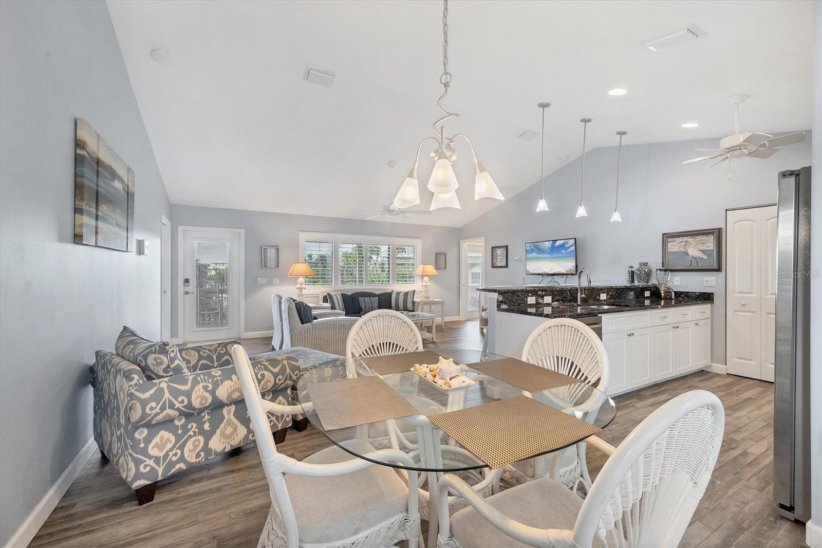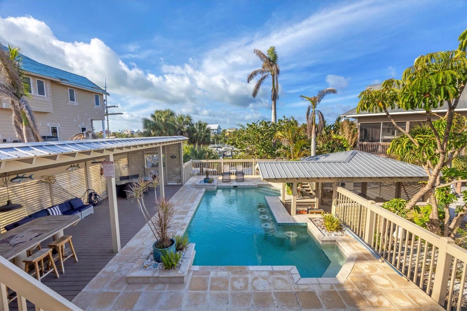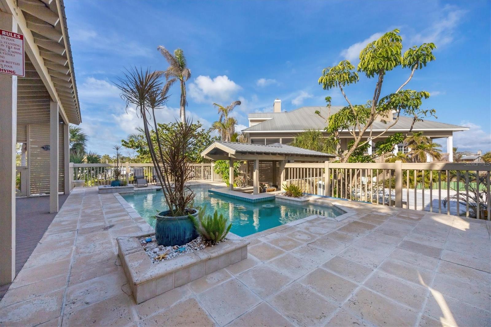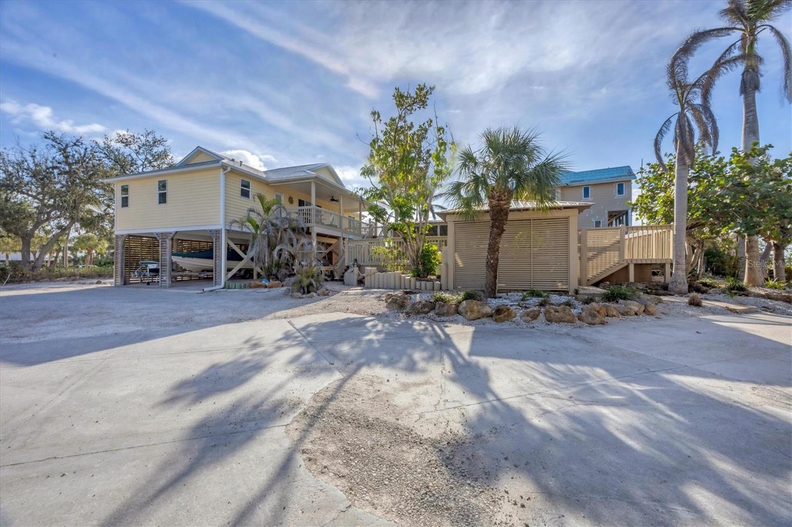 Welcome to Don Pedro/Palm Island! This exclusive key west style Florida home offers tasteful and updated interior design as well as expansive outdoor entertainment area. The lot is just shy of one half acre. This 2 bedroom, 2 bath home has wood like tile flooring, windows with interior plantation shutters throughout, granite countertops throughout, stainless steel appliances, high coffered ceilings, impact glass and much more. Air conditioned Bonus Room with 1/2 bath. Outdoor living space includes a large pool with swim-up bar offering six in pool bar seating area, a covered 10 x 16 foot outdoor grill area, a 12 x 36 foot lounging area covered by metal roofing, louvered walls, composite decking. Additional exterior amenities include outdoor shower, air conditioned bonus room with pool bath, a 17 x 13 foot garage, and a 25 x 36 foot paved area under home. There is a shared dock located on Kettle Harbor waterway with no bridges to the Intracoastal Waterway and Gulf of Mexico. This property offers the best that Florida has to offer and is a MUST SEE.