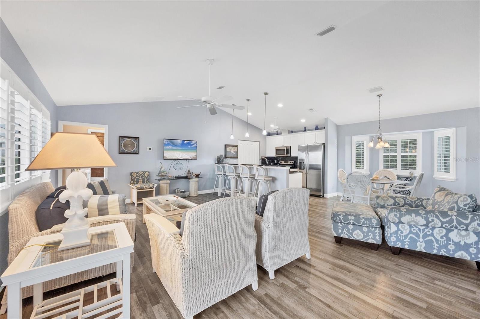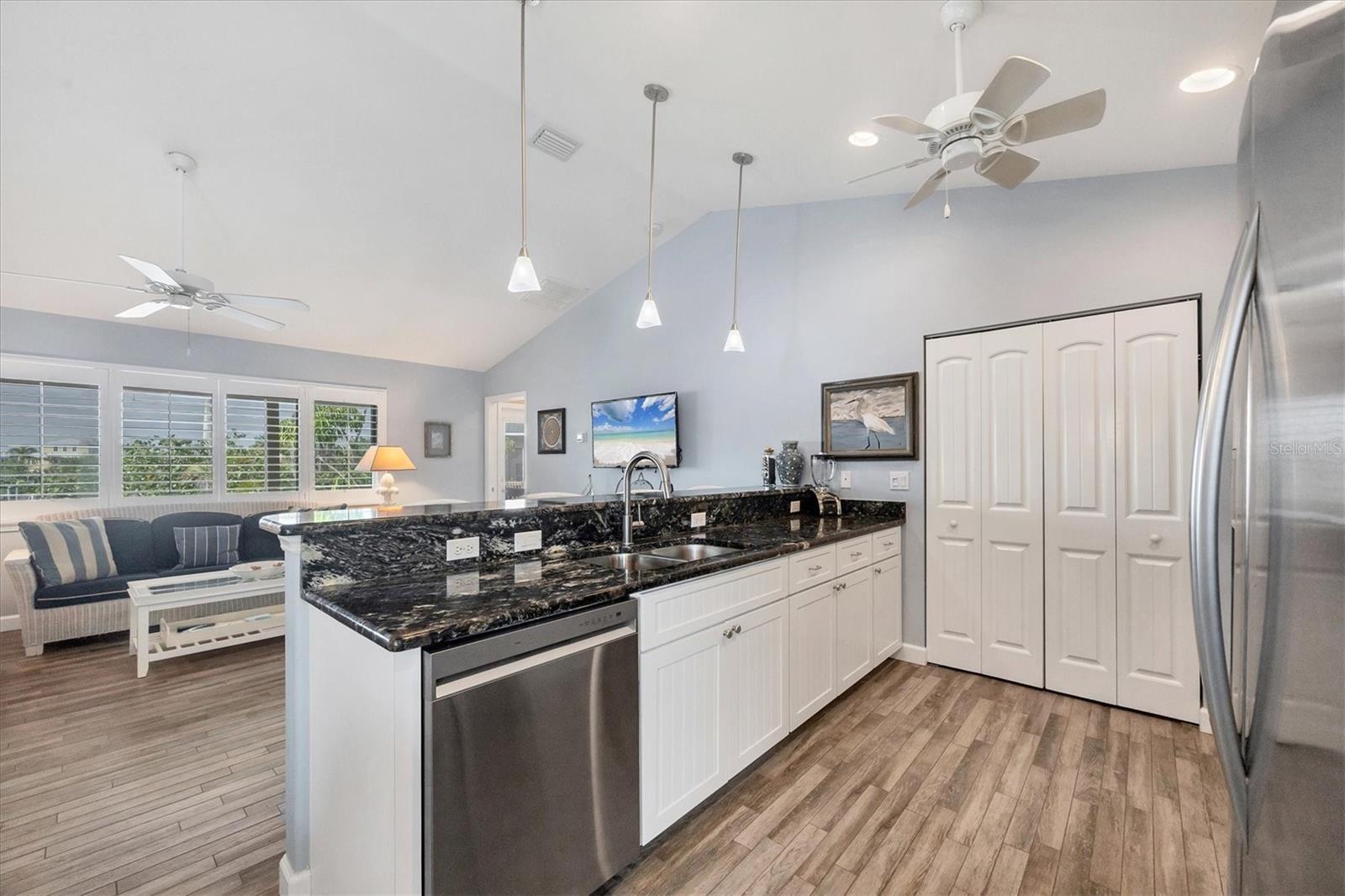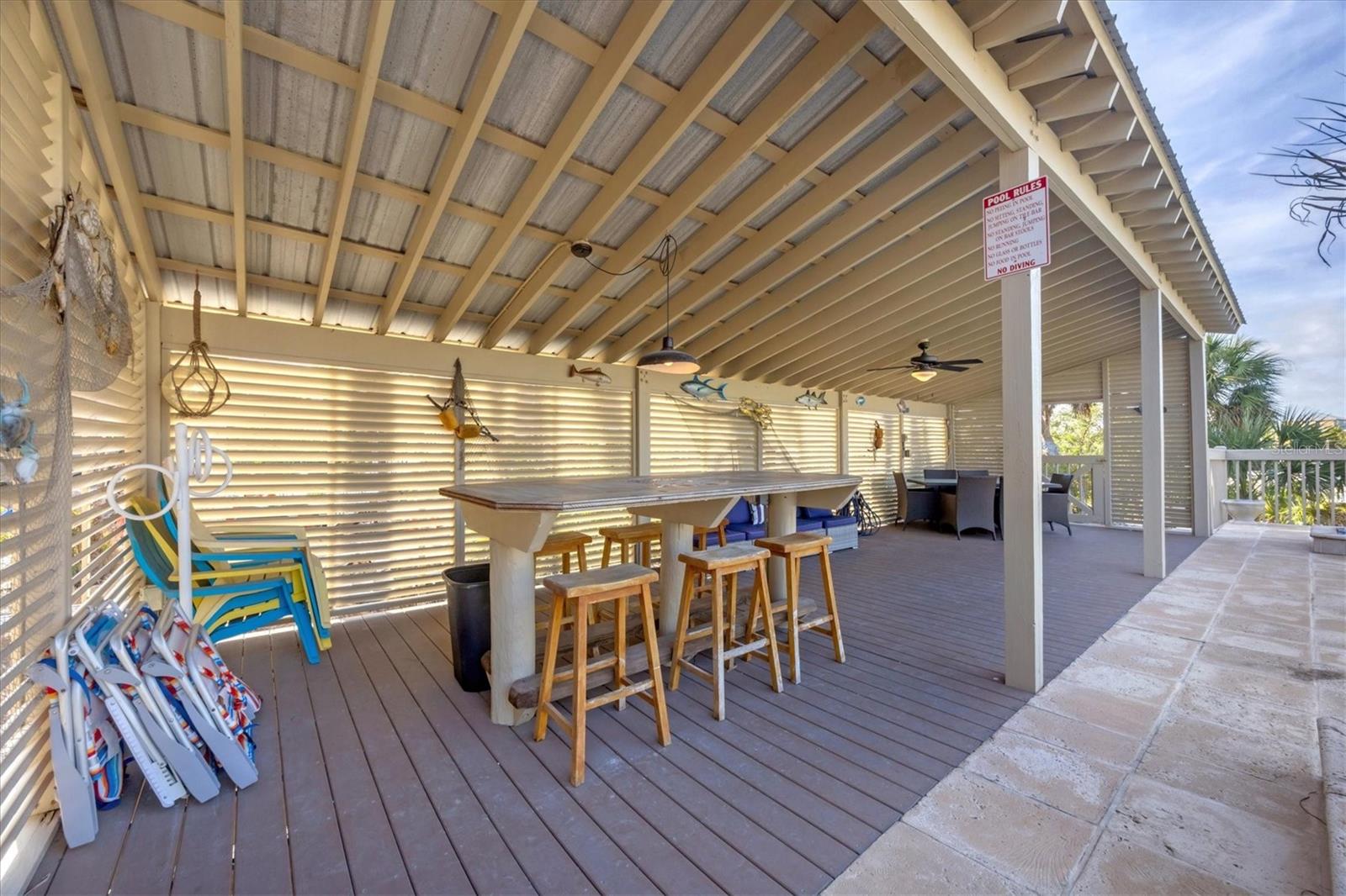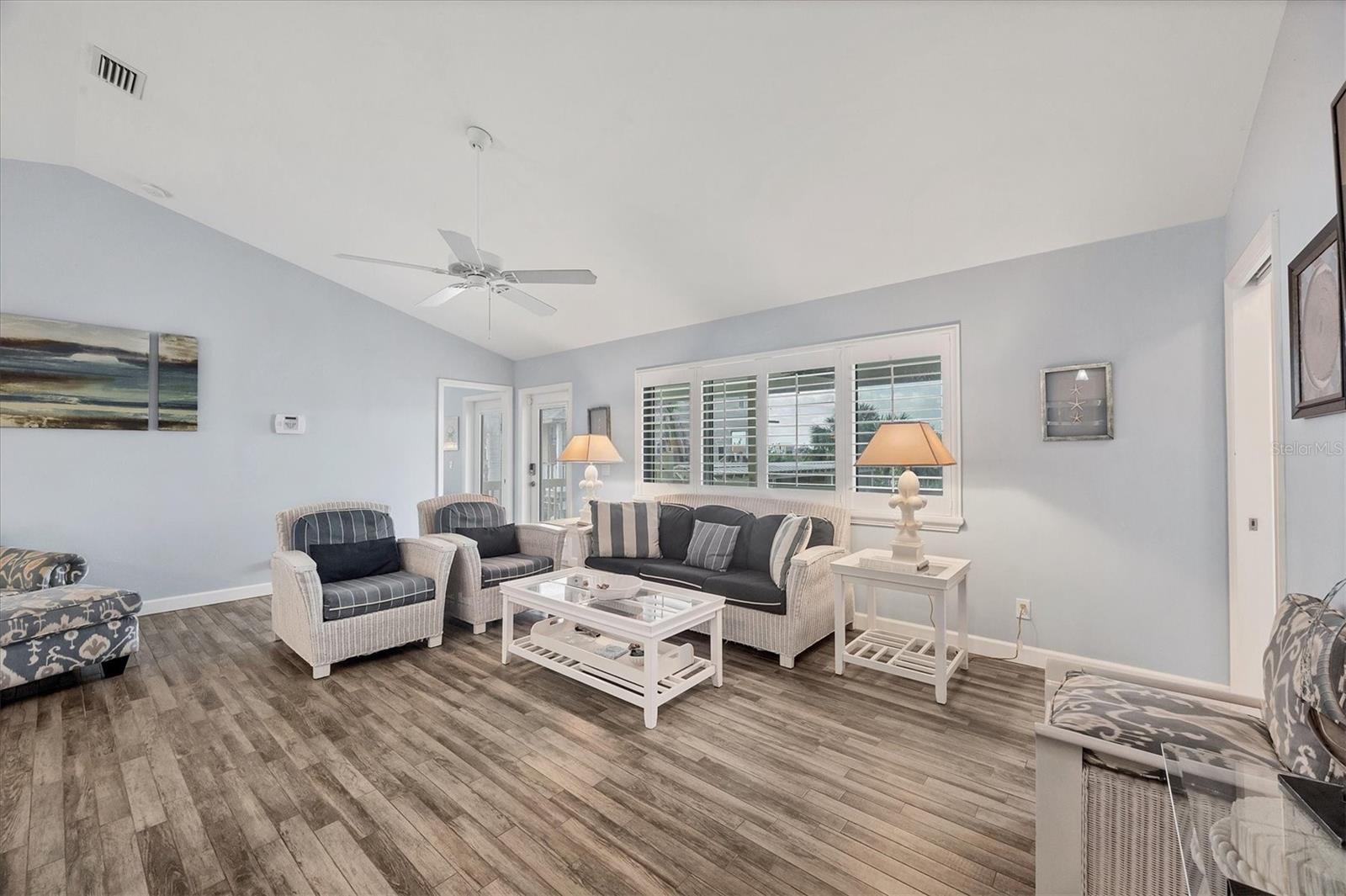 Welcome to Don Pedro/Palm Island! This exclusive key west style Florida home offers tasteful and updated interior design as well as expansive outdoor entertainment area. The lot is just shy of one half acre. This 2 bedroom, 2 bath home has wood like tile flooring, windows with interior plantation shutters throughout, granite countertops throughout, stainless steel appliances, high coffered ceilings, impact glass and much more. Air conditioned Bonus Room with 1/2 bath. Outdoor living space includes a large pool with swim-up bar offering six in pool bar seating area, a covered 10 x 16 foot outdoor grill area, a 12 x 36 foot lounging area covered by metal roofing, louvered walls, composite decking. Additional exterior amenities include outdoor shower, air conditioned bonus room with pool bath, a 17 x 13 foot garage, and a 25 x 36 foot paved area under home. There is a shared dock located on Kettle Harbor waterway with no bridges to the Intracoastal Waterway and Gulf of Mexico. This property offers the best that Florida has to offer and is a MUST SEE.