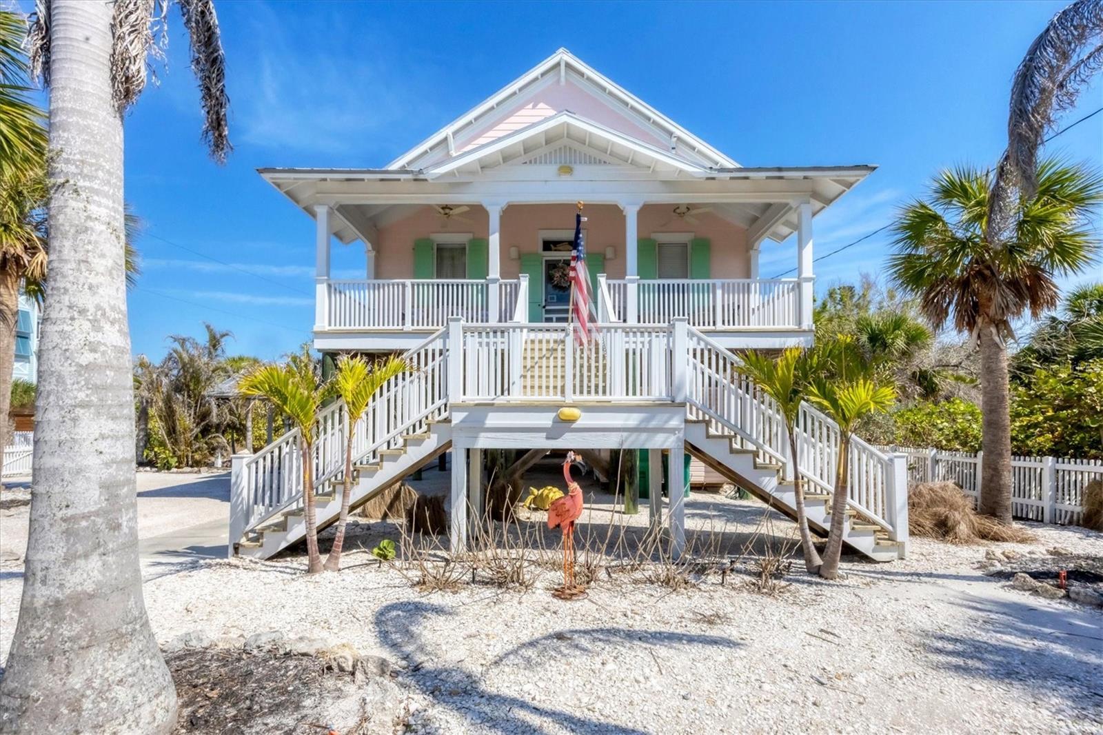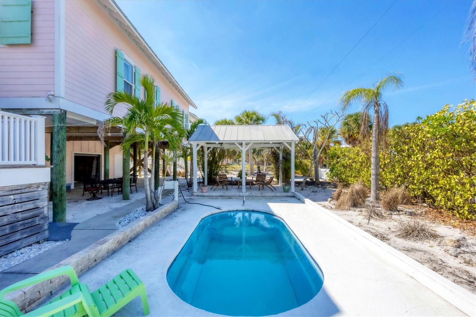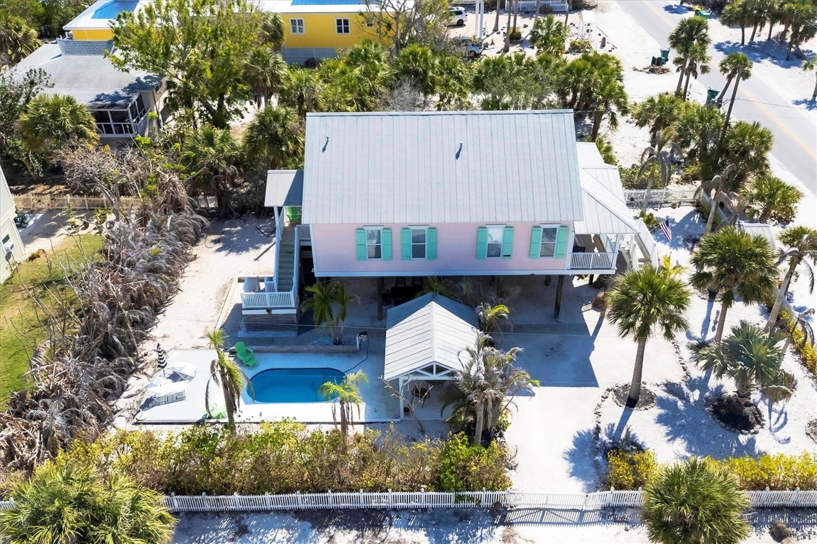 This picture-perfect coastal cottage on Palm Island offers 3 bedrooms, 2 baths, and a heated pool, delivering the full package for island living. From the moment you step inside, you'll be captivated by the endless designer details, including custom millwork, elegant tray ceilings, and thoughtfully designed built-in features, all showcasing impeccable craftsmanship and attention to detail.Step outside into your lush tropical oasis, where a poolside cabana invites you to unwind in the shade. Rinse off in the outdoor shower after a day at the beach, and enjoy the ample storage space for all your island essentials.Palm Island is a true coastal paradise, still reminiscent of Old Florida charm. Stroll for miles along pristine, quiet beaches filled with shells and sharks' teeth, explore the island by golf cart or bicycle, and let the soothing sights and sounds of nature surround you.Whether you're looking for a private retreat or a turnkey vacation rental, this tropical escape is the perfect opportunity to experience the best of island living.