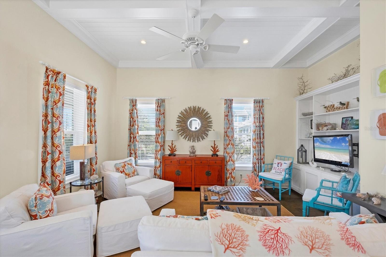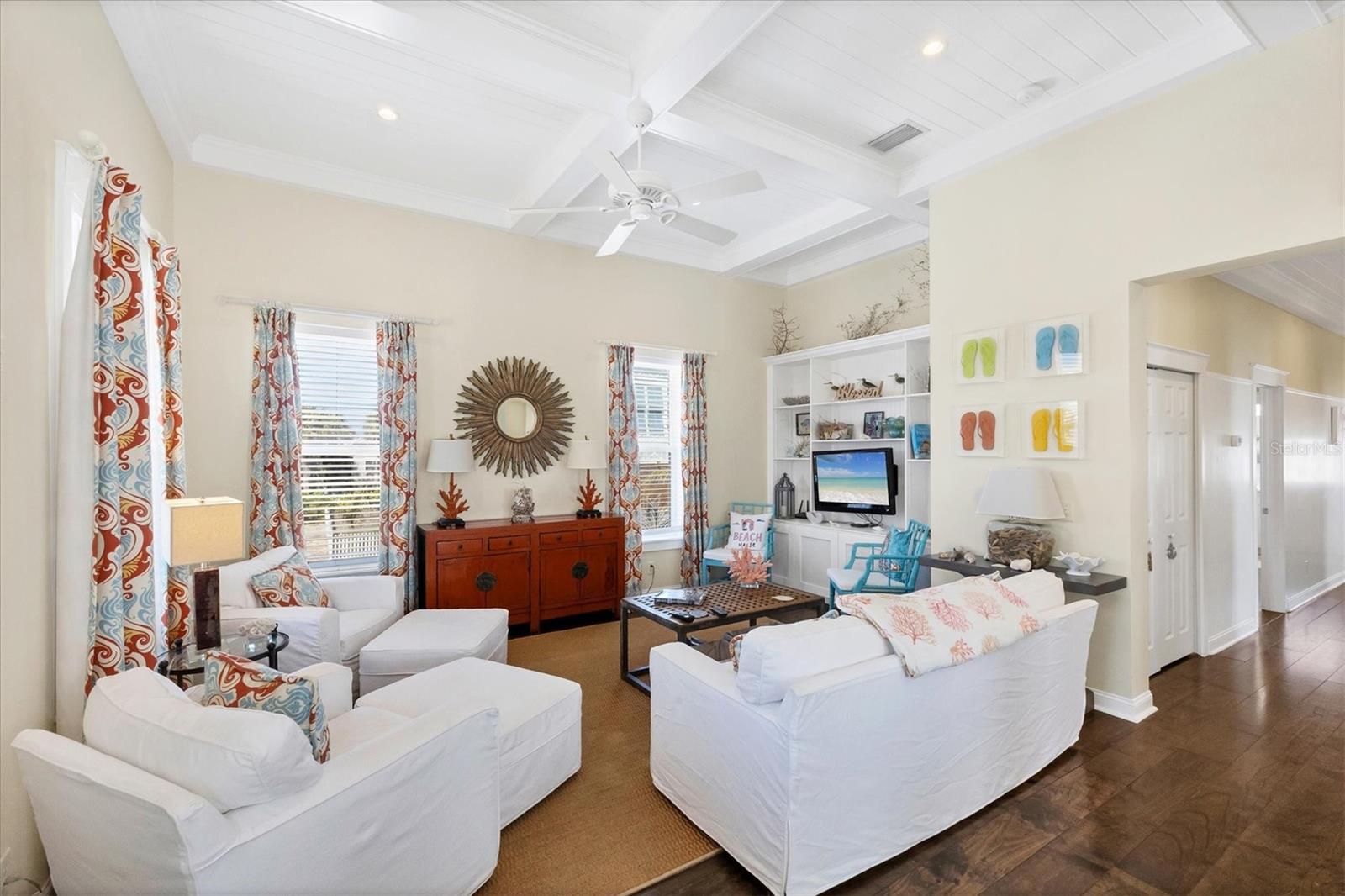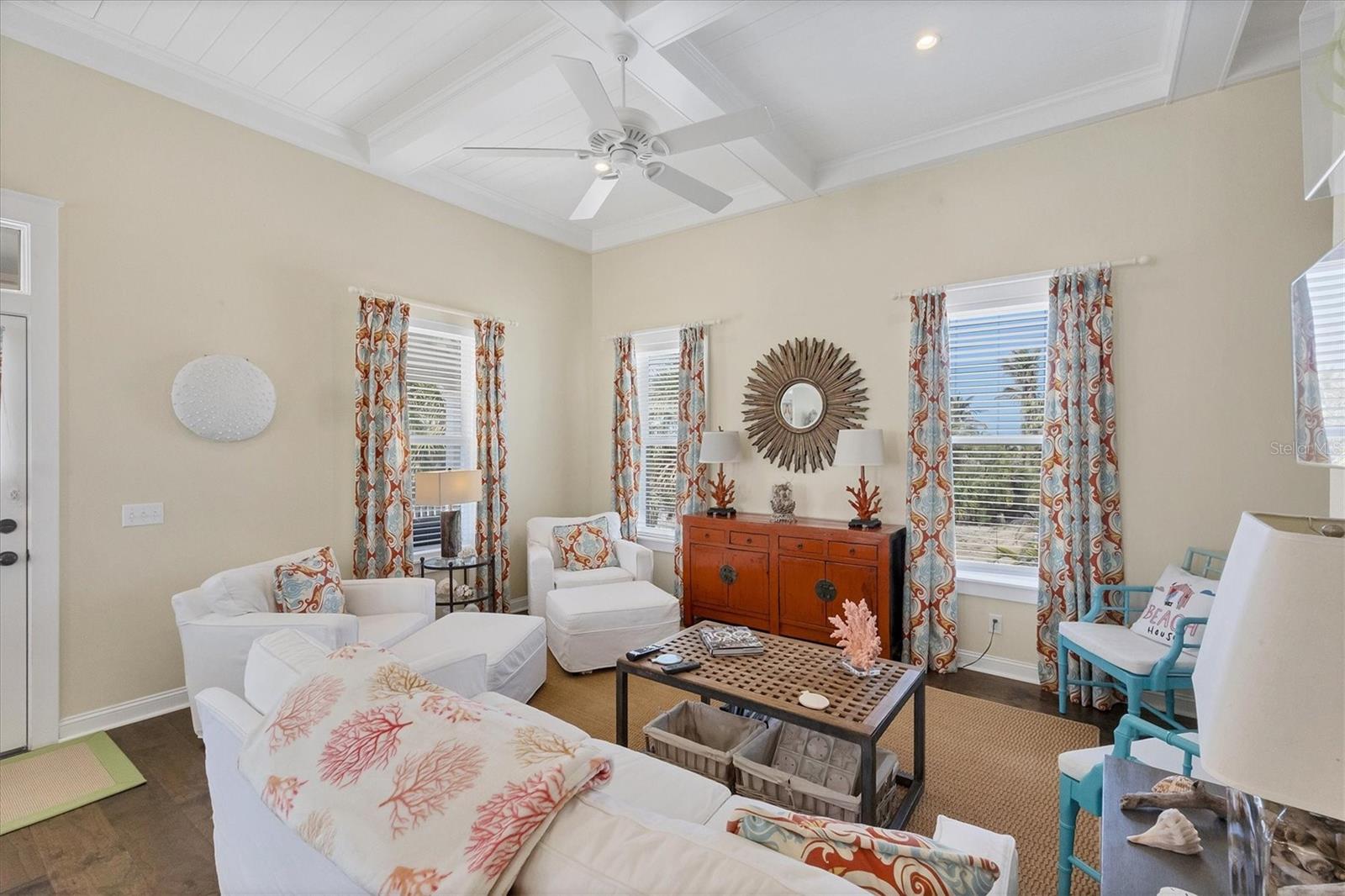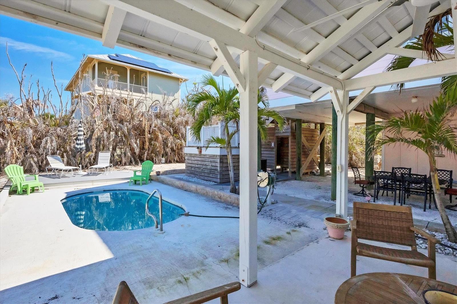 This picture-perfect coastal cottage on Palm Island offers 3 bedrooms, 2 baths, and a heated pool, delivering the full package for island living. From the moment you step inside, you'll be captivated by the endless designer details, including custom millwork, elegant tray ceilings, and thoughtfully designed built-in features, all showcasing impeccable craftsmanship and attention to detail.Step outside into your lush tropical oasis, where a poolside cabana invites you to unwind in the shade. Rinse off in the outdoor shower after a day at the beach, and enjoy the ample storage space for all your island essentials.Palm Island is a true coastal paradise, still reminiscent of Old Florida charm. Stroll for miles along pristine, quiet beaches filled with shells and sharks' teeth, explore the island by golf cart or bicycle, and let the soothing sights and sounds of nature surround you.Whether you're looking for a private retreat or a turnkey vacation rental, this tropical escape is the perfect opportunity to experience the best of island living.