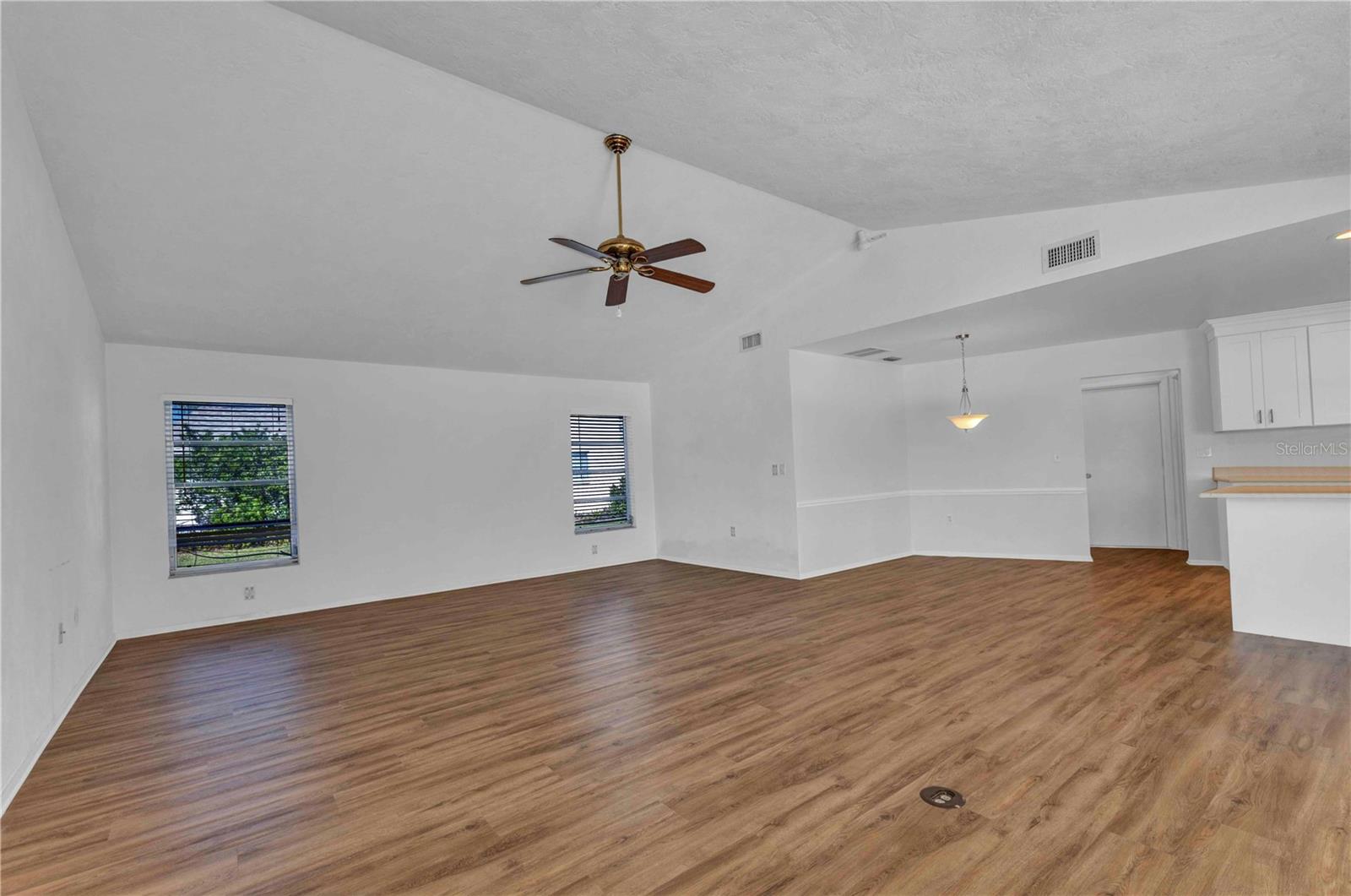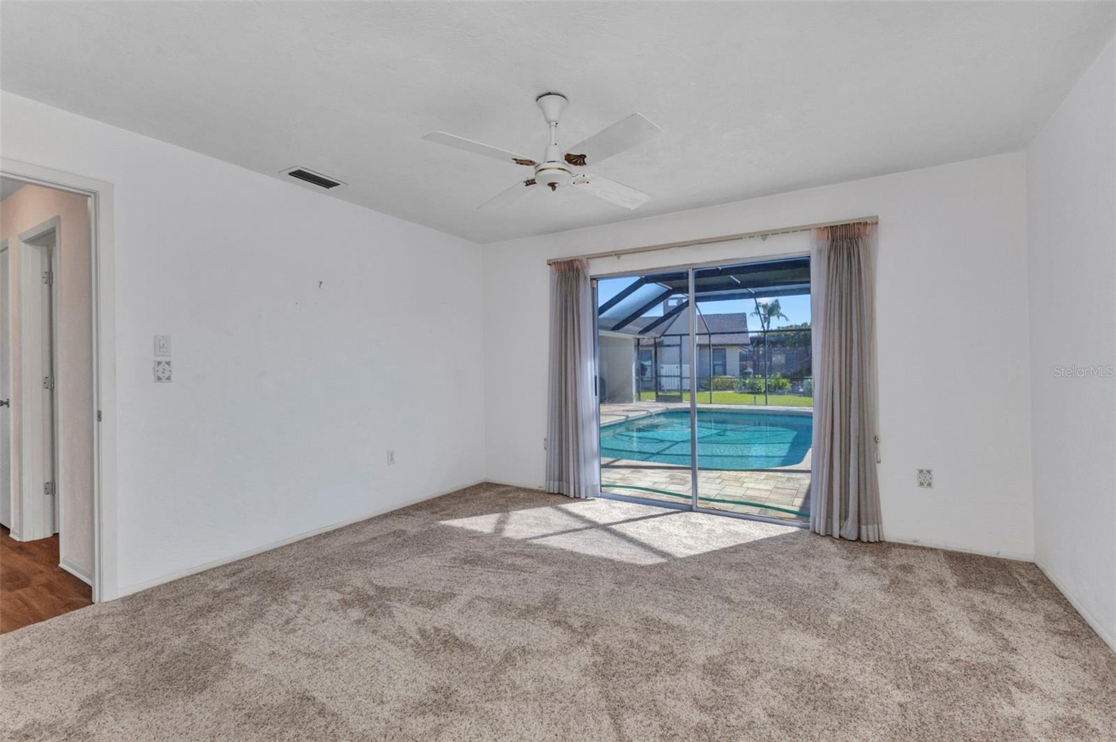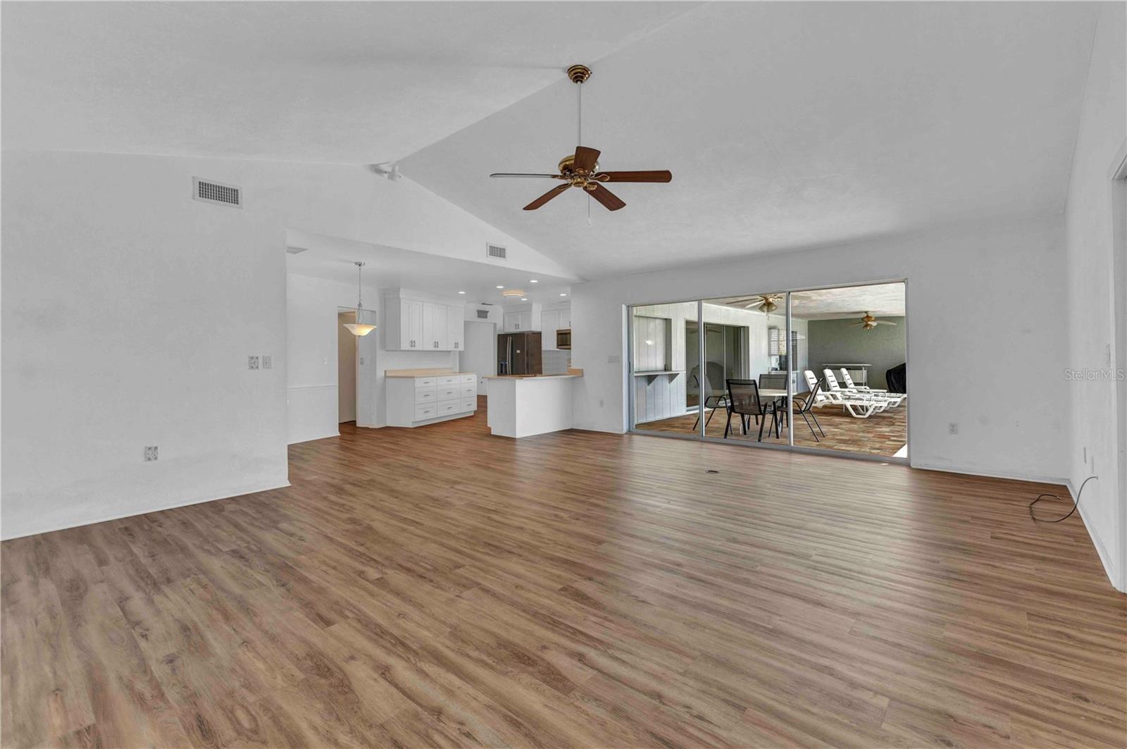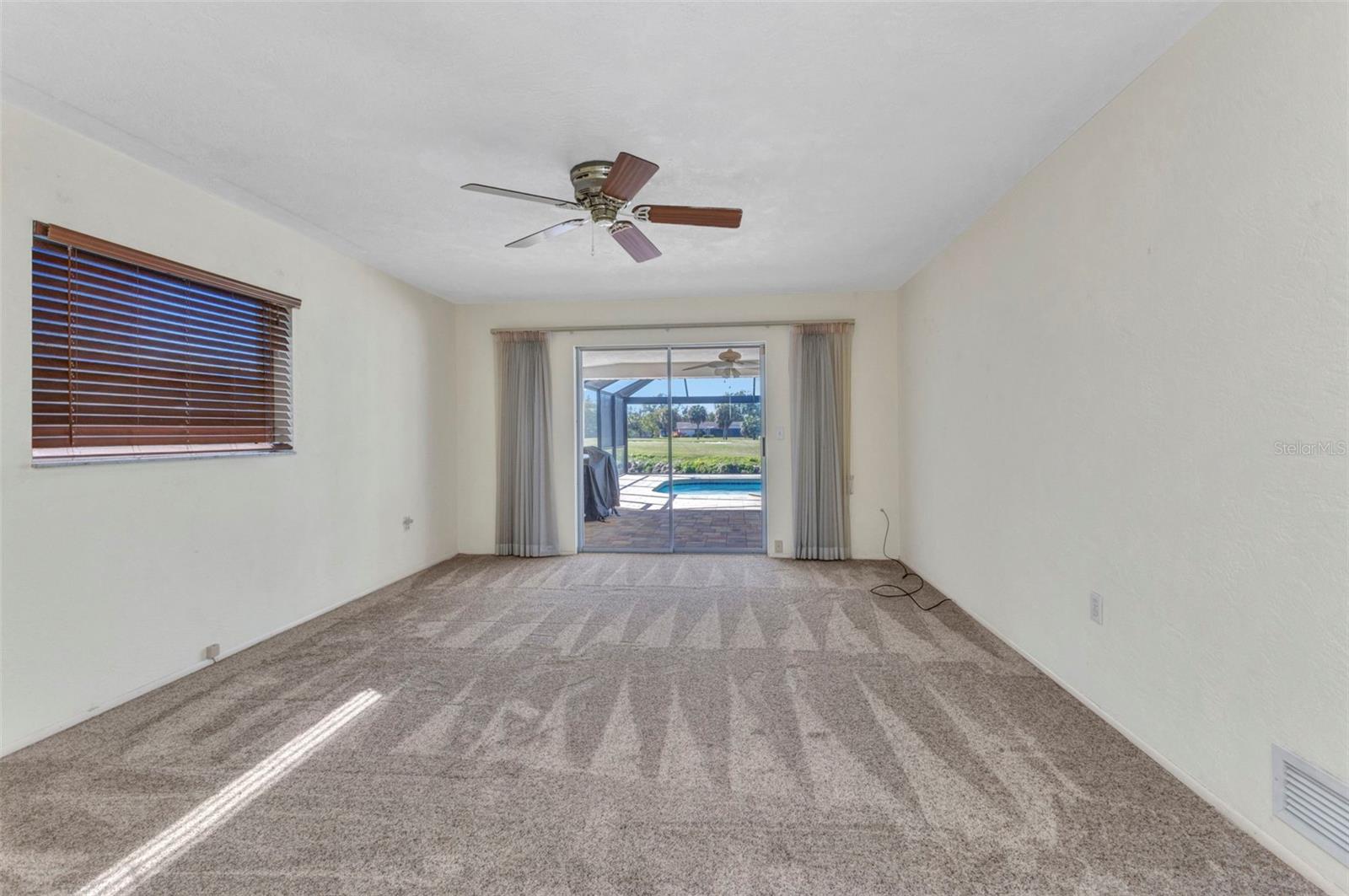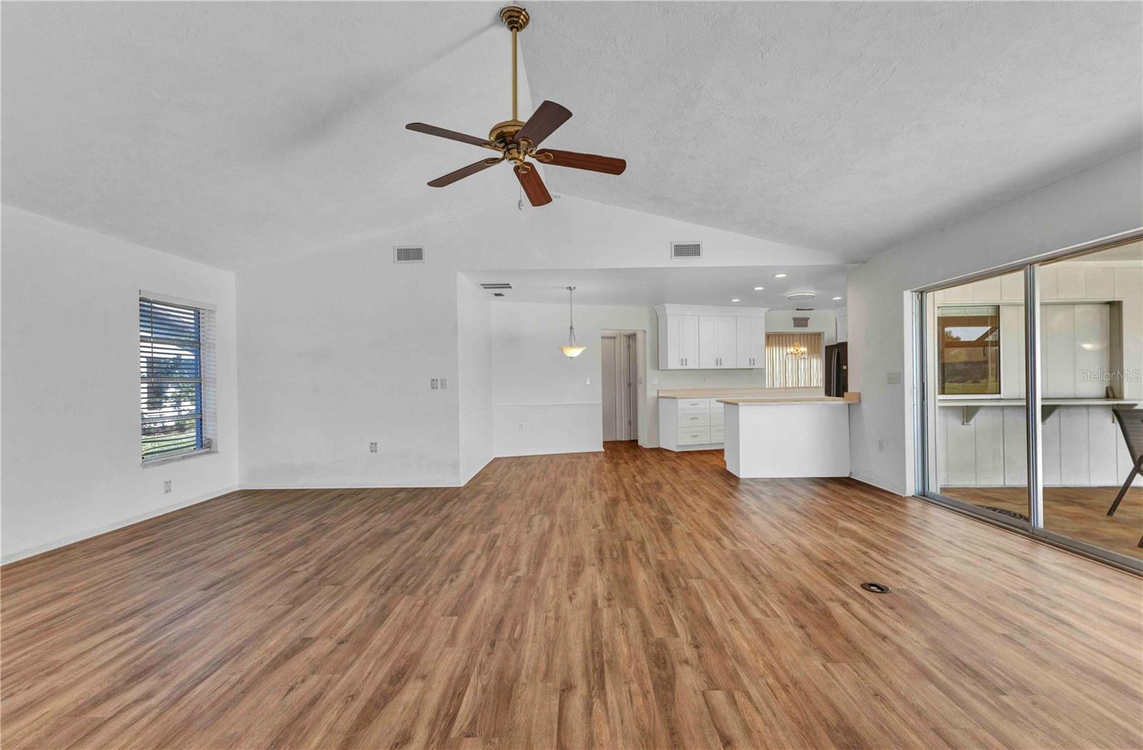 One or more photo(s) has been virtually staged. Discover the perfect blend of space, location, and breathtaking views in this beautiful Jacaranda Country Club home. You'll fall in love with the oversized, newly paved southern-facing lanai and large pool, offering serene WATER AND GOLF COURSE VIEWS--the best of both worlds. This home has been thoughtfully updated for both comfort and style. NEW PROFESSIONAL INTERIOR PAINTING was just completed to provide a bright fresh background for your decor, a new roof was installed in 2016, and a new pool cage was added in 2018. NEWER LUXURY VINYL PLANK FLOORING throughout the living, dining, kitchen and family room areas for easy maintenance and cleaning. REMODELED KITCHEN features neutral easy to clean quartz countertops, soft-close shaker style cabinetry, and a cozy breakfast nook that opens to the vaulted-ceiling family room. Designed for seamless indoor-outdoor living, the home offers multiple sliding glass doors, allowing access to the pool from nearly every room, including the living room, primary bedroom, family room, second bath, and third bedroom. Having the pool access bath is so convenient to avoid drips though the house. Additional highlights include a circle driveway for added parking space, a spacious 25' x 24' garage with pull-down attic storage, a walk-in pantry, and an extra-large laundry room. A RainBird irrigation system keeps the lawn lush and green year-round. Located in an X FLOOD ZONE so no flood insurance required with most lenders, NO CDD FEES and a low HOA of just $500 a year, this home offers the ultimate affordable Florida lifestyle. Superb location just about 5 miles from the beautiful beaches along the Gulf, the newly developing Wellen Park & the Cool Today Atlanta Braves Training Facility, Historic Downtown Venice is just 6 miles away and features a multitude of boutique shops and sidewalk cafe restaurants along with many events. Don't miss your chance to make it yours!