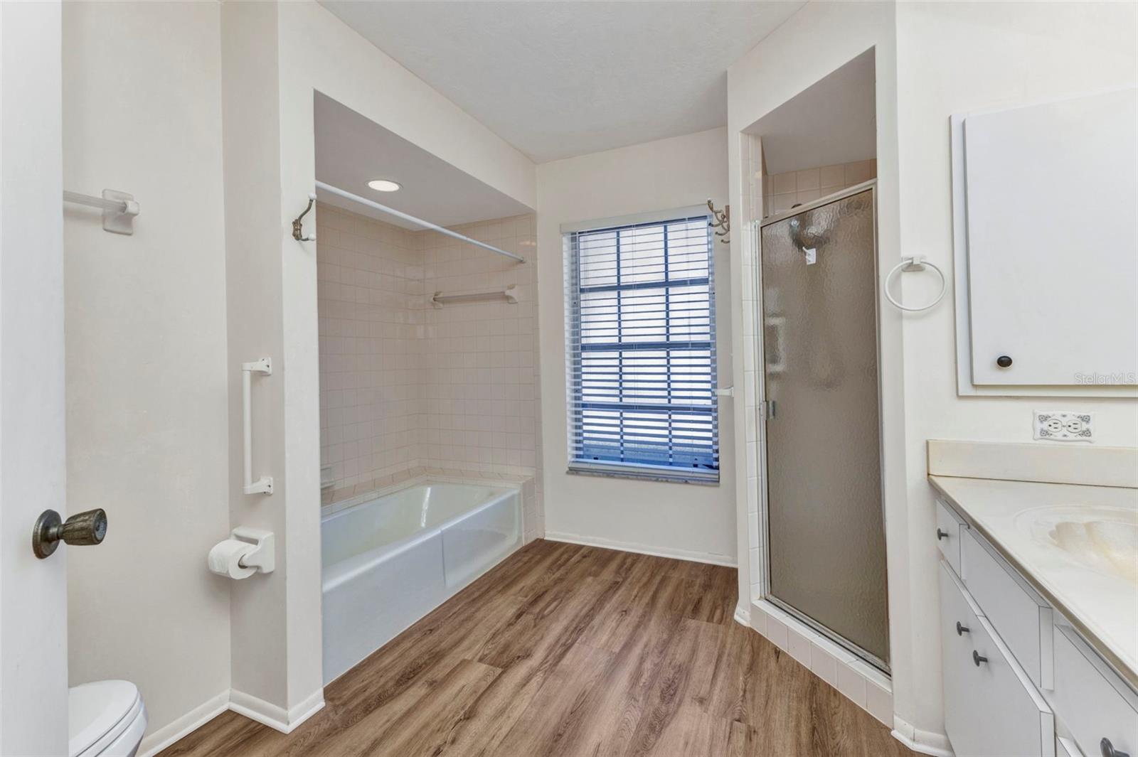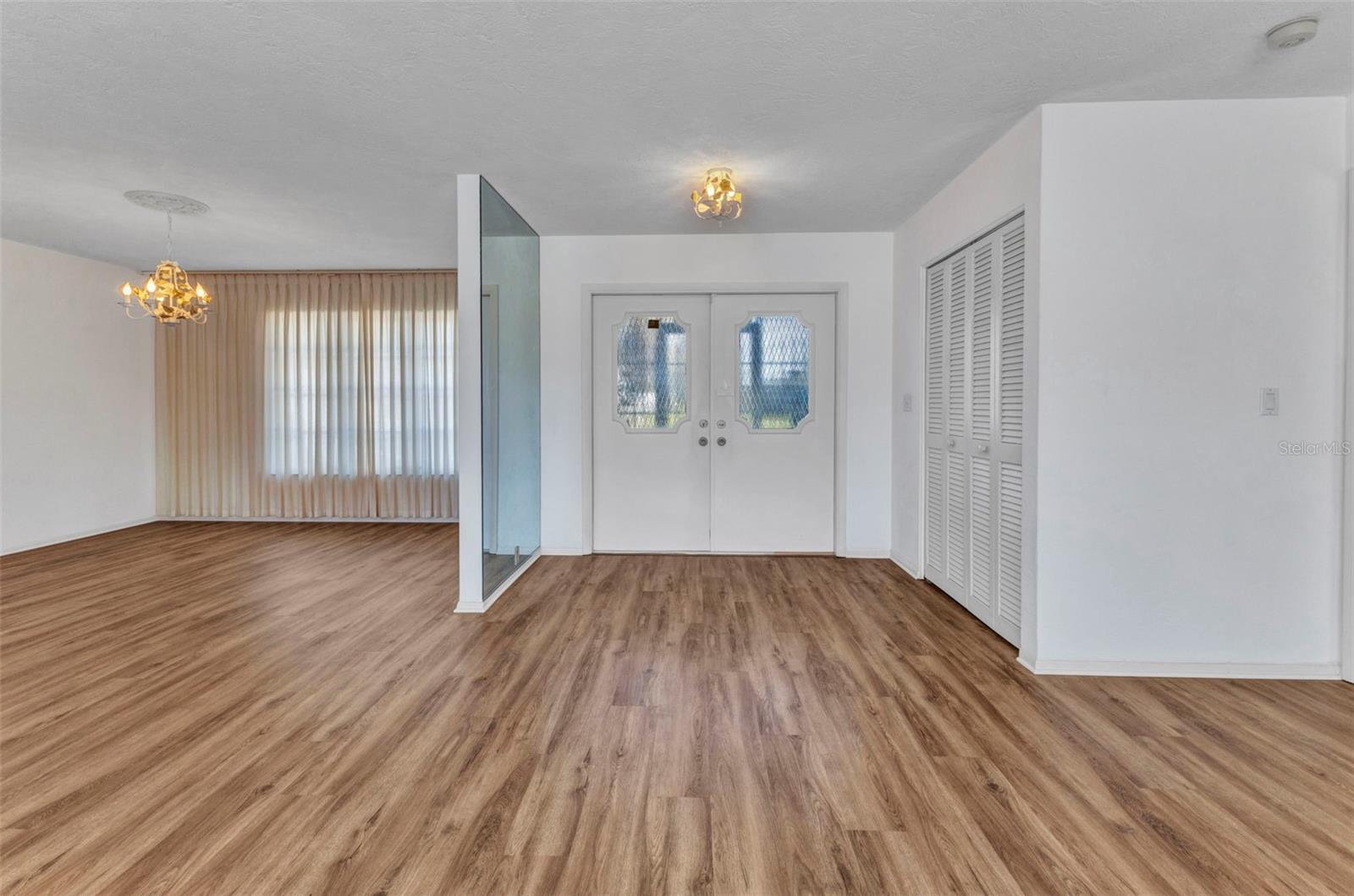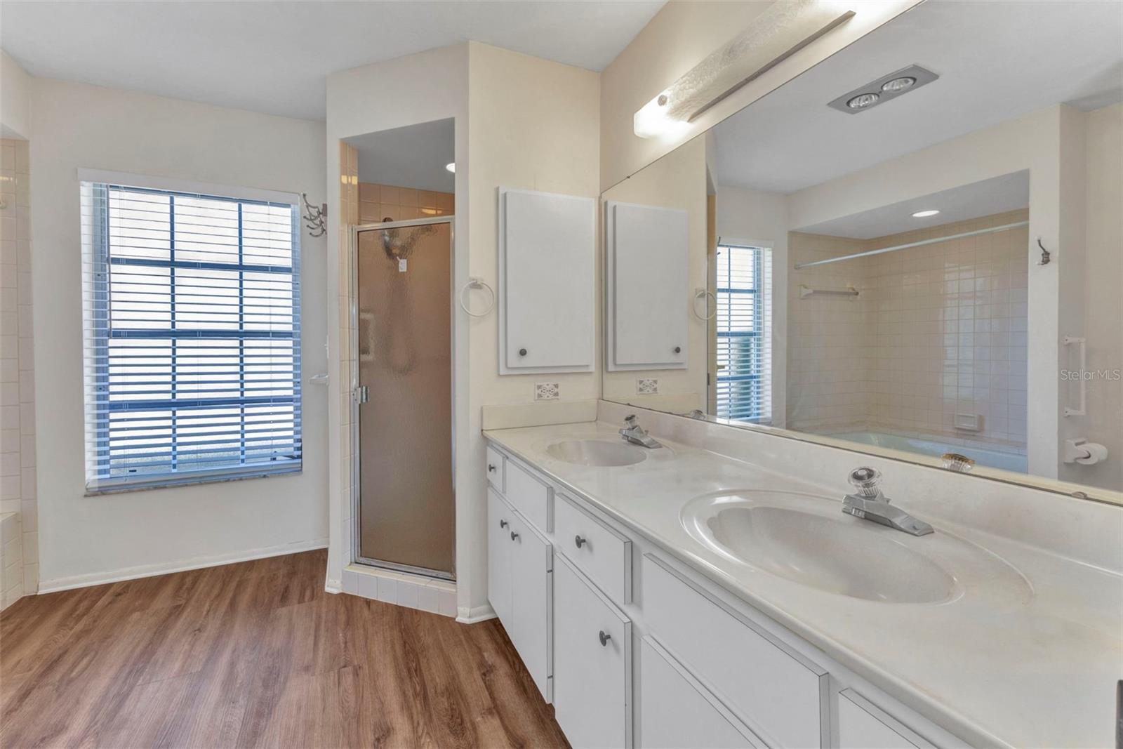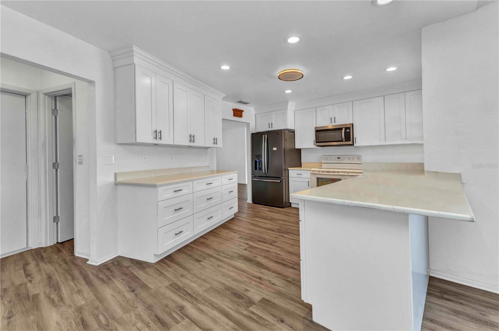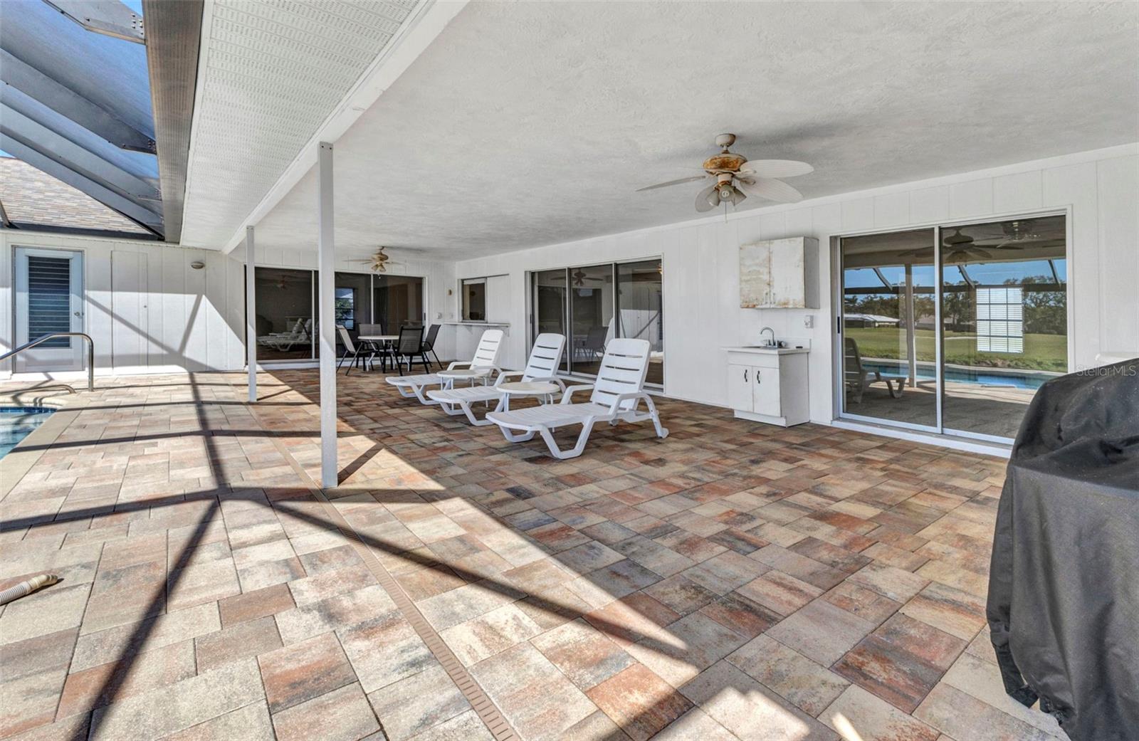 One or more photo(s) has been virtually staged. Discover the perfect blend of space, location, and breathtaking views in this beautiful Jacaranda Country Club home. You'll fall in love with the oversized, newly paved southern-facing lanai and large pool, offering serene WATER AND GOLF COURSE VIEWS--the best of both worlds. This home has been thoughtfully updated for both comfort and style. NEW PROFESSIONAL INTERIOR PAINTING was just completed to provide a bright fresh background for your decor, a new roof was installed in 2016, and a new pool cage was added in 2018. NEWER LUXURY VINYL PLANK FLOORING throughout the living, dining, kitchen and family room areas for easy maintenance and cleaning. REMODELED KITCHEN features neutral easy to clean quartz countertops, soft-close shaker style cabinetry, and a cozy breakfast nook that opens to the vaulted-ceiling family room. Designed for seamless indoor-outdoor living, the home offers multiple sliding glass doors, allowing access to the pool from nearly every room, including the living room, primary bedroom, family room, second bath, and third bedroom. Having the pool access bath is so convenient to avoid drips though the house. Additional highlights include a circle driveway for added parking space, a spacious 25' x 24' garage with pull-down attic storage, a walk-in pantry, and an extra-large laundry room. A RainBird irrigation system keeps the lawn lush and green year-round. Located in an X FLOOD ZONE so no flood insurance required with most lenders, NO CDD FEES and a low HOA of just $500 a year, this home offers the ultimate affordable Florida lifestyle. Superb location just about 5 miles from the beautiful beaches along the Gulf, the newly developing Wellen Park & the Cool Today Atlanta Braves Training Facility, Historic Downtown Venice is just 6 miles away and features a multitude of boutique shops and sidewalk cafe restaurants along with many events. Don't miss your chance to make it yours!