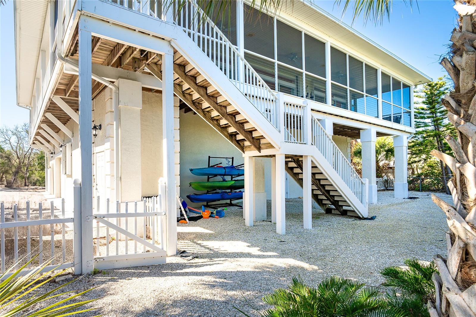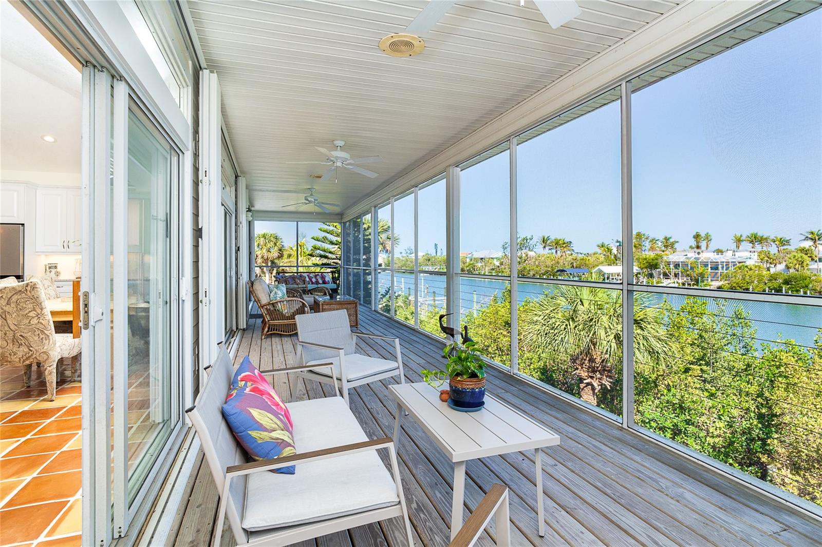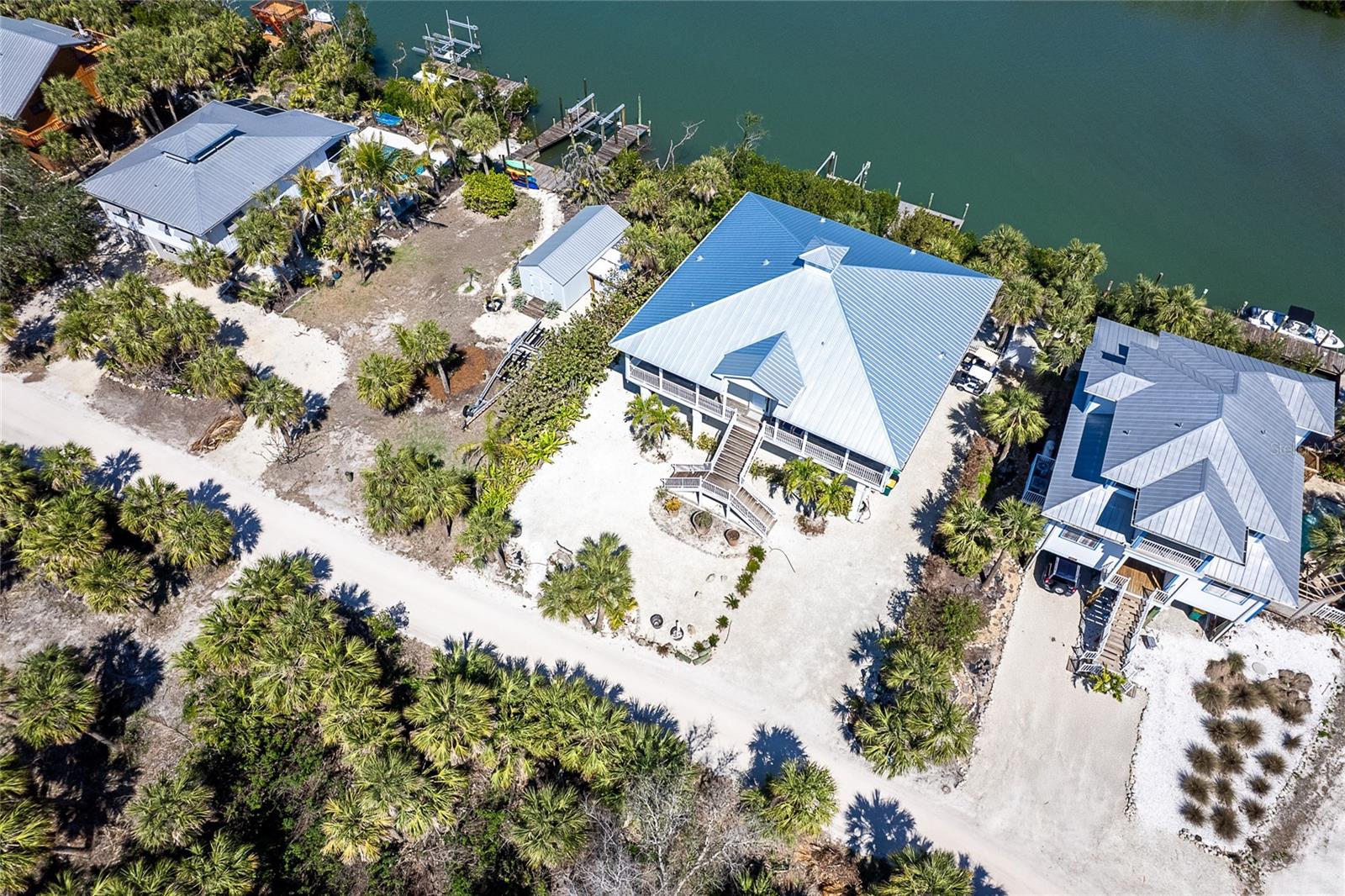 Contemporary, yet beachy 3 bedroom 2 and 1/2 bathroom home on deep water, just minutes from the Intracoastal Waterway!! This home, which is on one floor has tile throughout, quartz countertops and wood cabinets in the kitchen, elevator and open floor plan with expansive views of the Intracoastal Waterway. The primary bedroom has the same water view and boasts two walk in closets and one full wall of built in drawer space. The ensuite bathroom has both a shower and tub, with linen closet for storage. The rear deck with massive water views runs the entire length of the home. There is a front porch and wrap around decks. Being sold furnished with hurricane shutters. Dock with lift is just seconds from the ICW. The entire first floor foundation is 2000 square foot garage with tons of storage. Located on the bridgeless, barrier Don Pedro-Knight-Palm Island which is situated between St. Myers/Naples to the south and Sarasota/Tampa to the north. Accessible only via private boat or a 4 minute car passenger ferry ride. Enjoy all the pleasures of serene island life: fishing, kayaking, paddle boarding , boating, diving, watching glorious sunsets and walking the uncrowded beaches in search of shells and shark's teeth. Just a few minutes in a golf cart to the beach. Rental income available upon request. Buy your piece of island paradise today!!!!