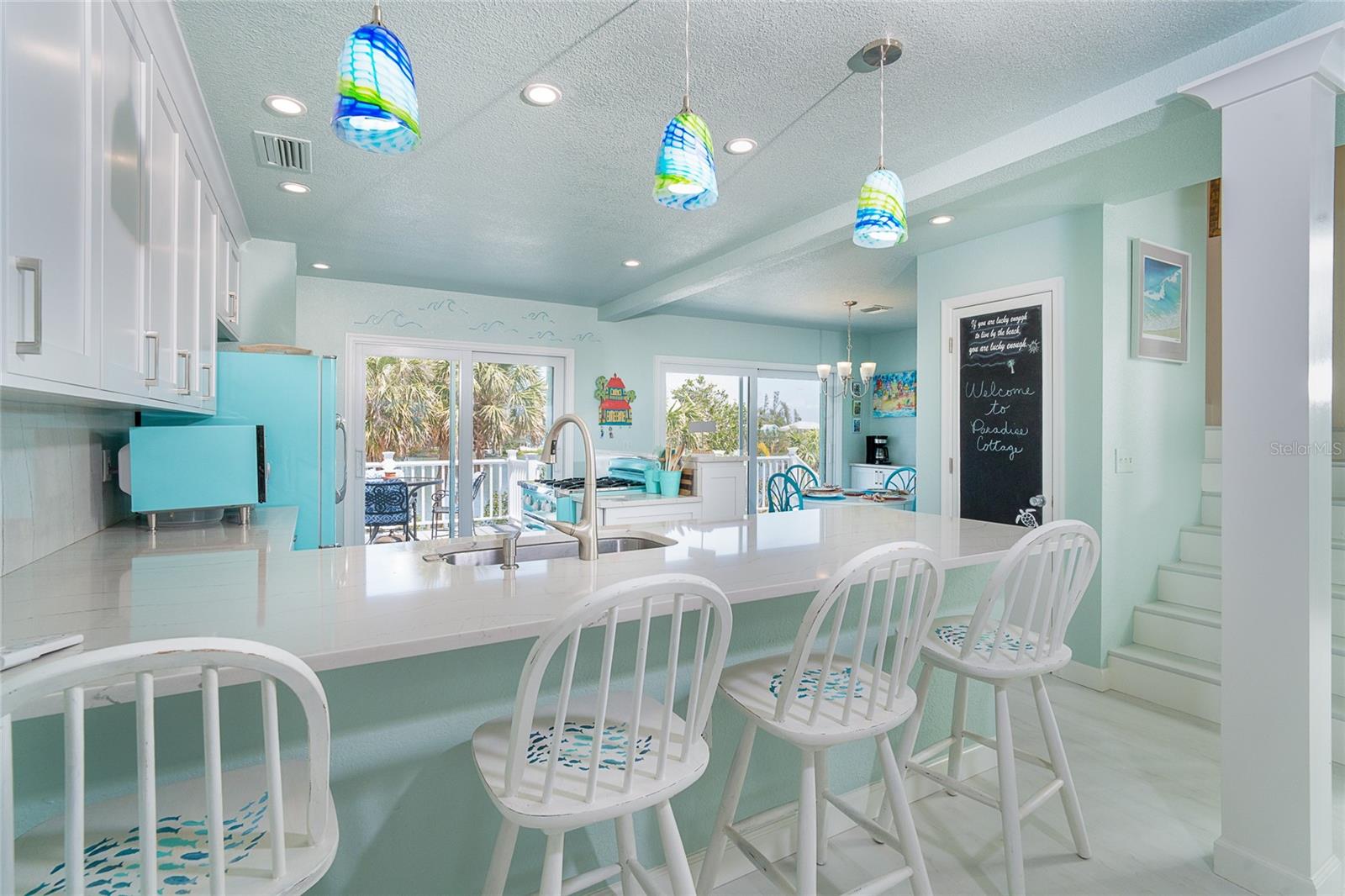 The perfect beach retreat across the sand road from the beach and the Gulf of Mexico!!! "Paradise Cottage" is aptly named for this cozy 3 bedroom, 2 bath home with many lovely appointments. Being sold turnkey furnished. Interior and exterior paint colors are green/blue hues that pull you into the serene environment of an island paradise. Kitchen has newer retro Big Chill appliances, wood cabinets and quart quartz countertops on the breakfast bar/island with space for eating in the kitchen as well. Bathrooms have decorative tile and cabinets. A complete hurricane mitigation report is available. Updates include: All CPVC piping and water heater replaced, preventative treatment of entire structure for termites (15 year warranty),new roof and foam insulations, 150 additional hurricane clips added to structure, Wind mitigation inspection inspection, all drywall replaced, windows and doors replaced with impact resistant glass and turtle glass, CertainTeed GlasRoc Sheathing installed under house, new kitchen cabinets, gutters, rear and front staircases and deck rebuilt with TREX, Staircase and deck and under house decking redone, exterior paint, electrical service panel, under house storage rebuilt with hardie, and septic pumped out and inspected. So it will be almost be like moving into a new home!! Don Pedro-Knight-Palm Island is a bridgeless, barrier island situated between Sarasota/Tampa to the north and Ft. Myers/Naples to the south. Accessible only via boat or a 4 minute car passenger ferry ride. Buy your "Paradise Cottage" today!!!!