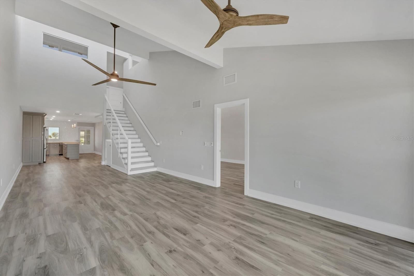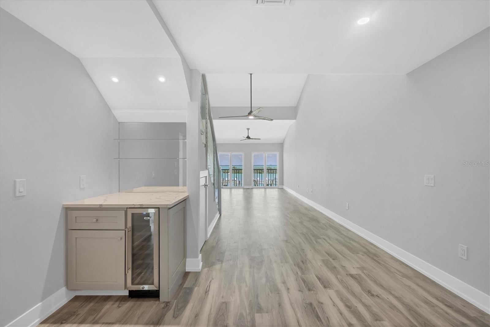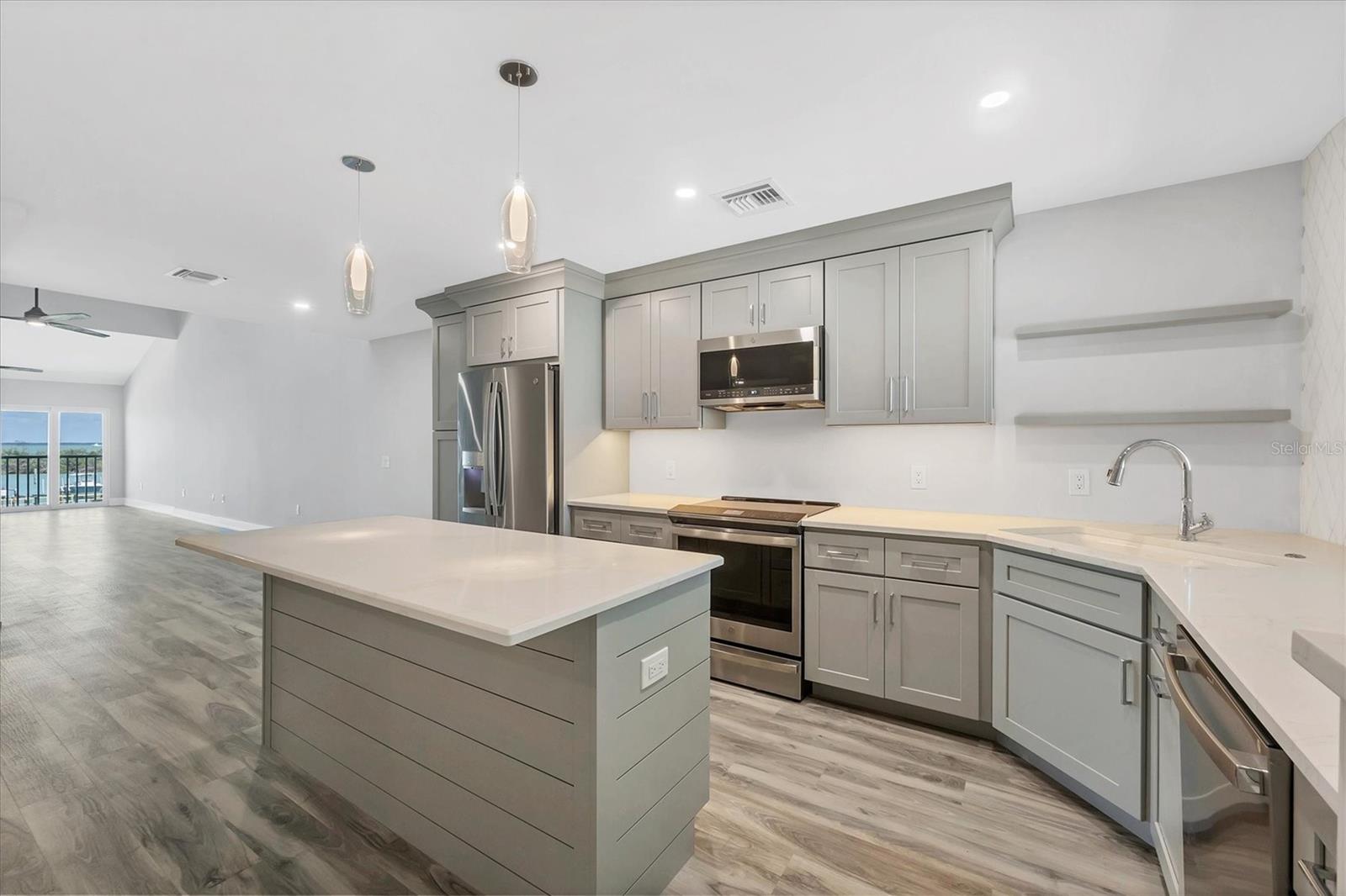 One or more photo(s) has been virtually staged. Rarely available 3 bedroom, 3 bath, plus den/office condo at Boca Grande North! Experience breathtaking Bay-to-Gulf views from this second-floor location which offers a front private lanai, an open-concept kitchen, and 2 bedrooms and 2 bathrooms on the first living level. Unlike other properties, this unit has volume ceilings in the living area and a BONUS SECOND FLOOR with a bedroom, bath and den/office! Completely renovated including a new roof, all impact windows and sliders and luxurious vinyl flooring throughout. Equipped with GE Profile stainless steel appliances, quartz countertops in kitchen and baths, Whirlpool washer/dryer, and elegant finishes including a separate bar area with wine refrigerator. Enjoy both stunning sunrises over Charlotte Harbor from your east-facing balcony and spectacular Gulf sunsets from the west-facing lanai. Boca Grande North provides a secure gated community with a heated pool and spa, on site beach area with a seawall and optional boat docks for lease or purchase. Don't miss this exceptional chance to own a unique residence in this highly sought-after community.
