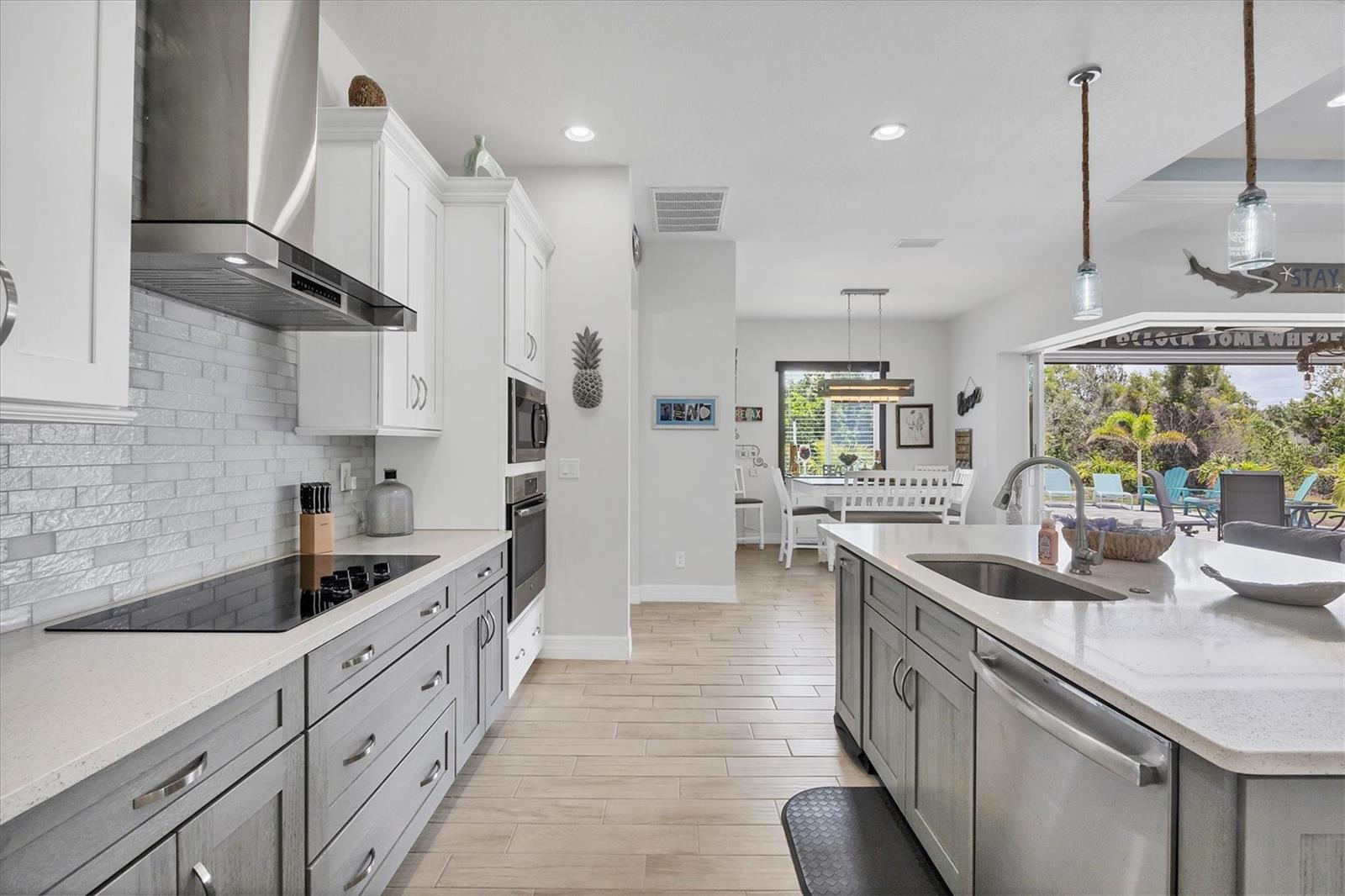 - Appliances: Built-In Oven, Cooktop, Dishwasher, Disposal, Dryer, Electric Water Heater, Ice Maker, Microwave, Refrigerator, Washer