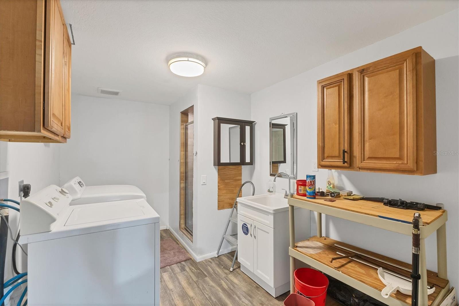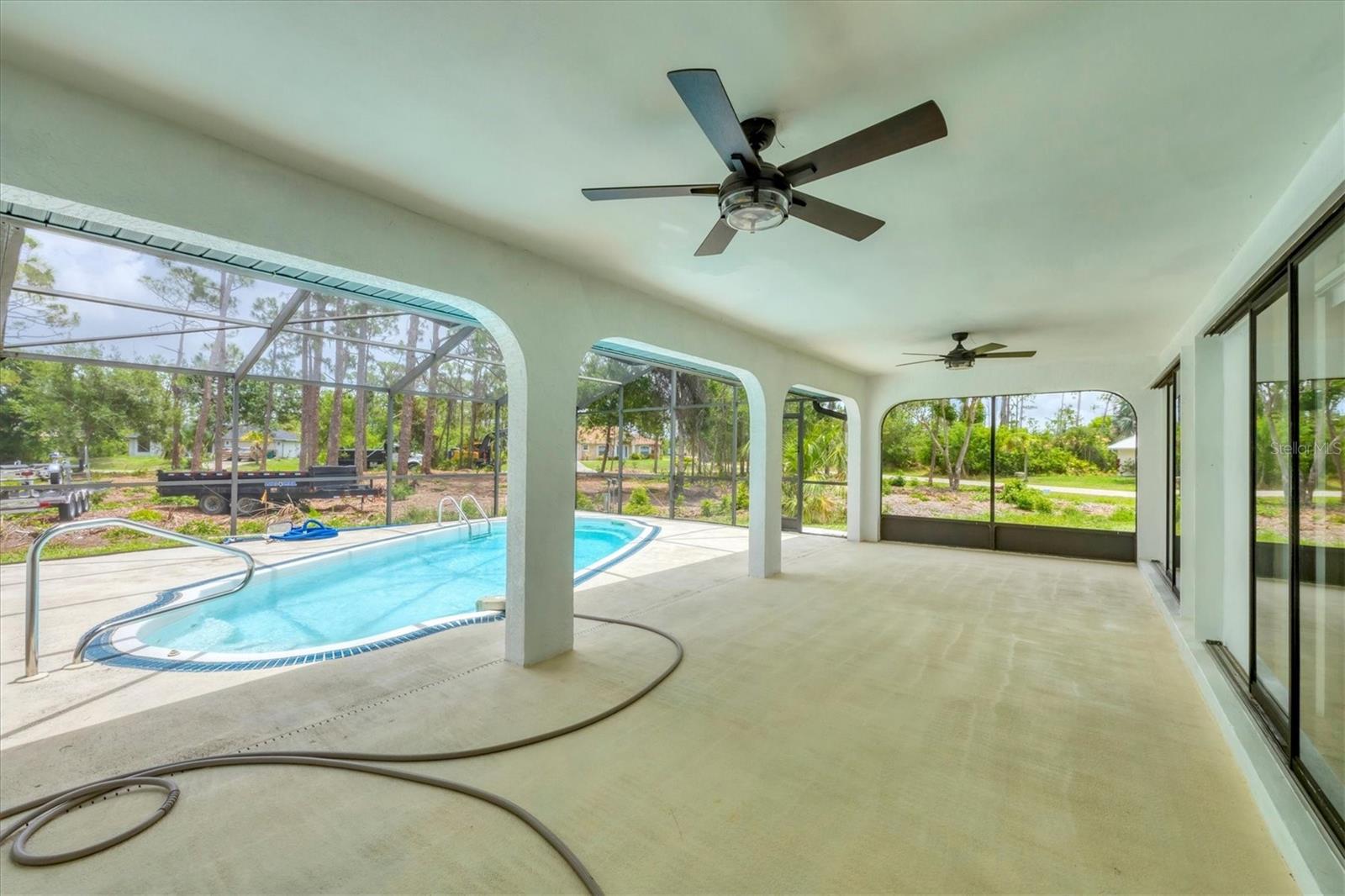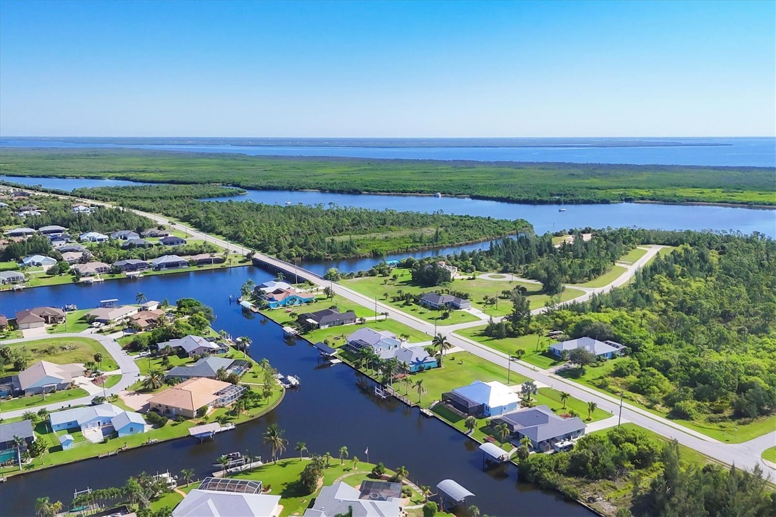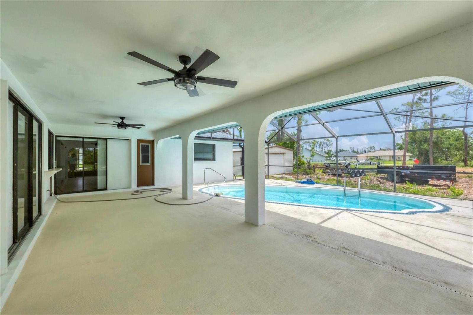 3 LOTS! Spacious 3 Bedroom Pool Home with Detached 3-Car Garage/Workshop with Guest SuiteRare opportunity in Gulf Cove! This beautifully maintained 3 bedroom, 2 bath pool home sits on 3 lots with a 2,496 sq ft insulated, air-conditioned garage/workshop, offering a total of 5 covered parking spaces. Plenty of room for all of your toys or work equipment. The home features cathedral ceilings in the living and family rooms, creating a bright and open layout. Sliding glass doors in the dining room, family room, and master suite open to the covered lanai and saltwater pool--ideal for Florida living. The second bathroom opens to the pool area giving easy access. The kitchen includes a pass-through window to the lanai, great for entertaining, plus a pantry/closet for extra storage. All bedrooms include walk-in closets and new carpeting. The bedrooms are ample size for a family or friends down an extended stay. The detached 3-car garage/man cave is built on a concrete slab, includes three roll-up doors that are 10x8, 10x12, 10x8 with one being electric. The interior is fully insulated with a 5-ton A/C unit. At the rear is a private efficiency apartment, 2-ton A/C unit, full kitchenette (microwave, dishwasher, refrigerator) and small seating area. It also has it own bathroom with a walk in closet plus a washer & dryer.Located in the waterfront community of Gulf Cove on the Myakka River. Optional HOA provides access to private community boat ramp and park for a nominal annual fee. Conveniently located between Port Charlotte and Englewood, close to shopping, dining, beaches, golf, and more. Secure Your Piece of Paradise Today.