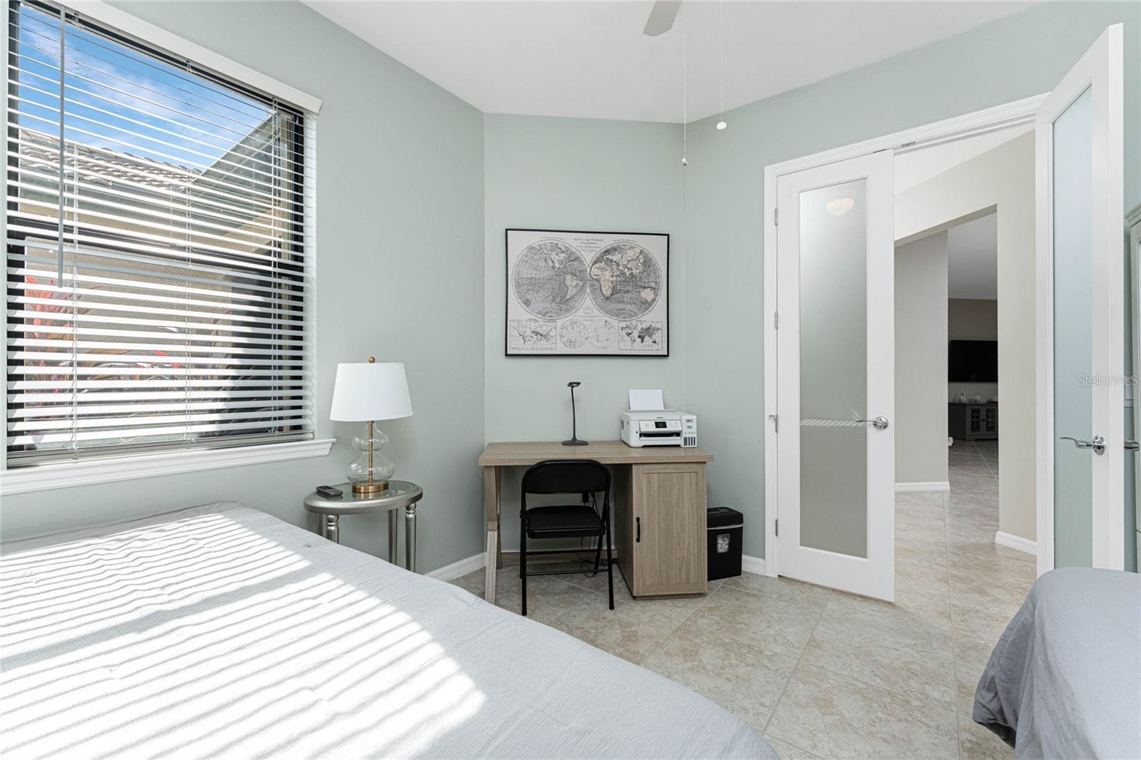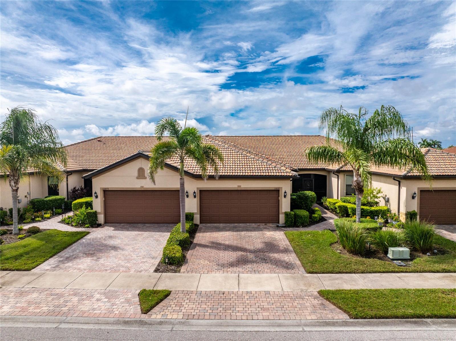 Welcome to this immaculately maintained Seagrove model with a beautiful LAKE VIEW, featuring 2 bedrooms, 2 baths, + den/office/guest room, and an attached 2-car garage! This maintenance-free villa, nestled within the gated community of ISLANDWALK, offers a unique chance to enjoy paradise in one of WELLEN PARK'S most desirable locations, with low HOA fees covering lawn care, cable, internet, resort-style amenities, 24-hour security, and situated in an X flood zone for peace of mind (no flood insurance required). As you enter through the screened front porch, you will find neutral tile flooring throughout and an open-concept layout perfect for both entertaining and everyday living. The split-bedroom design allows privacy for you and your guests, while the versatile den offers frosted glass double doors, providing privacy to use as a third guest room, home office, or quiet retreat. The primary suite enjoys peaceful lake views from two sunlit windows and includes a spacious walk-in closet and an en-suite bath with dual sinks, granite counters, and a walk-in tiled shower. The heart of the home features a spacious kitchen with crisp white cabinetry, sleek granite countertops, and a stylish subway-tile backsplash. A one-level peninsula with bar seating creates the perfect space for entertaining or casual dining. This kitchen also includes a custom built-in dry bar with additional cabinetry -- a tailored upgrade that maximizes space and function, adds counter space, and transforms an otherwise empty wall into a functional storage and serving area. Upgrades include a black stainless appliance package (French door refrigerator, smooth-top range, built-in microwave, and dishwasher), complemented by abundant cabinet storage and recessed lighting. The adjoining living and dining areas flow together, creating the perfect setting for gatherings or simply enjoying the peaceful setting. Step outside to your private lanai and take in tranquil water views -- the perfect spot for morning coffee or evening sunsets. Additional highlights include an epoxy-finished garage floor, ceiling storage racks, a garage ceiling fan, and WHOLE HOUSE ACCORDION HURRICANE SHUTTERS for peace of mind. IslandWalk is one of Venice's most sought-after communities, offering miles of golf cart, walking, and biking trails over Venetian-style bridges. Residents enjoy an active lifestyle with amenities including a 24-hour staffed gate, full-time lifestyle director, event center, 2 CLUBHOUSES, 2 HEATED RESORT POOLS, a HEATED LAP POOL, 2 hot tubs, 2 FITNESS CENTERS, 12 PICKLEBALL courts, HAR TRU TENNIS courts, DOG PARK, playground, basketball, bocce, an outdoor pavilion with BBQ grills and fire pit, a library, and full-time HOA staff seven days a week. From the resident-only side entrance, you can access Downtown Wellen Park by car, golf cart, bike, or on foot. Nearby are the Atlanta Braves Stadium and the vibrant new downtown district, featuring an 80-acre lake with walking trails, shops, coffee spots, restaurants, a splash pad, fishing areas, kayak rentals, and a public town hall and park hosting concerts and a Farmers Market. The adjoining Marketplace offers Publix, restaurants, shops, banks, professional offices, a gas station, and a brand-new Costco minutes away. The community's prime location places you just 4 miles from I-75, with pristine Gulf beaches, airports, Historic Venice Island, and year-round cultural events all within easy reach. Call today for your private showing!