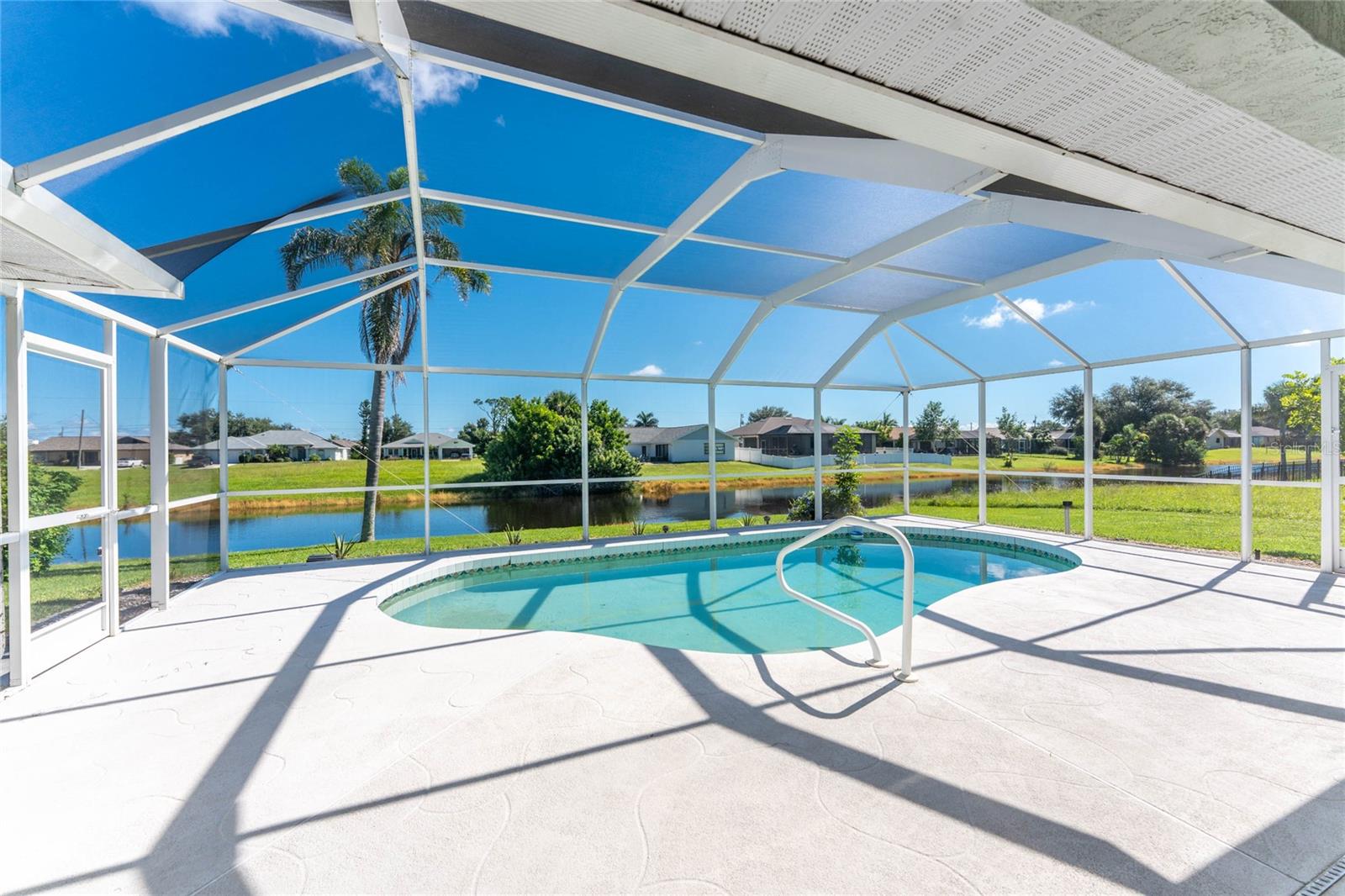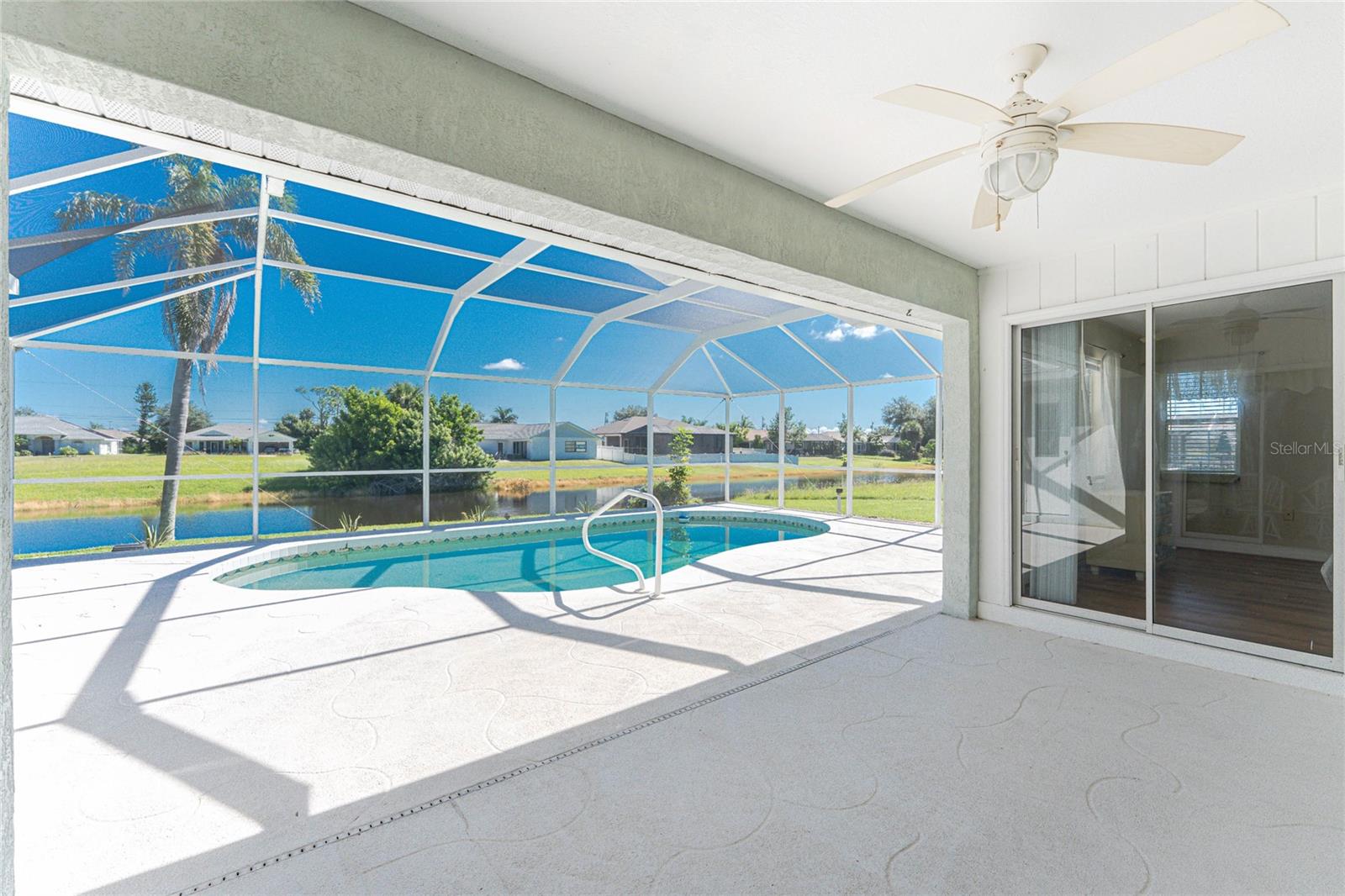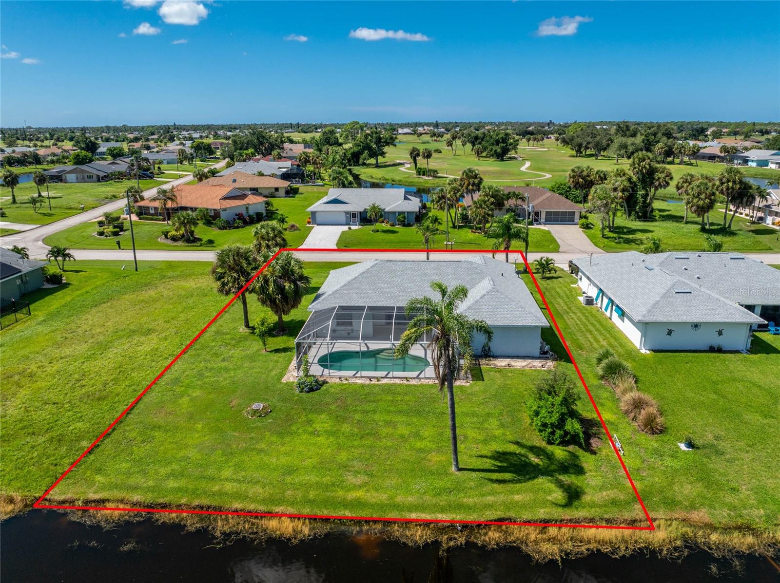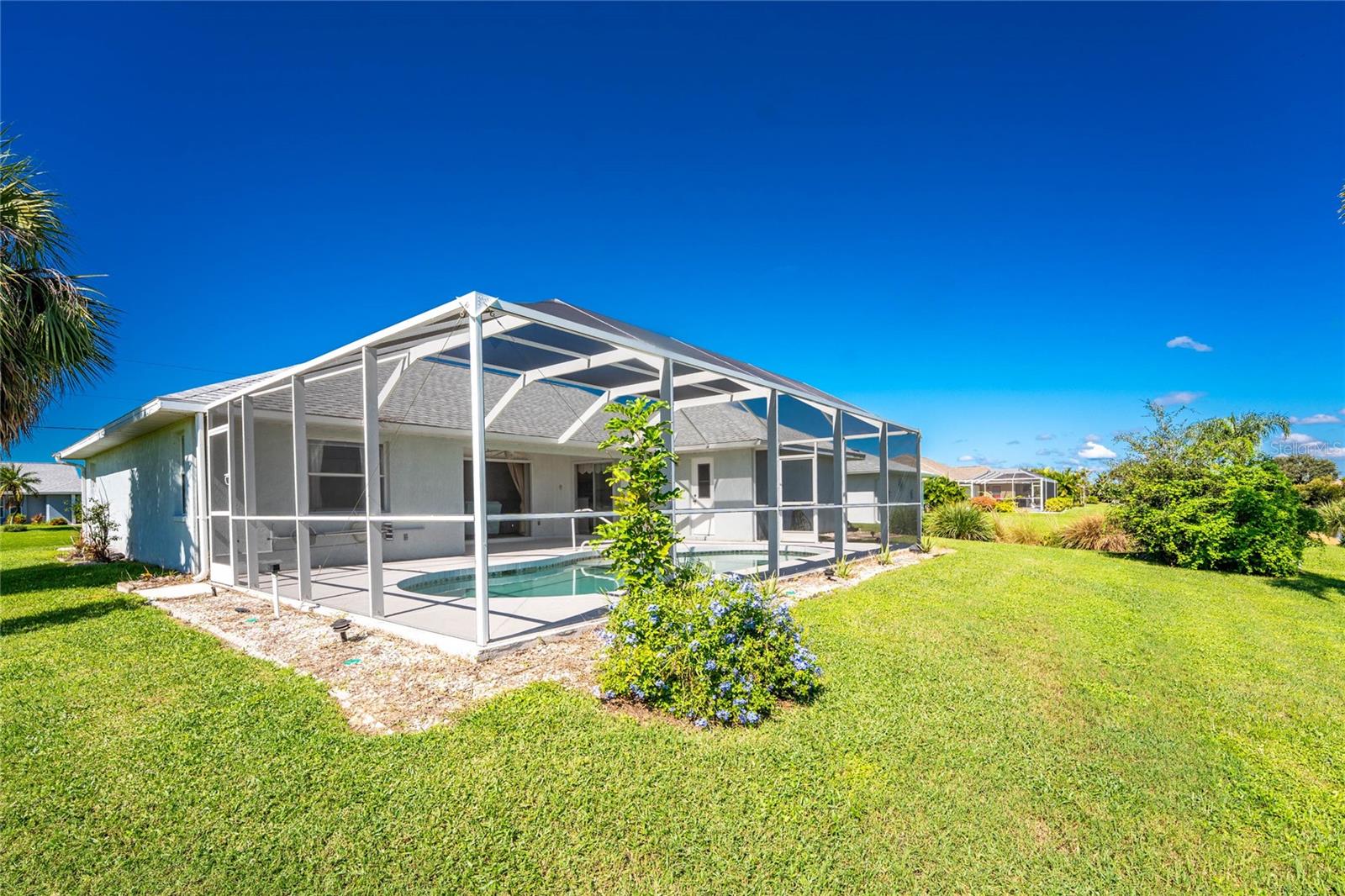 What a great price for this three bedroom/2 bath/2 car garage POOL HOME on a freshwater canal, in Rotonda West Pebble Beach!This home is light and bright, with a very open floor plan. The living area features tiled flooring, a cathedral ceiling and ceiling fan and a plant shelf, plus sliding glass doors opening onto the lanai. The dining area also has tiled flooring and some chair rail for an added decorative touch! Galley style kitchen has plenty of cabinetry and countertop space, and stainless appliances including: Frigidaire French door refrigerator and dishwasher, Whirlpool smooth top stove, and GE built in microwave. Enjoy morning coffee at the breakfast bar or have your cereal in the dinette area, where there's another set of sliding glass doors to the lanai. The Primary bedroom has both a walk in plus a wall closet, ceiling fan and another set of sliding glass doors to the lanai. The primary bath features tiled flooring, a double basin vanity, Roman shower and linen closet. Guest bedrooms #2 and 3 both have carpeted flooring, ceiling fans and wall closets, and the Guest Bath has a combo tub/shower and door to the pool area! Inside laundry has a full size washer and dryer, utility tub, and overhead cabinetry. The two car garage has an automatic garage door opener and pull down stairs for easy attic access. The lanai is the perfect place to either begin or end your day, overlooking the shimmering pool and the freshwater canal. Just picture yourself floating around the pool, or maybe doing some water aerobics! The pool enclosure was replaced in 2023, Roof was new in 2023, and the AC was replaced in 2018. Rotonda West is a deed restricted golf course community, with low annual dues (only $190) clubhouse, park, playground, central water/sewer, and lots of friendly people! You are within minutes to several area beaches, and shopping, restaurants of all kinds, and world class fishing! Better not think too long about this one!