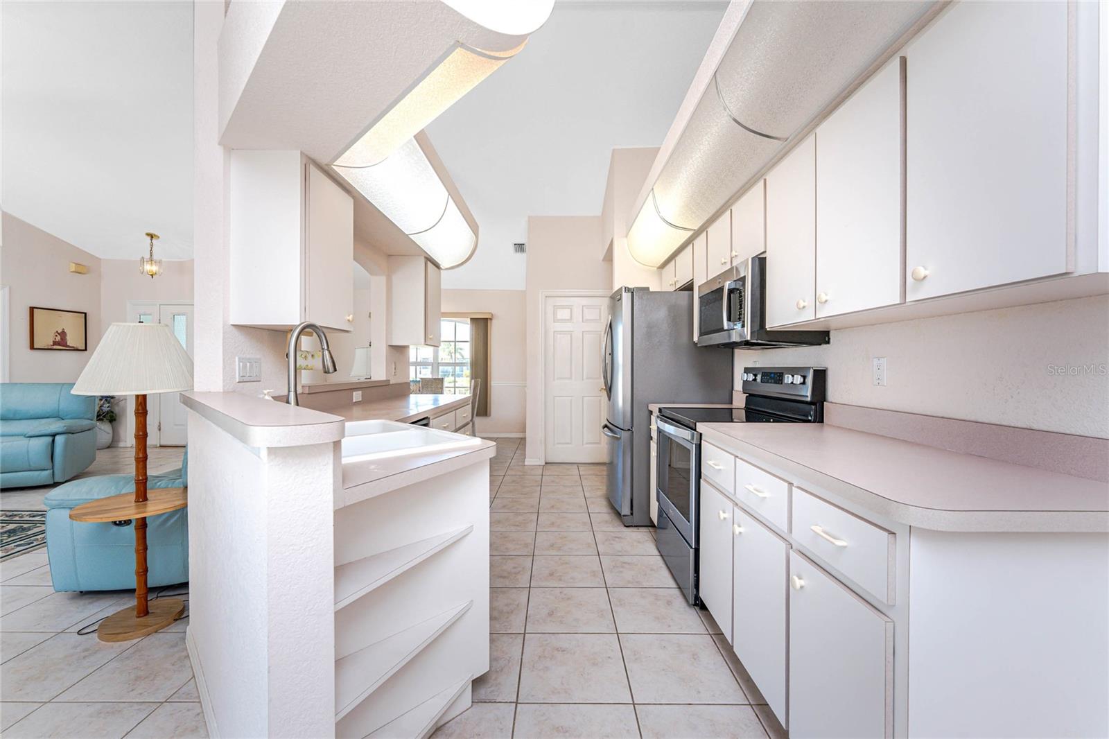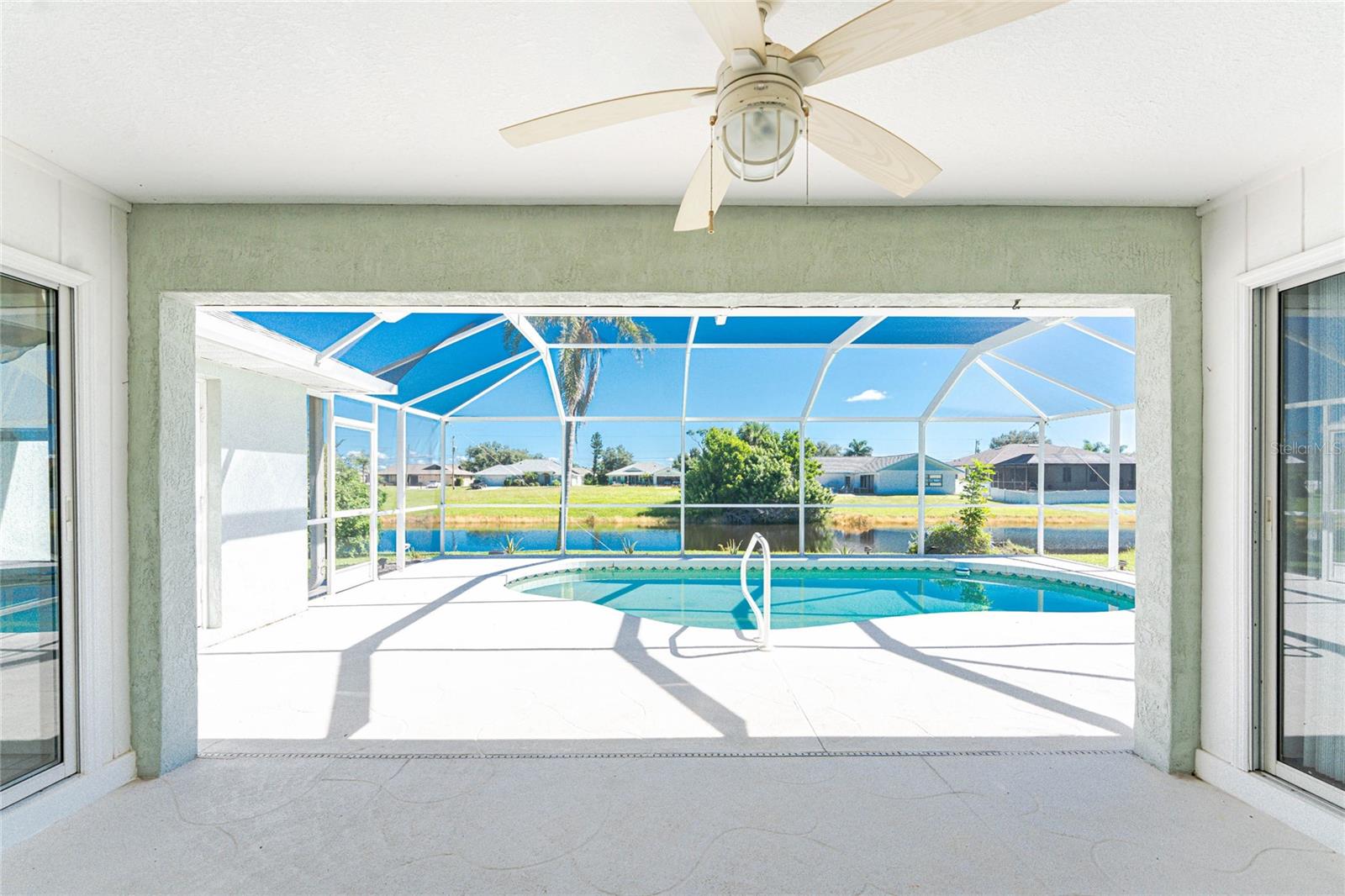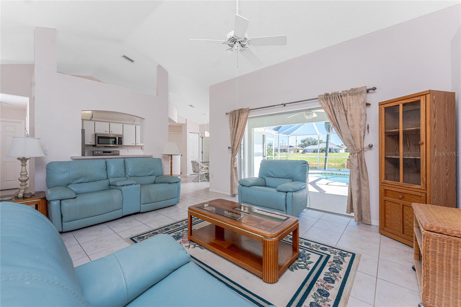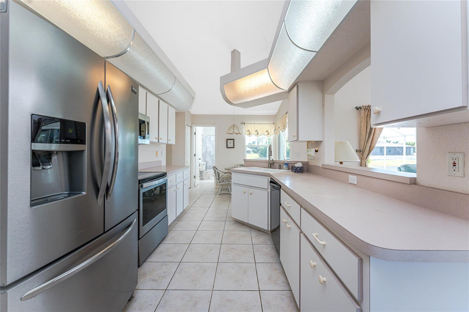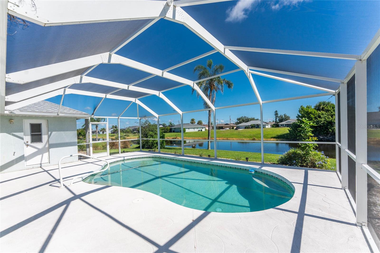 What a great price for this three bedroom/2 bath/2 car garage POOL HOME on a freshwater canal, in Rotonda West Pebble Beach!This home is light and bright, with a very open floor plan. The living area features tiled flooring, a cathedral ceiling and ceiling fan and a plant shelf, plus sliding glass doors opening onto the lanai. The dining area also has tiled flooring and some chair rail for an added decorative touch! Galley style kitchen has plenty of cabinetry and countertop space, and stainless appliances including: Frigidaire French door refrigerator and dishwasher, Whirlpool smooth top stove, and GE built in microwave. Enjoy morning coffee at the breakfast bar or have your cereal in the dinette area, where there's another set of sliding glass doors to the lanai. The Primary bedroom has both a walk in plus a wall closet, ceiling fan and another set of sliding glass doors to the lanai. The primary bath features tiled flooring, a double basin vanity, Roman shower and linen closet. Guest bedrooms #2 and 3 both have carpeted flooring, ceiling fans and wall closets, and the Guest Bath has a combo tub/shower and door to the pool area! Inside laundry has a full size washer and dryer, utility tub, and overhead cabinetry. The two car garage has an automatic garage door opener and pull down stairs for easy attic access. The lanai is the perfect place to either begin or end your day, overlooking the shimmering pool and the freshwater canal. Just picture yourself floating around the pool, or maybe doing some water aerobics! The pool enclosure was replaced in 2023, Roof was new in 2023, and the AC was replaced in 2018. Rotonda West is a deed restricted golf course community, with low annual dues (only $190) clubhouse, park, playground, central water/sewer, and lots of friendly people! You are within minutes to several area beaches, and shopping, restaurants of all kinds, and world class fishing! Better not think too long about this one!