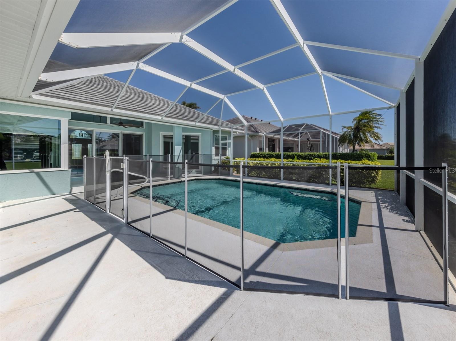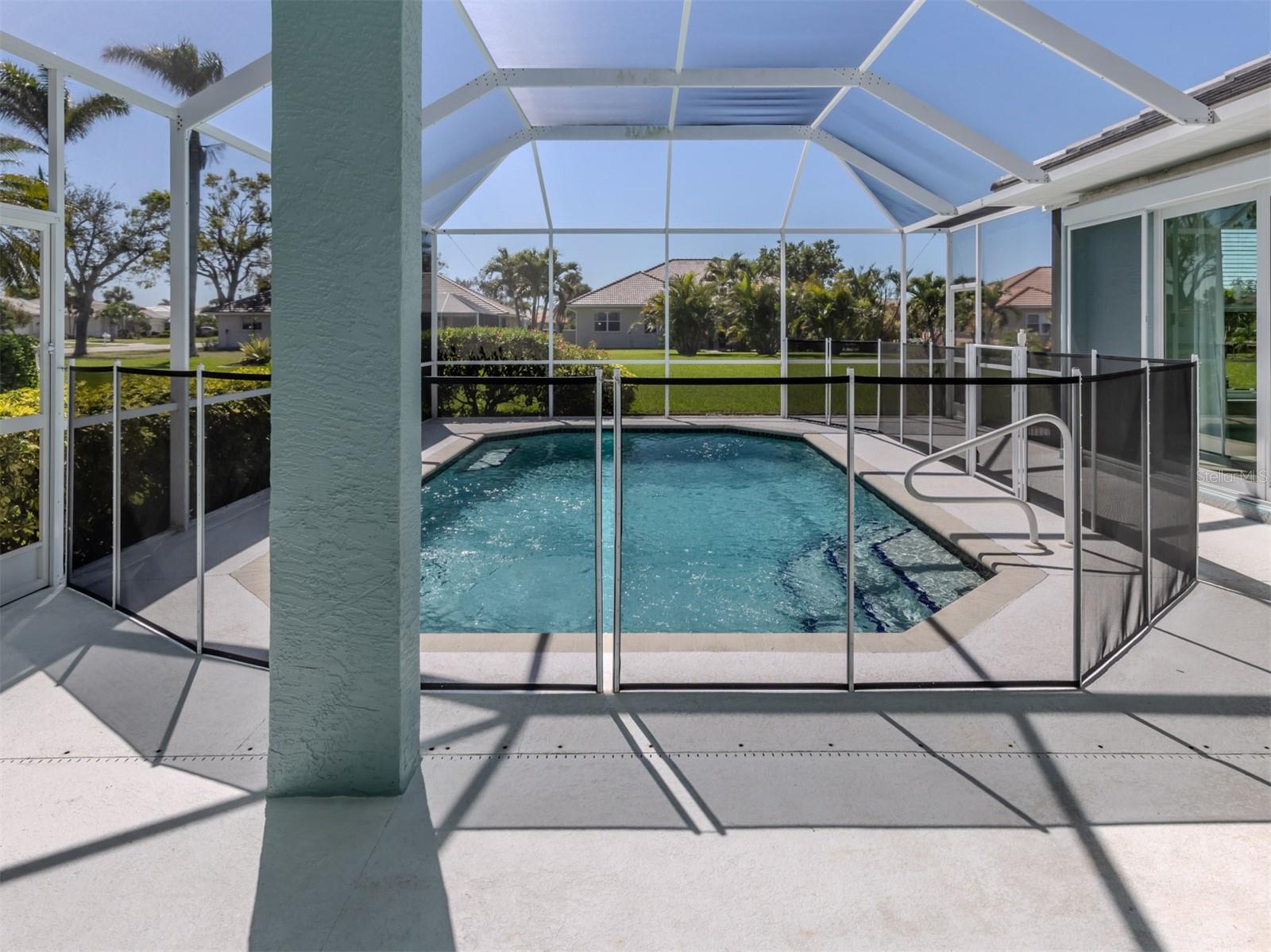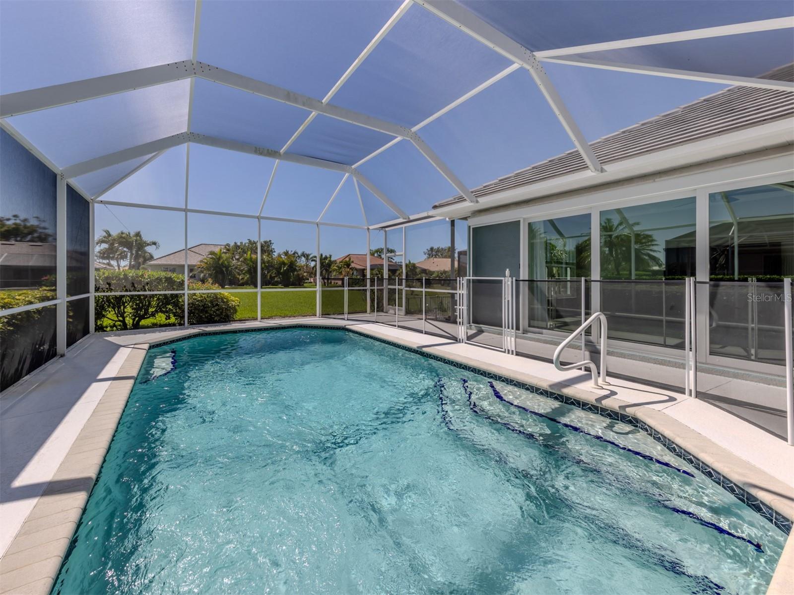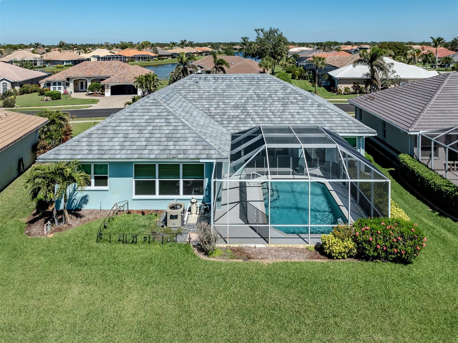Are you Looking for an extraordinary Custom-Built Saltwater POOL Home by J&J Custom Builders in the highly sought-out community of The Lakes of Jacaranda, well, you have arrived! Upon entering through the frosted double glass entry doors, you'll be drawn into this spacious combination formal living and dining room with sliding doors that overlook the pool and lanai with peaceful view. As you continue to the kitchen with New Stainless appliances in 2023, Corian Countertops you will find the perfect spot to enjoy your morning coffee in the breakfast nook. In the family room you will appreciate the sliding glass wall that completely opens to your perfect outdoor entertainment area. This casual elegance is The Florida lifestyle you've been dreaming of! This 3 BEDROOM, 2 BATH offers room to spread out. The primary bedroom with en-suite offers privacy and your own entrance to the lanai through another set of sliding glass doors. A few of the UPDATES INCLUDE, NEW CAT 5 HURRICANE RATED TILE ROOF and Gutters installed 7/2023, HURRICANE IMPACT WINDOWS AND DOORS 2024, NEW Water Heater 2024. New Luxury Vinyl Flooring 2023. The exterior and Interior of the home were painted 2023. HOT WATER HEATER 2024 and so much more upgrades to mention!! See Highlight Sheet on MLS and in home.There is also a private well that services the lawn irrigation and for other watering needs. The Lakes of Jacaranda is centrally located and is recognized as one of the most desirable communities in Venice, FL. Amenities include a clubhouse, tennis/pickle ball and a community pool. LOW HOA $900./ YEAR and NO CDD. There are walking and biking trails throughout. Lakes of Jacaranda is near several public beaches where you can swim, sun bath, collect shell, bird watching or catch the dolphins putting on a show. Venice offers plenty of shopping areas and restaurants. Cool Today Park is home for Spring Training to Atlanta Braves and adjacent to the new Wellen Park. It also offers restaurants, shopping and encourages nightlife under the stars. The ISLAND OF VENICE is well known for its quaint shops, restaurants (and many have live music) and parks. There is a public library, The Venice Performing Art Center, the Venice Art Center, the Community Center and so much more. So, what are you waiting for...Come see this home as it won't last long at this PRICE!!