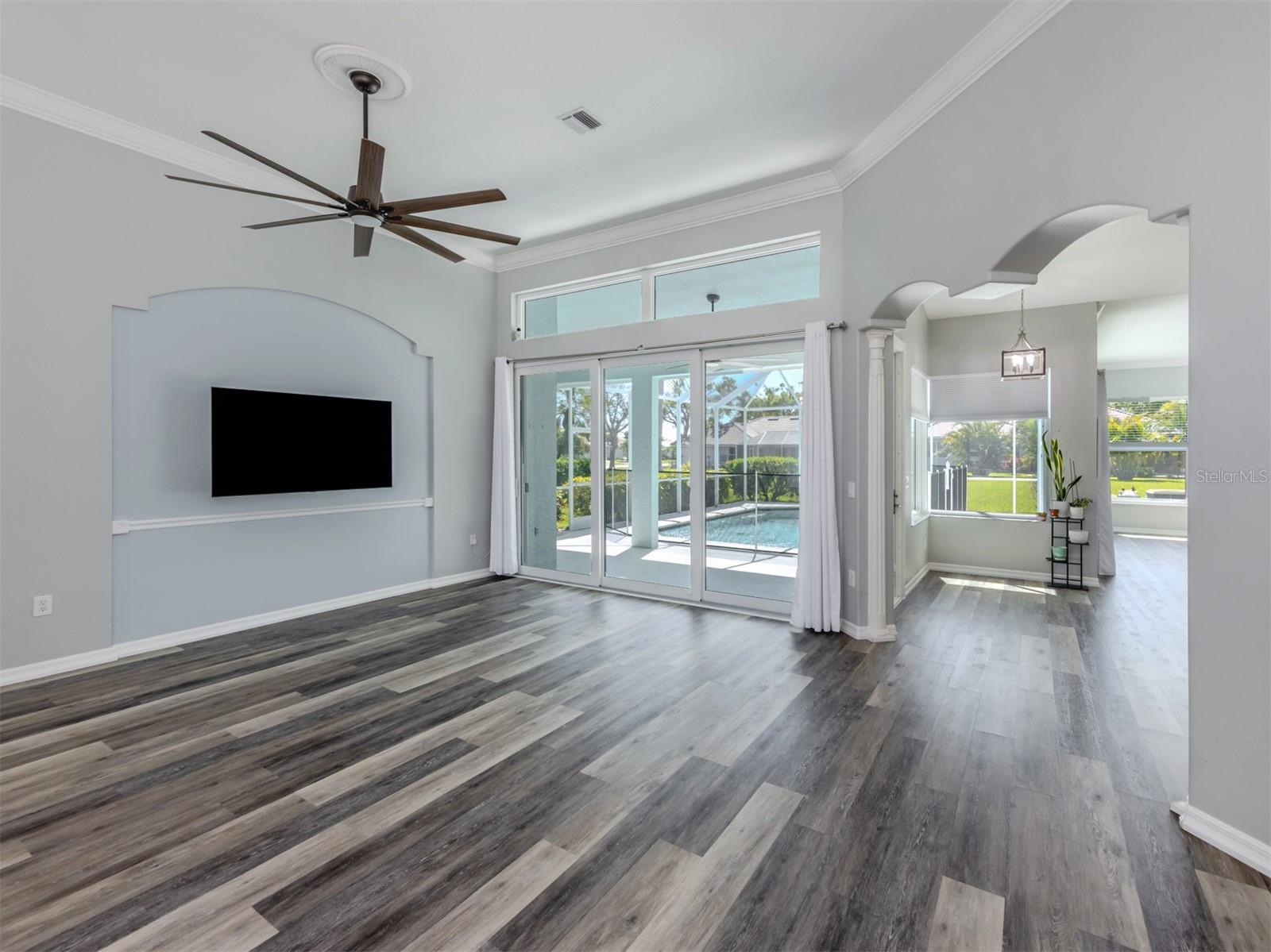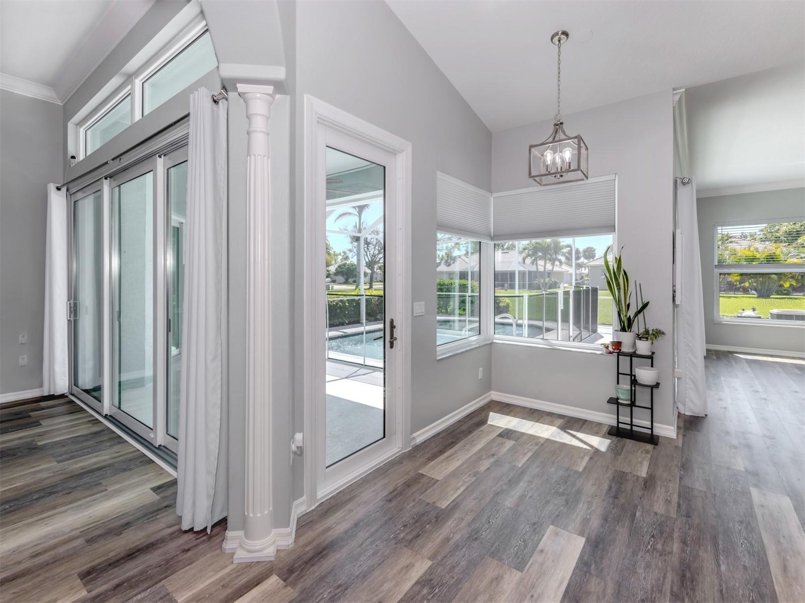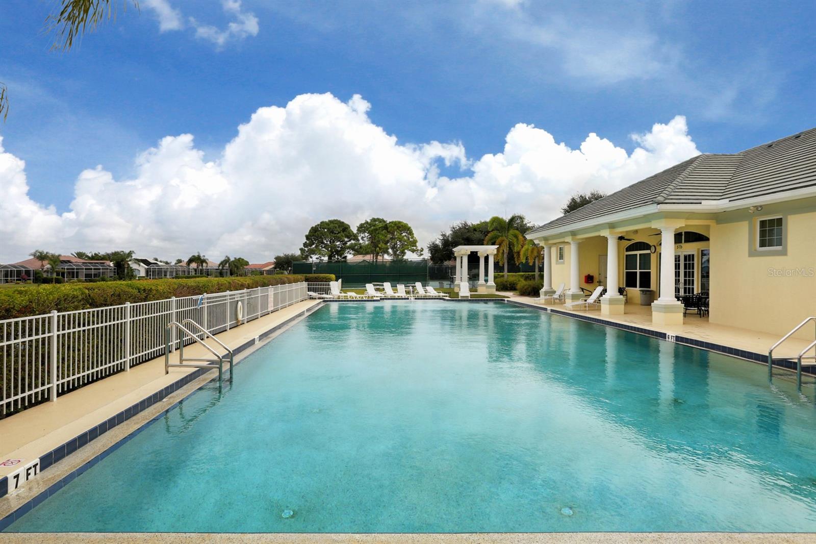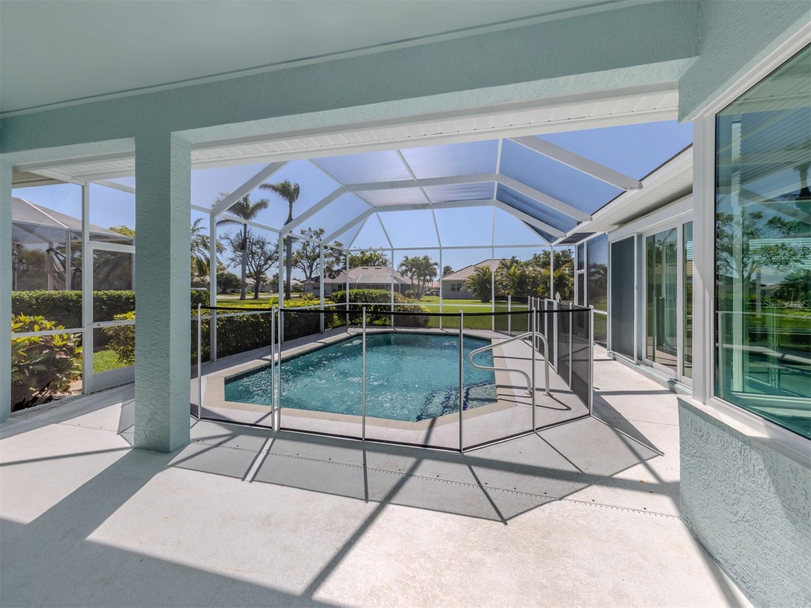 Are you Looking for an extraordinary Custom-Built Saltwater POOL Home by J&J Custom Builders in the highly sought-out community of The Lakes of Jacaranda, well, you have arrived! Upon entering through the frosted double glass entry doors, you'll be drawn into this spacious combination formal living and dining room with sliding doors that overlook the pool and lanai with peaceful view. As you continue to the kitchen with New Stainless appliances in 2023, Corian Countertops you will find the perfect spot to enjoy your morning coffee in the breakfast nook. In the family room you will appreciate the sliding glass wall that completely opens to your perfect outdoor entertainment area. This casual elegance is The Florida lifestyle you've been dreaming of! This 3 BEDROOM, 2 BATH offers room to spread out. The primary bedroom with en-suite offers privacy and your own entrance to the lanai through another set of sliding glass doors. A few of the UPDATES INCLUDE, NEW CAT 5 HURRICANE RATED TILE ROOF and Gutters installed 7/2023, HURRICANE IMPACT WINDOWS AND DOORS 2024, NEW Water Heater 2024. New Luxury Vinyl Flooring 2023. The exterior and Interior of the home were painted 2023. HOT WATER HEATER 2024 and so much more upgrades to mention!! See Highlight Sheet on MLS and in home.There is also a private well that services the lawn irrigation and for other watering needs. The Lakes of Jacaranda is centrally located and is recognized as one of the most desirable communities in Venice, FL. Amenities include a clubhouse, tennis/pickle ball and a community pool. LOW HOA $900./ YEAR and NO CDD. There are walking and biking trails throughout. Lakes of Jacaranda is near several public beaches where you can swim, sun bath, collect shell, bird watching or catch the dolphins putting on a show. Venice offers plenty of shopping areas and restaurants. Cool Today Park is home for Spring Training to Atlanta Braves and adjacent to the new Wellen Park. It also offers restaurants, shopping and encourages nightlife under the stars. The ISLAND OF VENICE is well known for its quaint shops, restaurants (and many have live music) and parks. There is a public library, The Venice Performing Art Center, the Venice Art Center, the Community Center and so much more. So, what are you waiting for...Come see this home as it won't last long at this PRICE!!