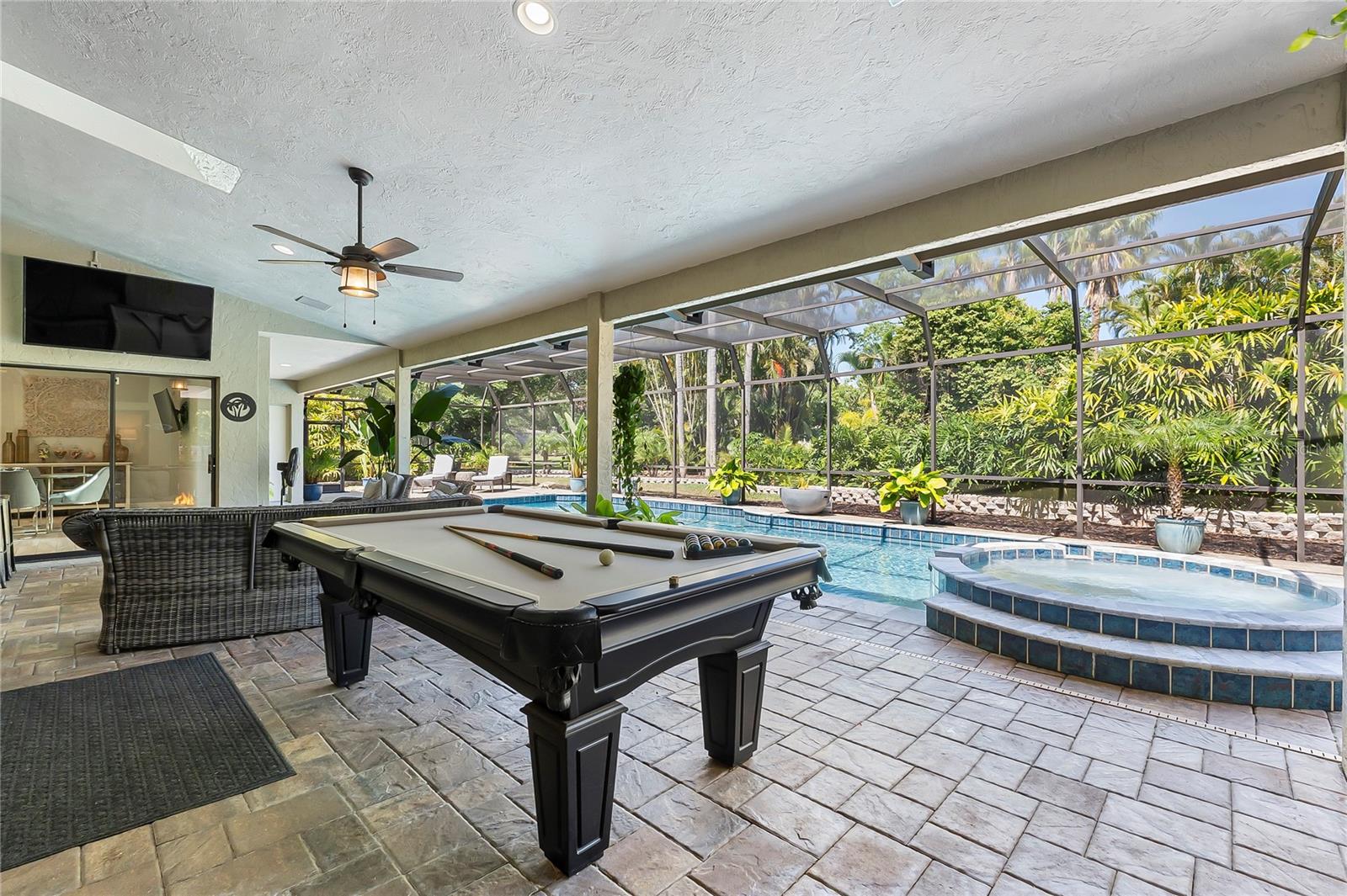Nestled in the heart of Sarasota, Florida, and a short jaunt away from the world famous Siesta Key, this estate presents a rare opportunity to own a meticulously maintained property that seamlessly blends indoor elegance with outdoor paradise. This 4300 square-foot home is situated on a sprawling + 1/2 acre lot offers a serene escape while remaining close to world class amenities.The crown jewel of this property is its enormous pavered lanai and pool area. Mature landscaping frames the pool area, creating a private, resort-like atmosphere. Designed for year-round enjoyment, the heated sparkling pool and spa is completely enclosed & yet ensconced within the natural tropical landscaping of its surroundings. On any typical Florida day you will have opportunities to admire wild heron, rabbits, deer, and other stunning wildlife while sipping morning coffee or an evening nightcap. Whether hosting gatherings or unwinding in solitude, this outdoor haven elevates Florida living to new heights. Entertaining made easy: Swimming, grilling, billiards, or relaxing while watching multiple TVs . . . this space has it all. The gated community of Bent Tree Village is within close proximity to top-rated schools, shopping, golf course & other recreational spots, making this home ideal for families. Minutes from Sarasota's cultural hubs, beaches, and dining, yet secluded enough to feel like a private retreat. The estate embodies the essence of Florida living. The combination of indoor sophistication and outdoor grandeur positions it as a rare find. For buyers seeking a property with room to grow, invest, or simply savor life, this home delivers. The solar powered residence allows for an indulgent and yet responsible lifestyle. Capitalize on the area's soaring values, prime location, and unparalleled amenities, 7313 Crape Myrtle Way is more than a home--it's the life you've always dreamed of. Whether you're drawn to its investment potential or the promise of sunset dips in your private pool, this property invites you to experience beach community living at its finest.